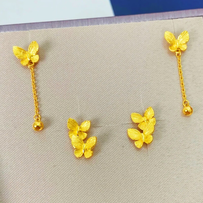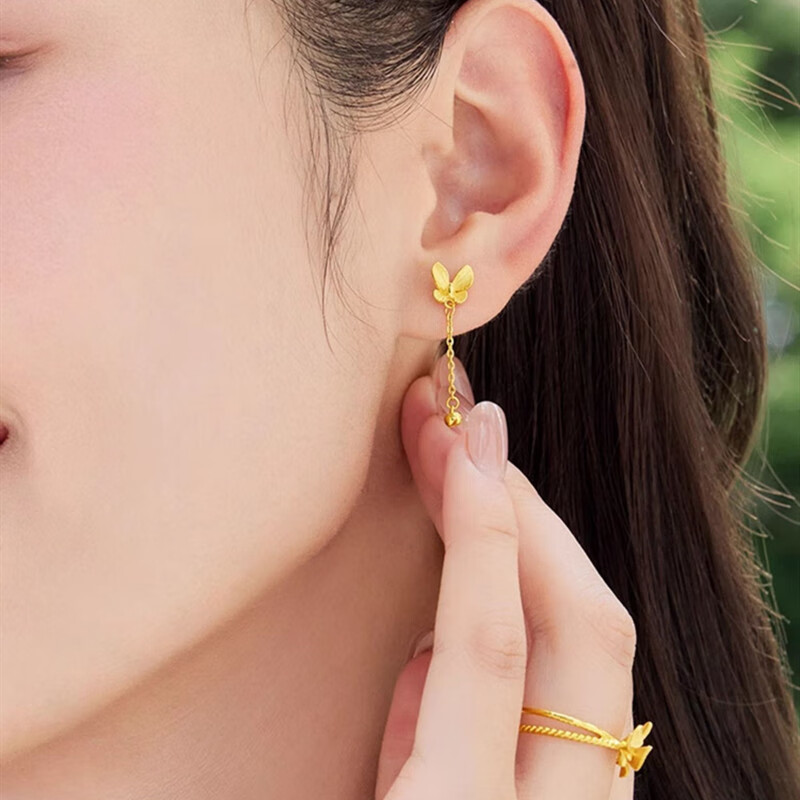Yadige plated 18K gold light luxury gold colorful butterfly ear wire women's 2024 long tassel earrings new 999 pure gold ear butterfly