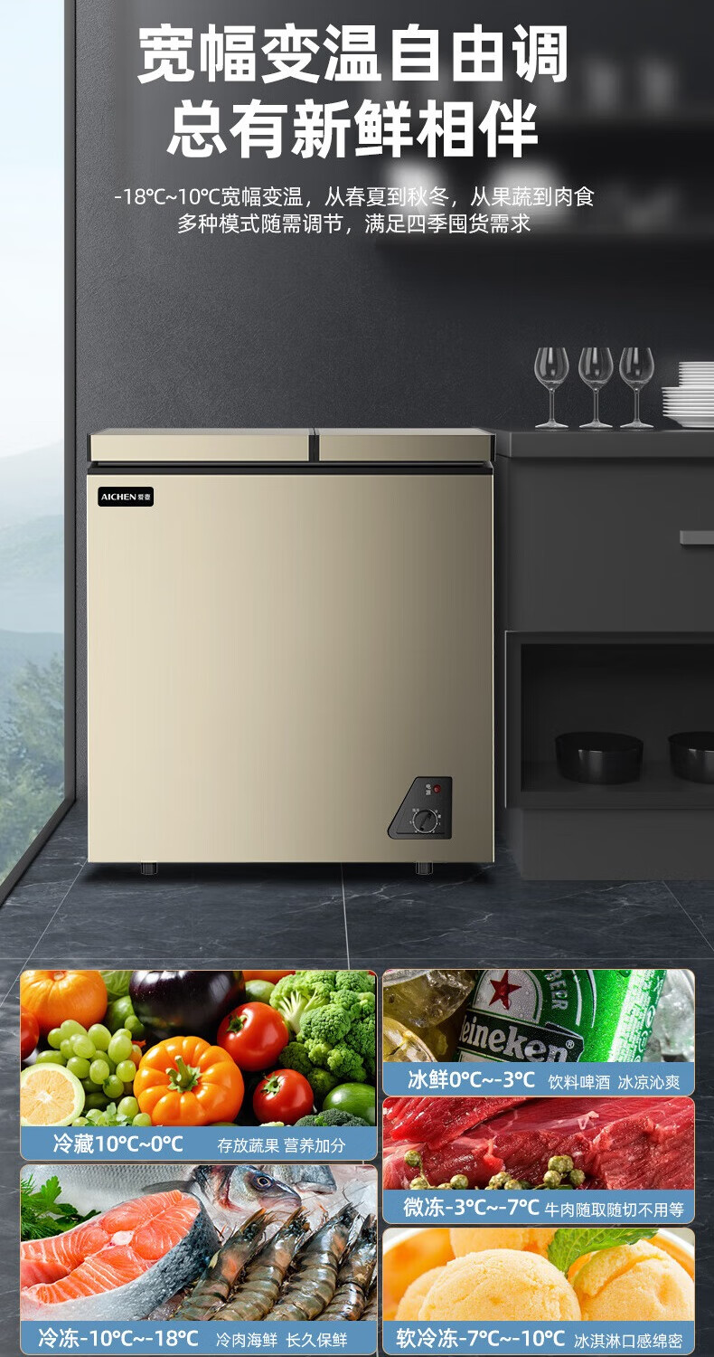 Двухтемпературная морозильная камера AICHEN, бытовая небольшая морозильная камера с двумя камерами, холодильная морозильная камера, шкаф двойного назначения, двухдверная коммерческая горизонтальная морозильная камера большой емкости, энергосберегающая двухтемпературная 148 литров, первоклассная энергоэффективность, общенациональная совместная гарантия 148 л