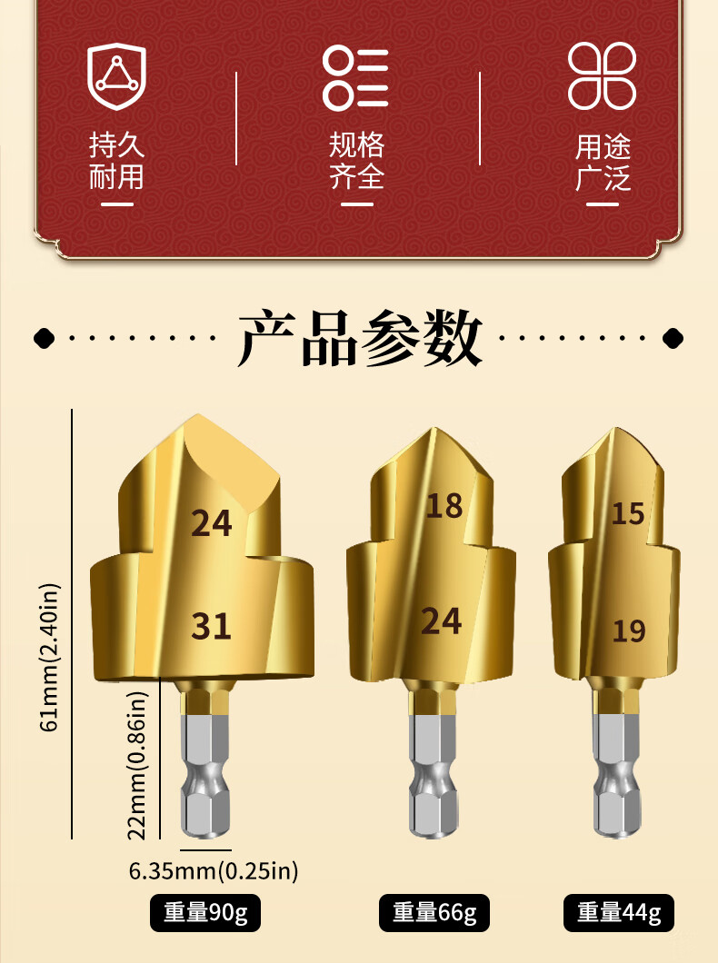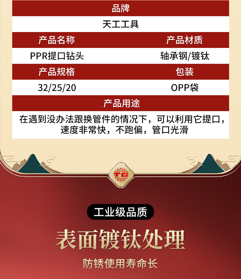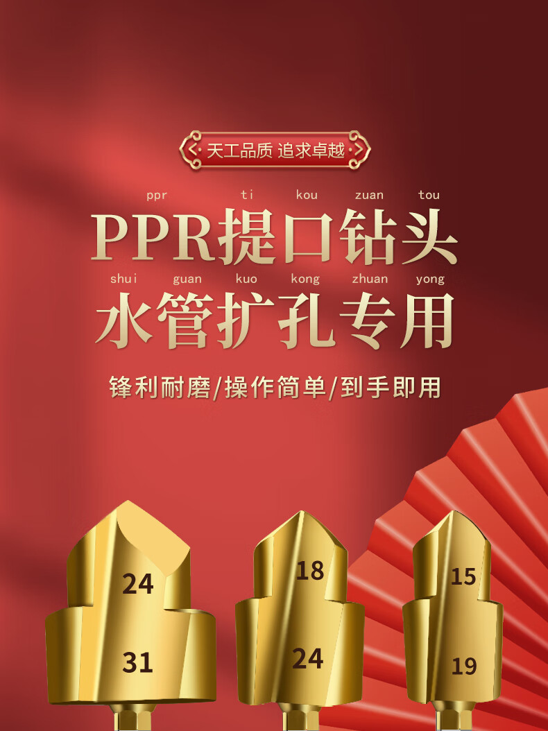 Tiangong (TIANGONG) lift drill PPR water pipe repair hot melt pipe expansion and leak repair hexagonal drill bit 20/25/32 New hexagonal PPR lift drill bit 20
