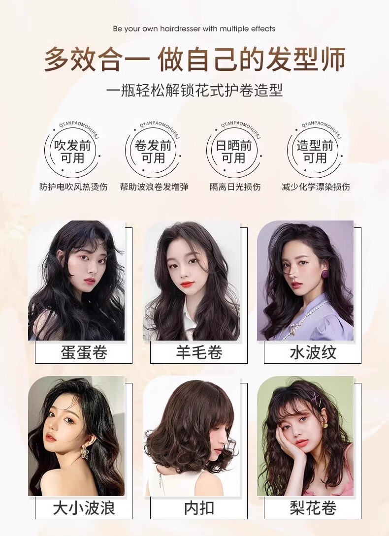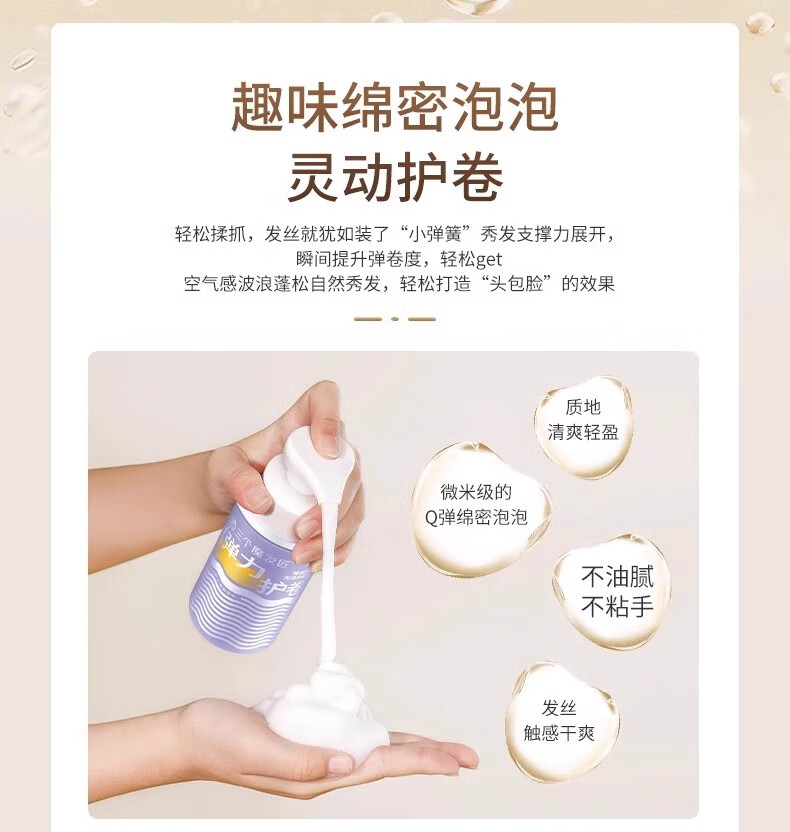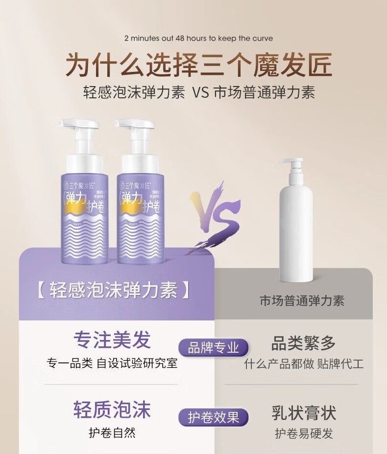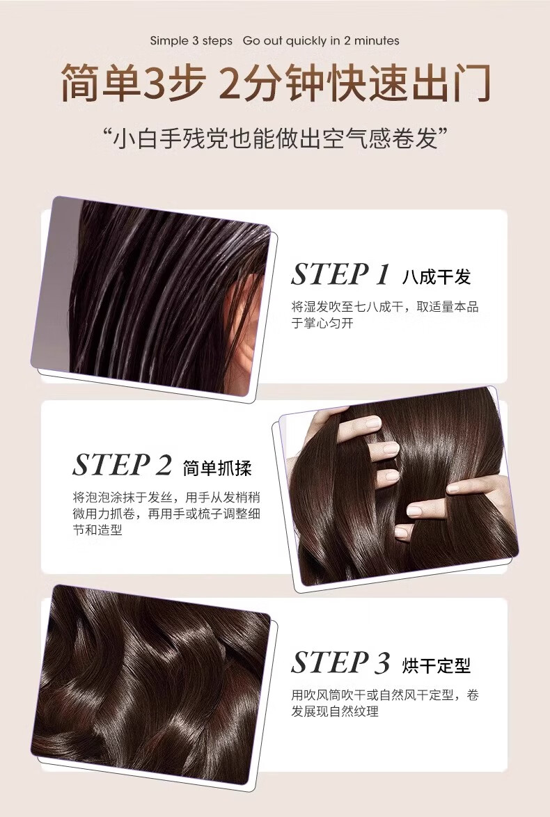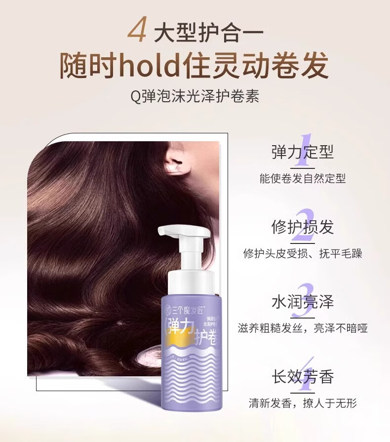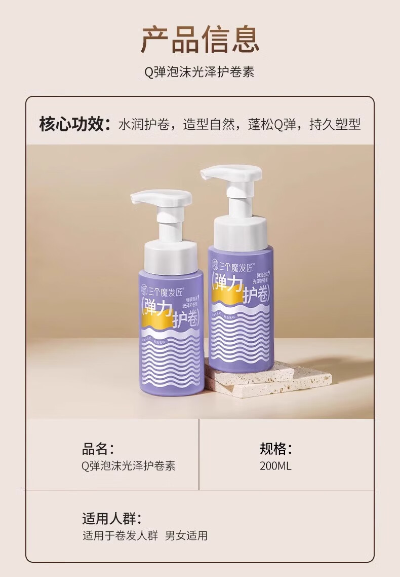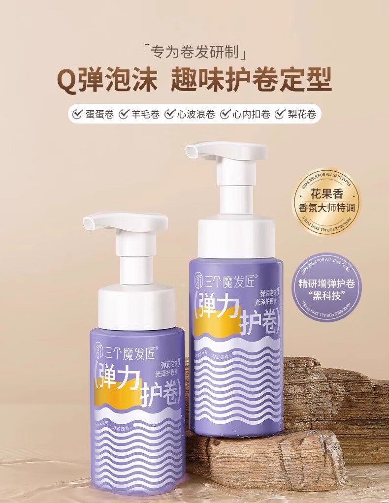 Three Magic Hair Makers Foam Elastin for Women's Curly Hair After Perm Hair Care Curl Essence Moisturizing and Fluffy Anti-frizz Styling Hair Wax (Buy 1 Hair 3) Curl Protective Elastin 200ml*3