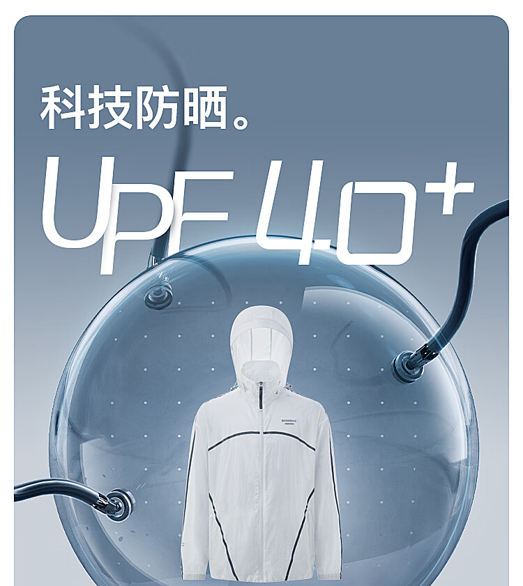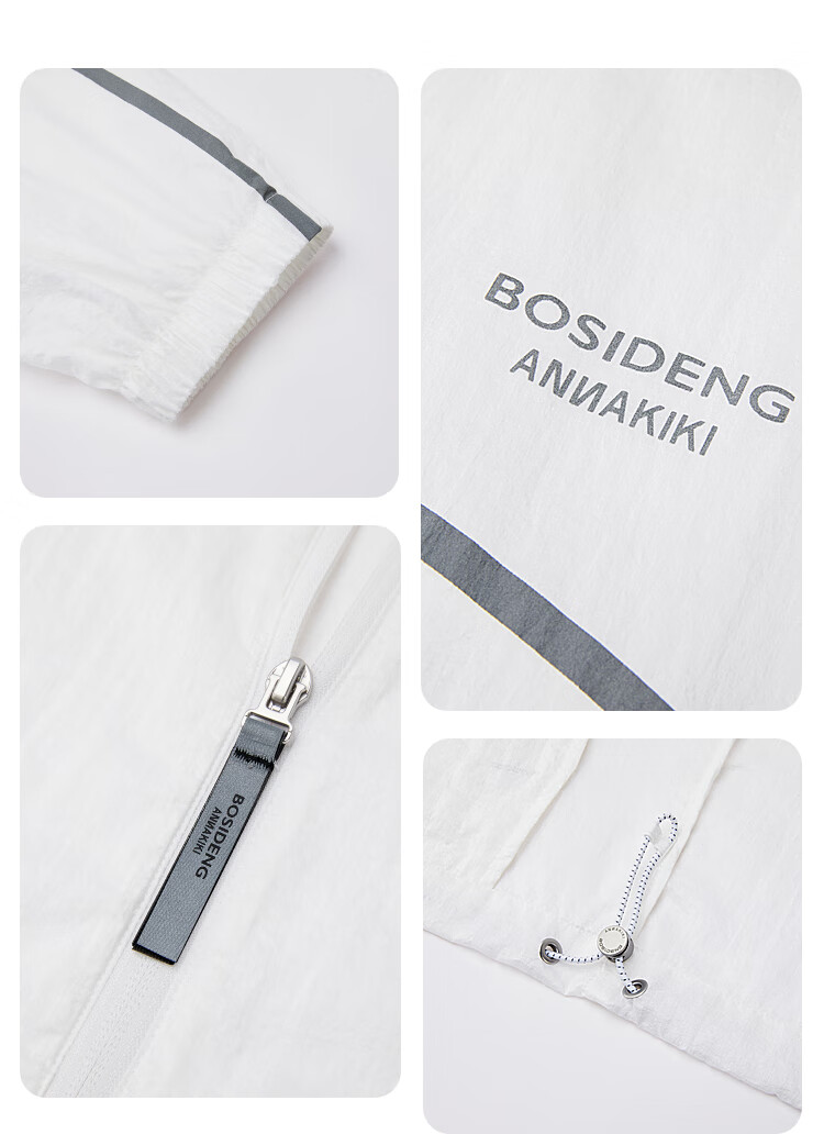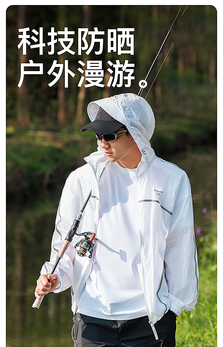 Bosideng (BOSIDENG) sun protection clothing men's summer outdoor fishing clothing contrasting color stripes windy wave grain breathable and cool jacket daylight white 8148 XL 185/104A