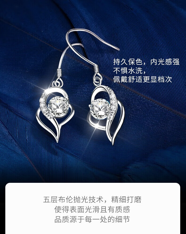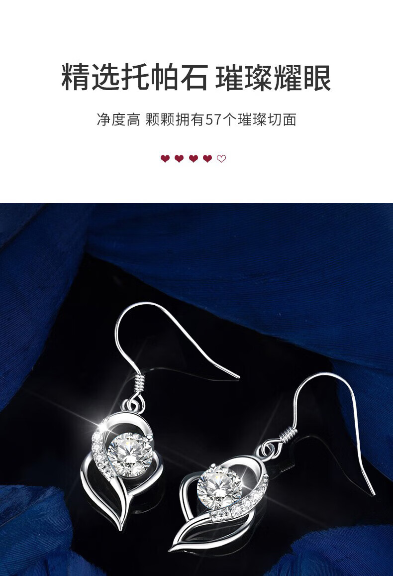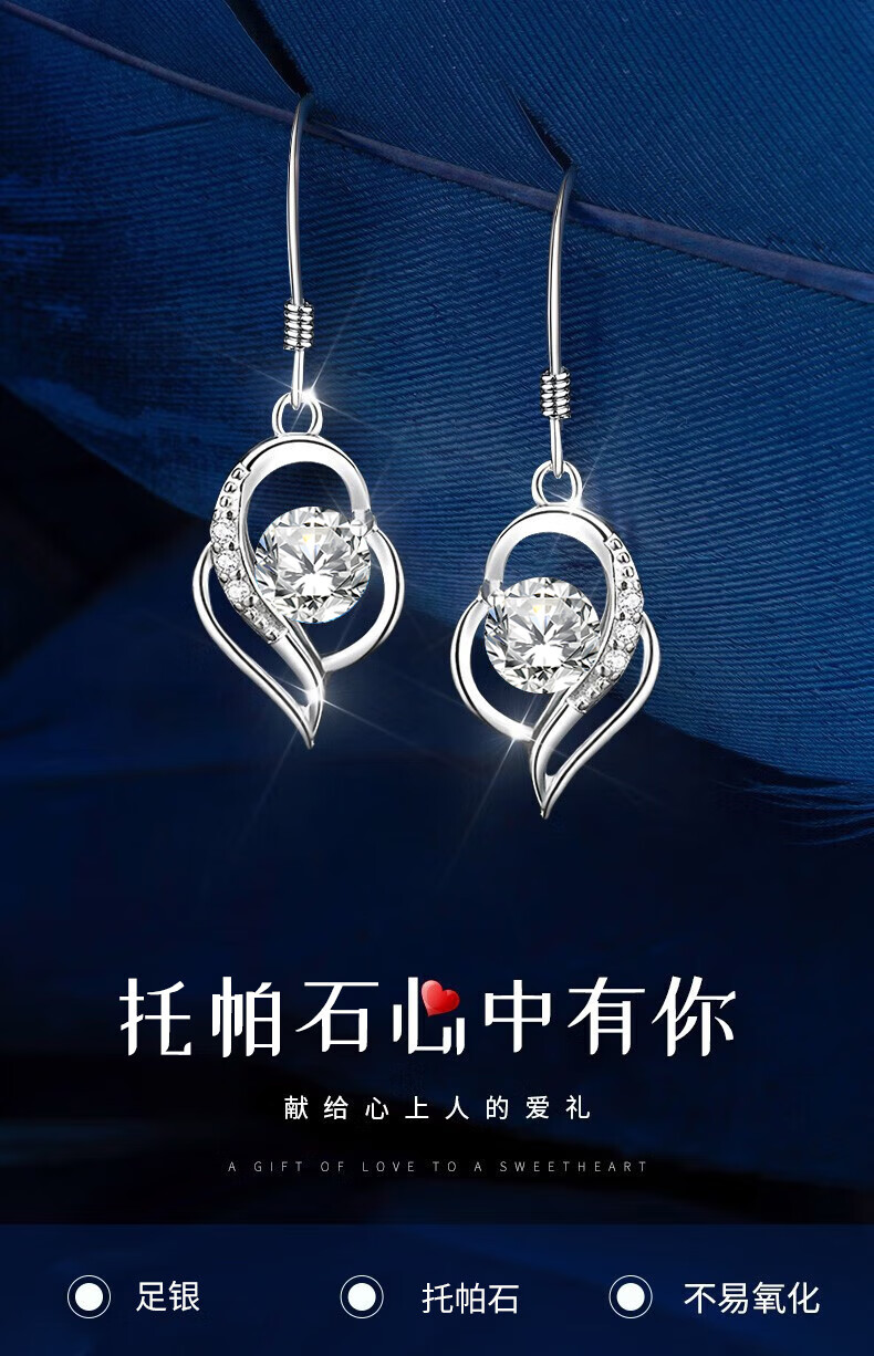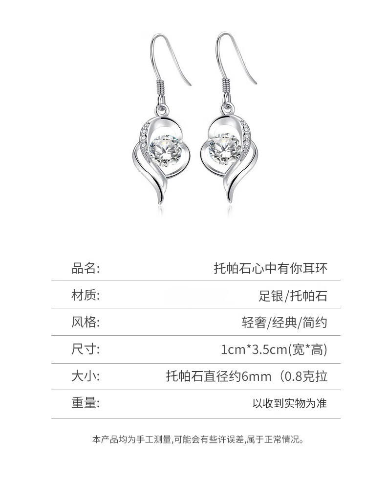 China Gold I Have You in My Heart Pure Silver Earrings Female Topaz Earrings Romantic Gift for Girlfriend and Wife Birthday and Wedding Jingsuda - I Have You in My Heart Pure Silver Topaz Earrings