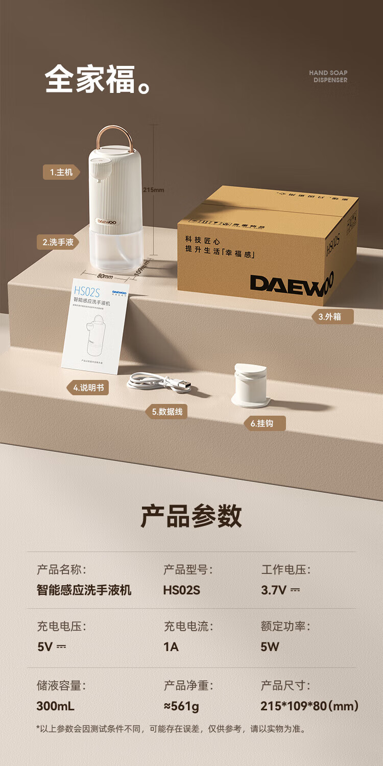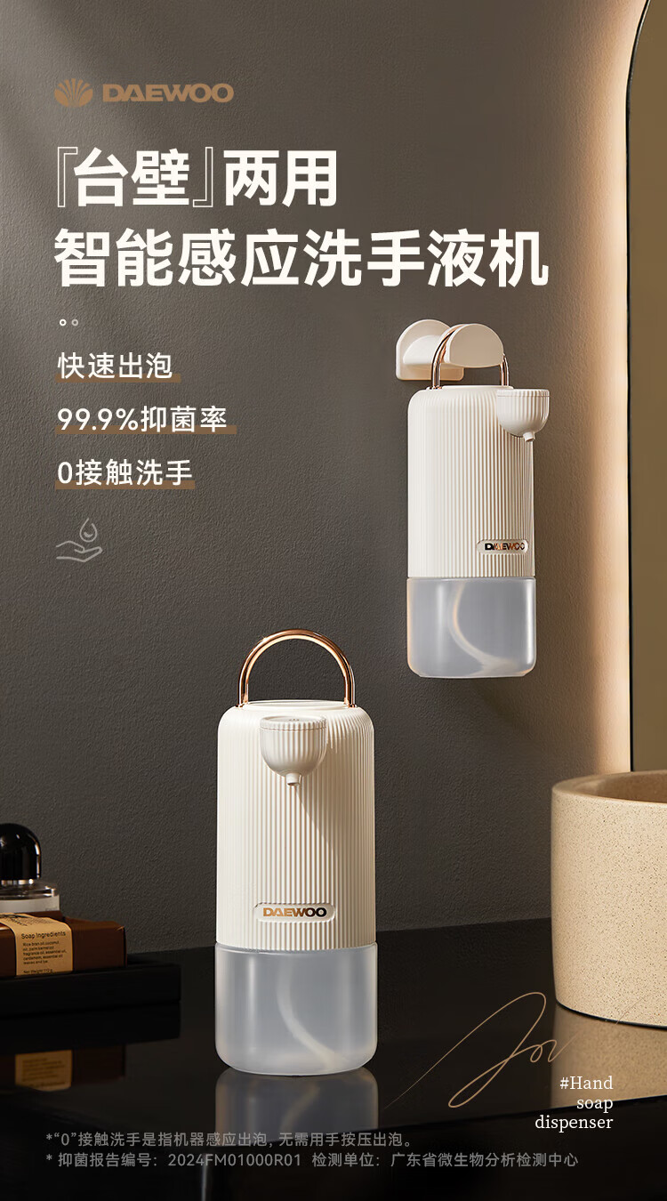 Daewoo Automatic Mobile Phone Washer Smart Sensor Foam Fragrance Contactless Bathroom Hand Washing Desktop Wall Mount High Battery Life Table Wall Dual Use丨150 Days Battery Life (Antibacterial Version)