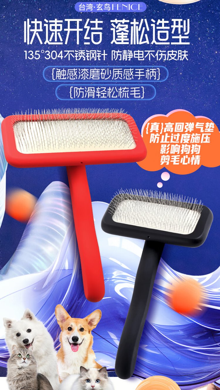Xuanniao Yongbei Needle Comb Pet Needle Comb Dog Professional Cleaning Cat Needle Comb Supplies Pet Shop Special Brush Brush Floating Hair Professional Competition Level Pet Needle Comb Red M