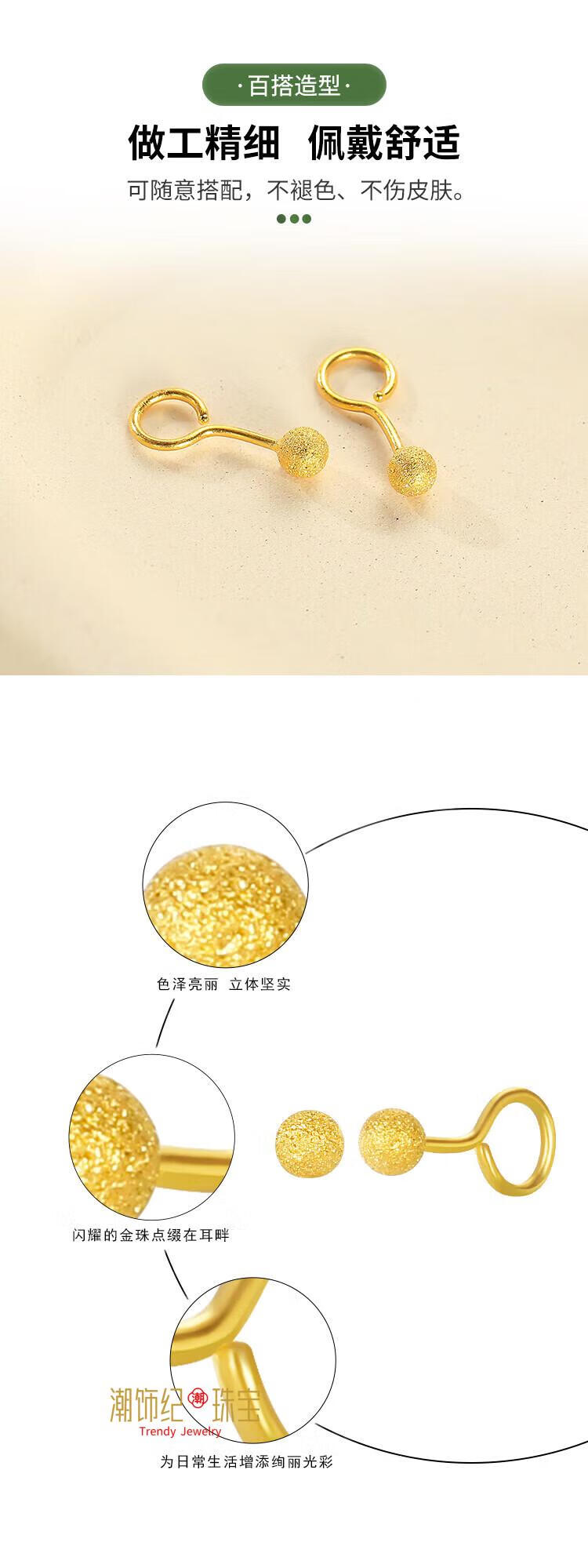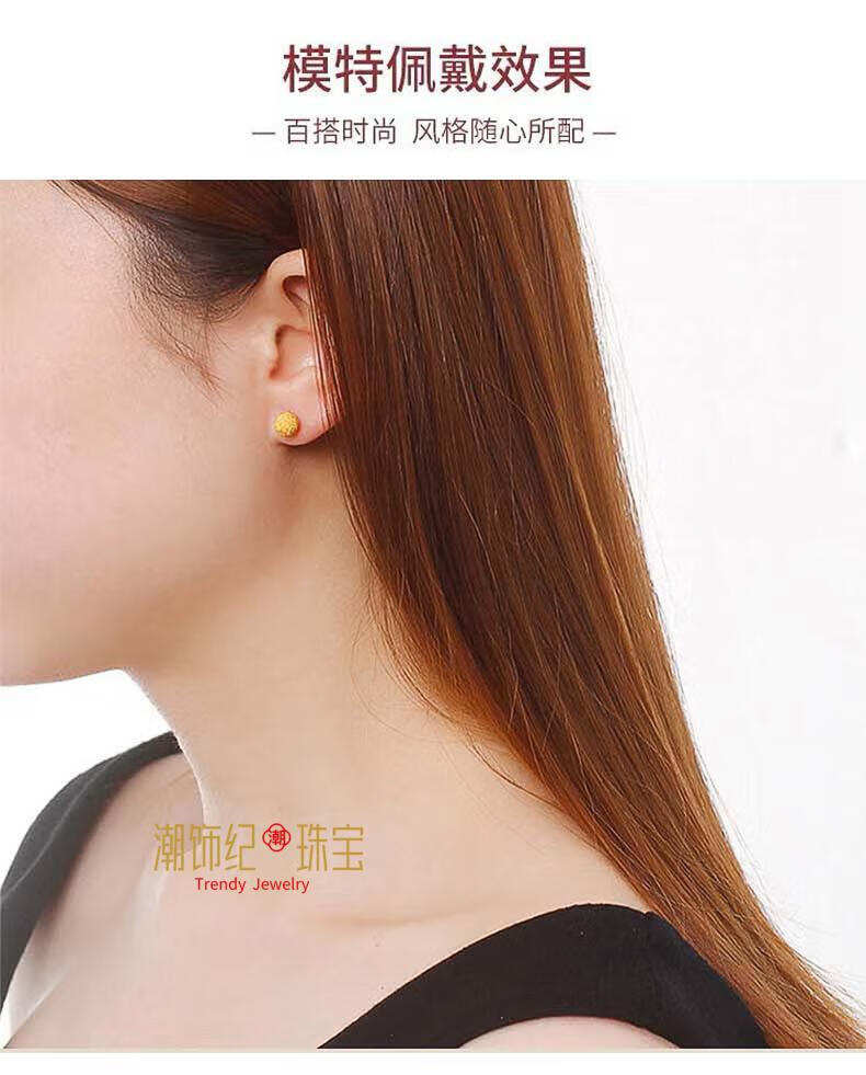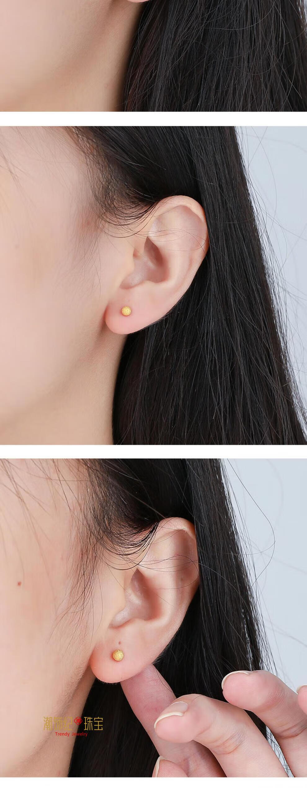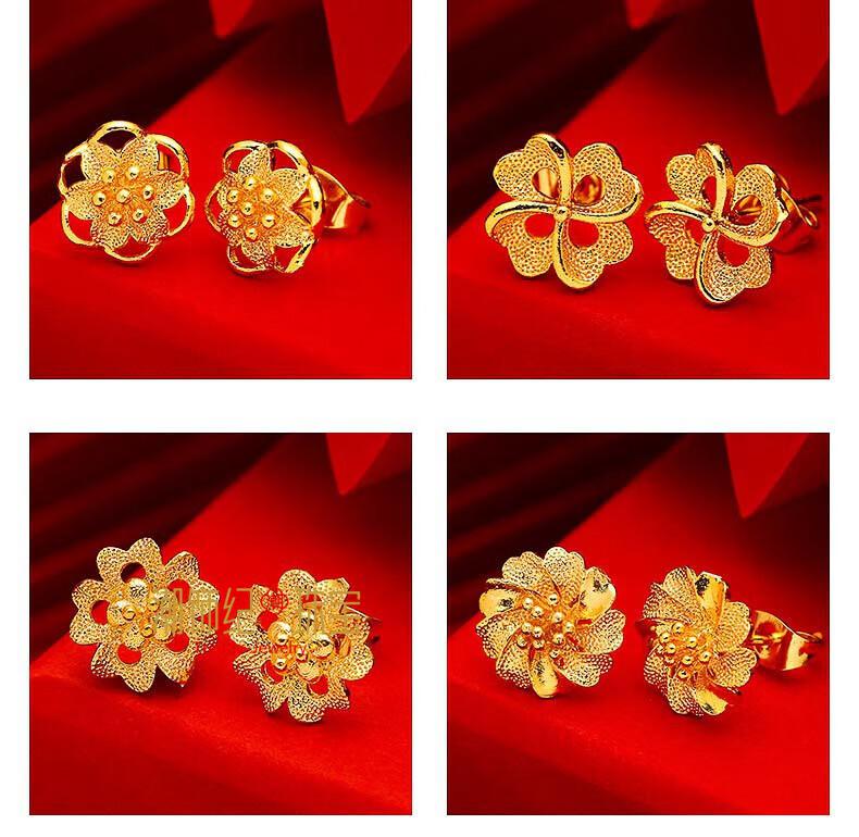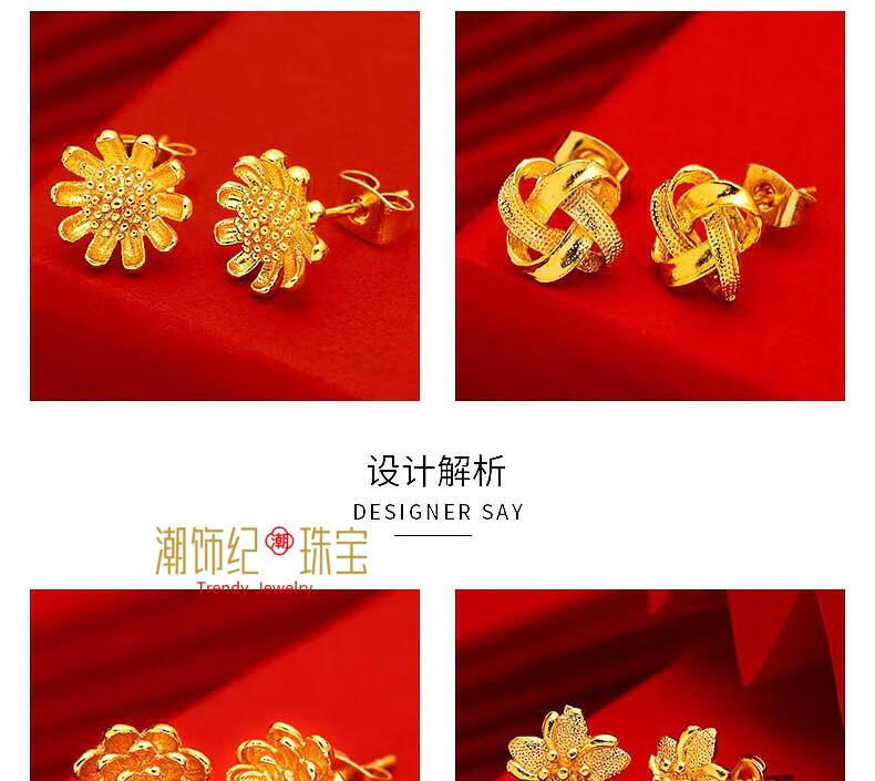 DL 1998 Fat Donglai same style 18 gold earrings for women, 999 gold four-leaf clover gold earrings for raising ears as a gift for girlfriend and mother, double C earrings, one pair (0.65g)