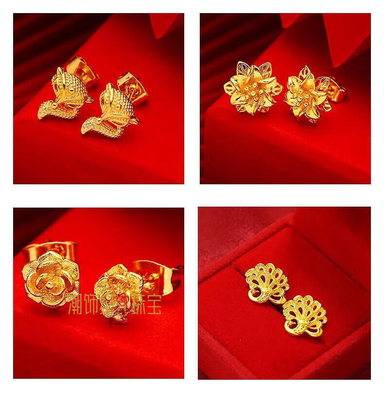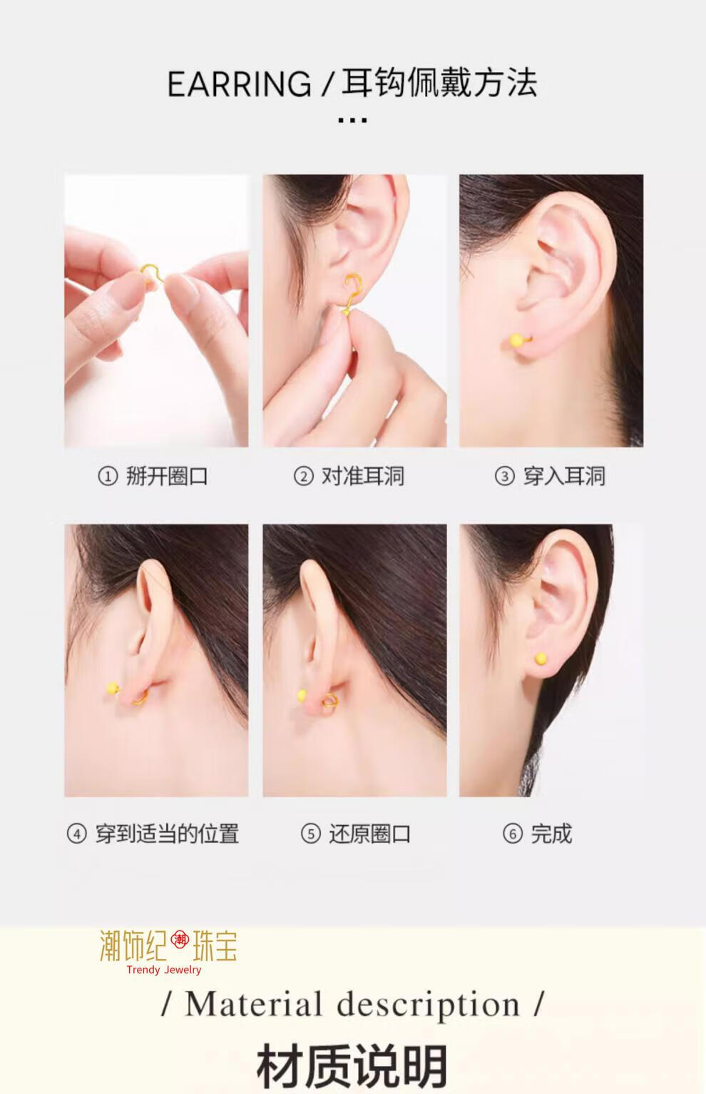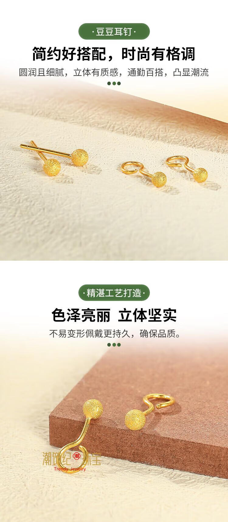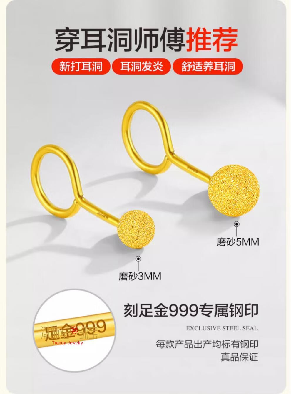 DL 1998 Fat Donglai same style 18 gold earrings for women, 999 gold four-leaf clover gold earrings for raising ears as a gift for girlfriend and mother, double C earrings, one pair (0.65g)