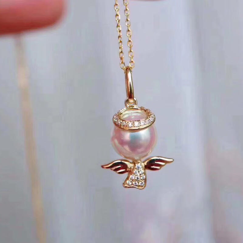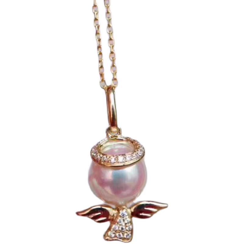 Fat Donglai same style pearl pendant accessories angel DIY925 silver empty support gold concealer necklace pendant for women with round beads gold pendant empty support does not include beads or chain