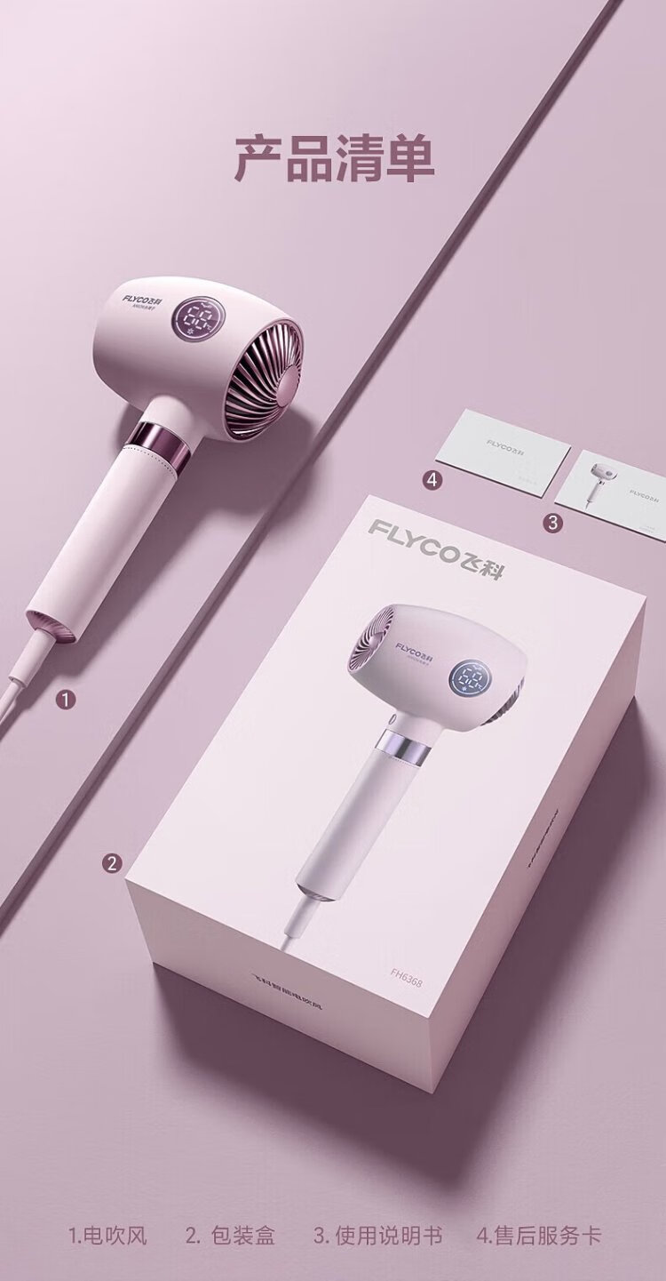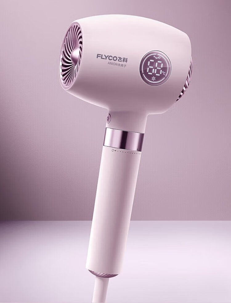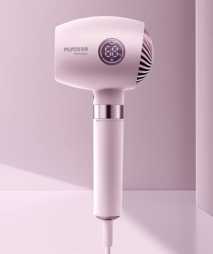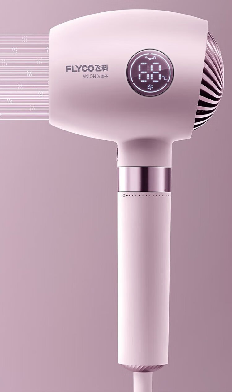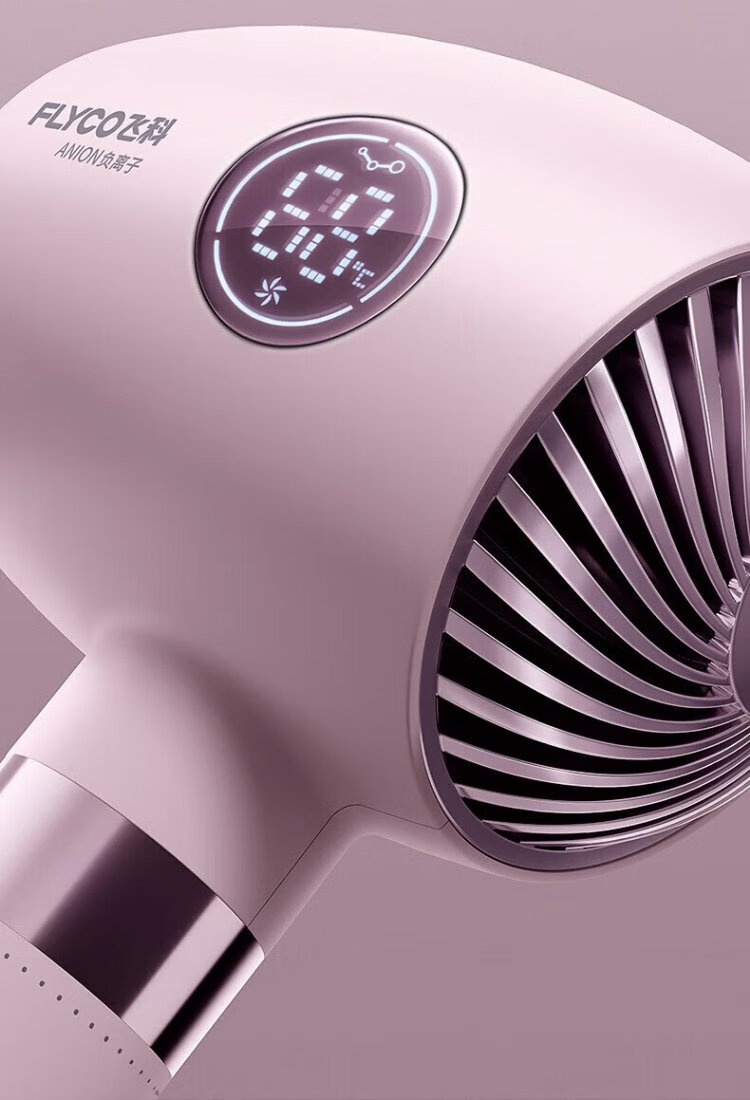 FLYCO Hair Dryer, Soft Air Negative Ion Constant Temperature Hair Care, Household Hot and Cold High Air Volume Fast Drying Hair Dryer, Smart Screen Display Gift for Girlfriend FH6369 Normal Pack