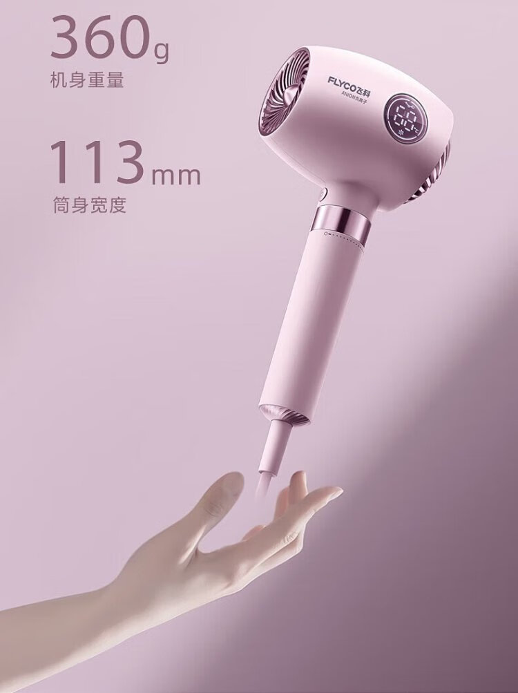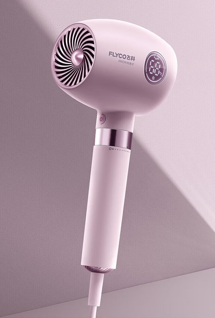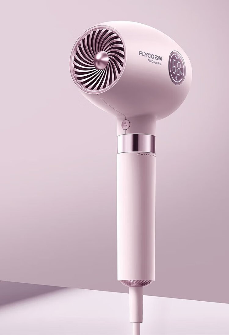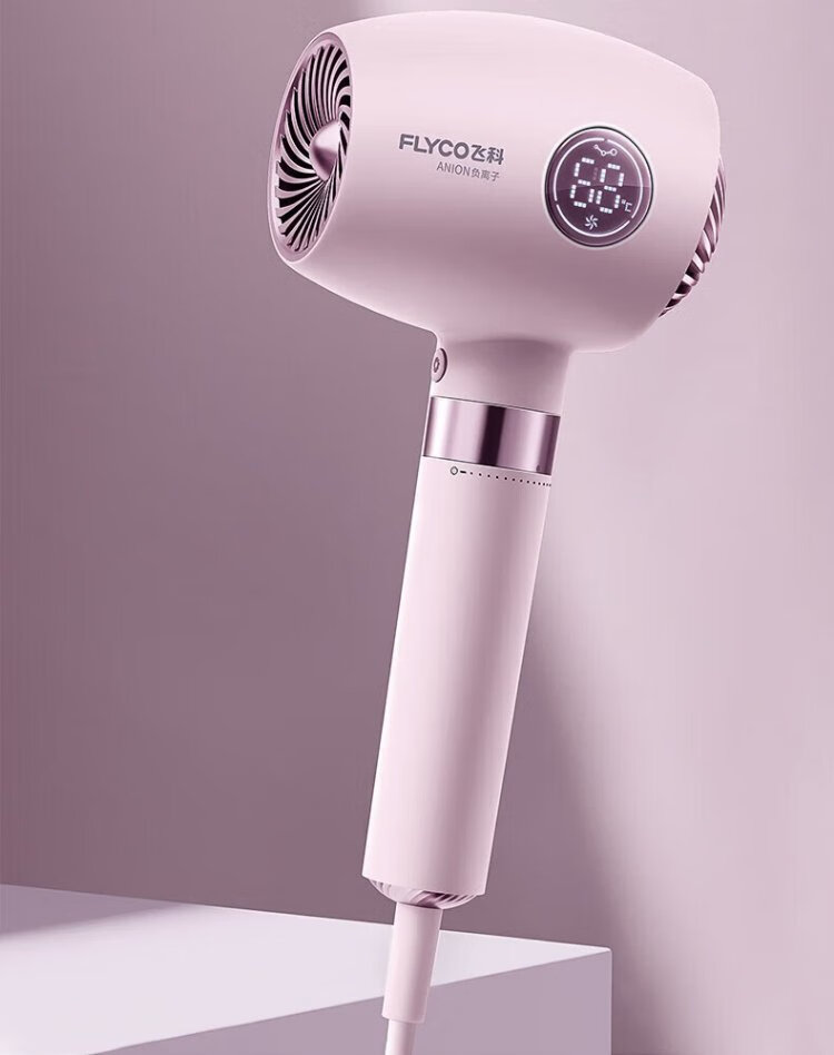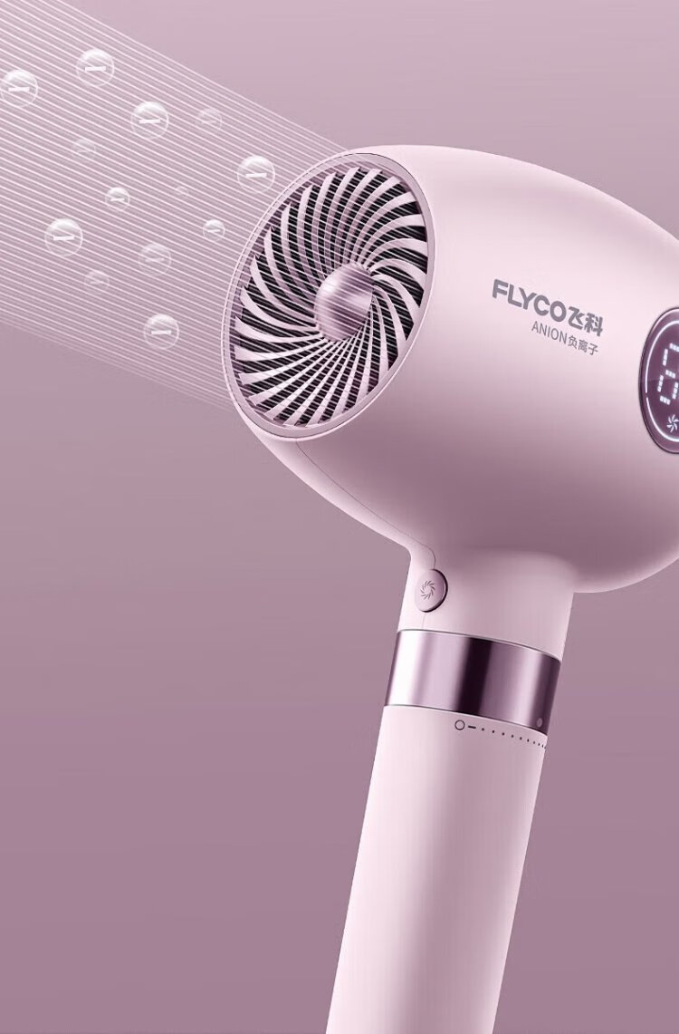 FLYCO Hair Dryer, Soft Air Negative Ion Constant Temperature Hair Care, Household Hot and Cold High Air Volume Fast Drying Hair Dryer, Smart Screen Display Gift for Girlfriend FH6369 Normal Pack