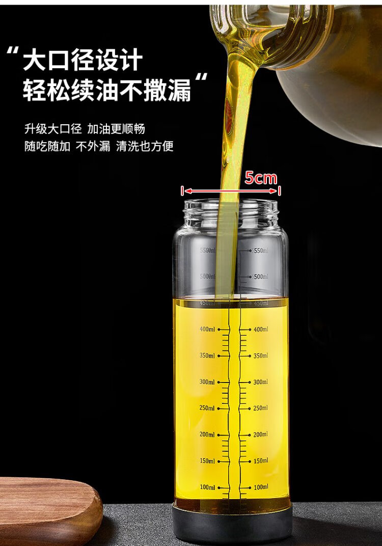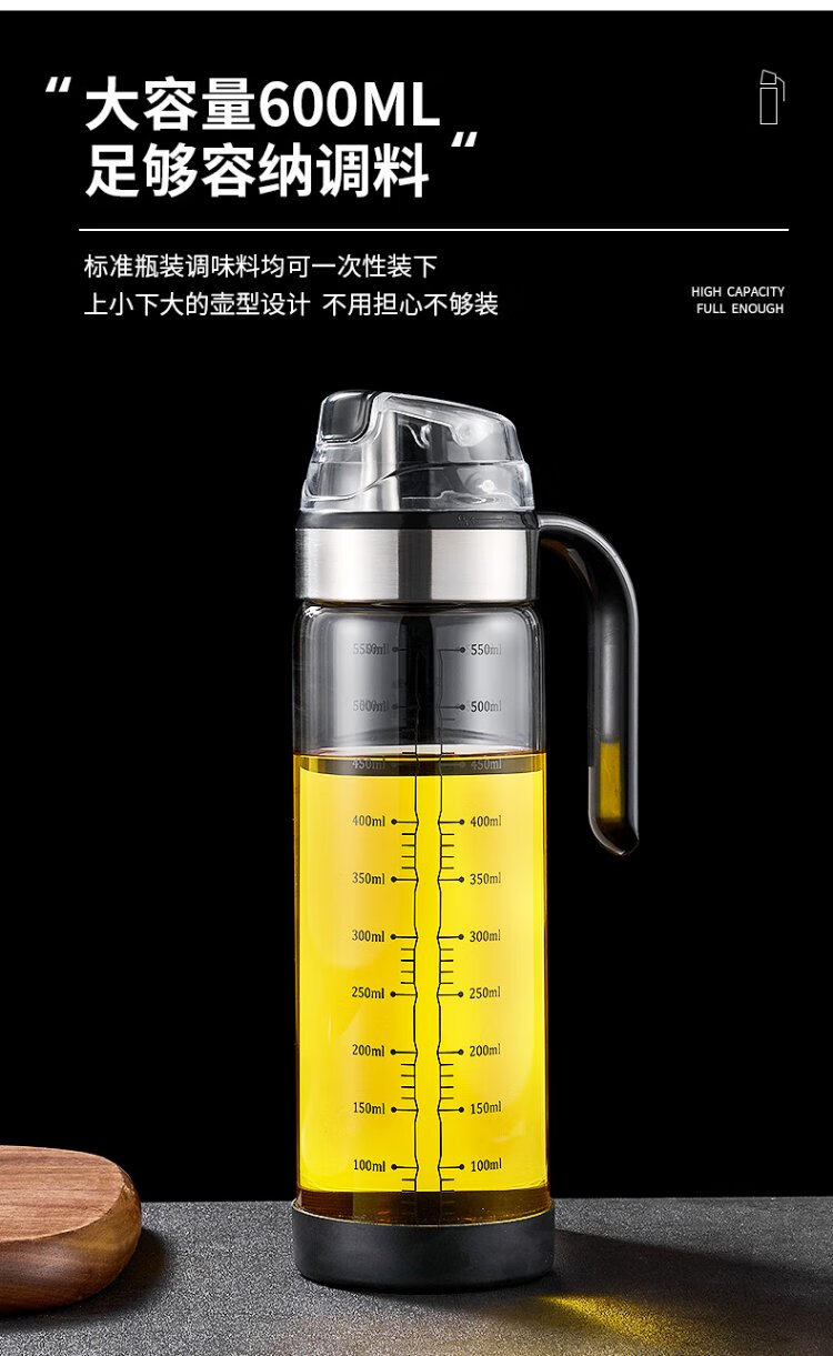 Mingtai oil pot glass non-sticking oil household leak-proof automatic opening and closing soy sauce pot oil bottle kitchen cooking seasoning seasoning bottle high temperature resistance 550ml* 1 pack