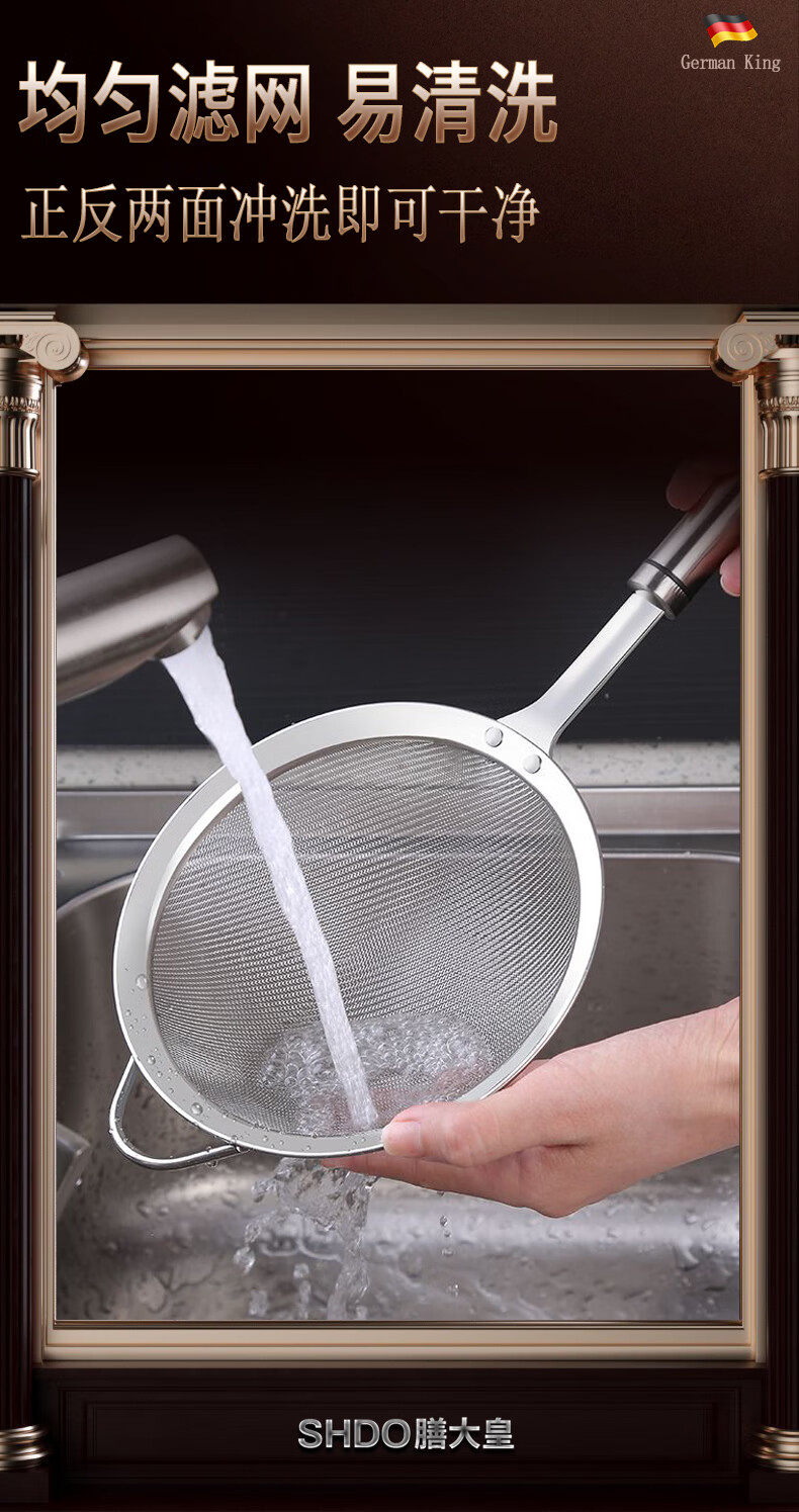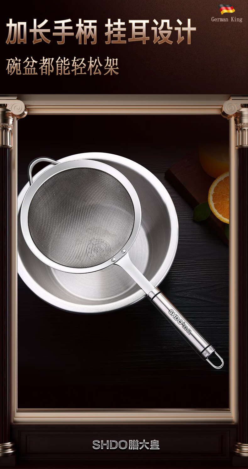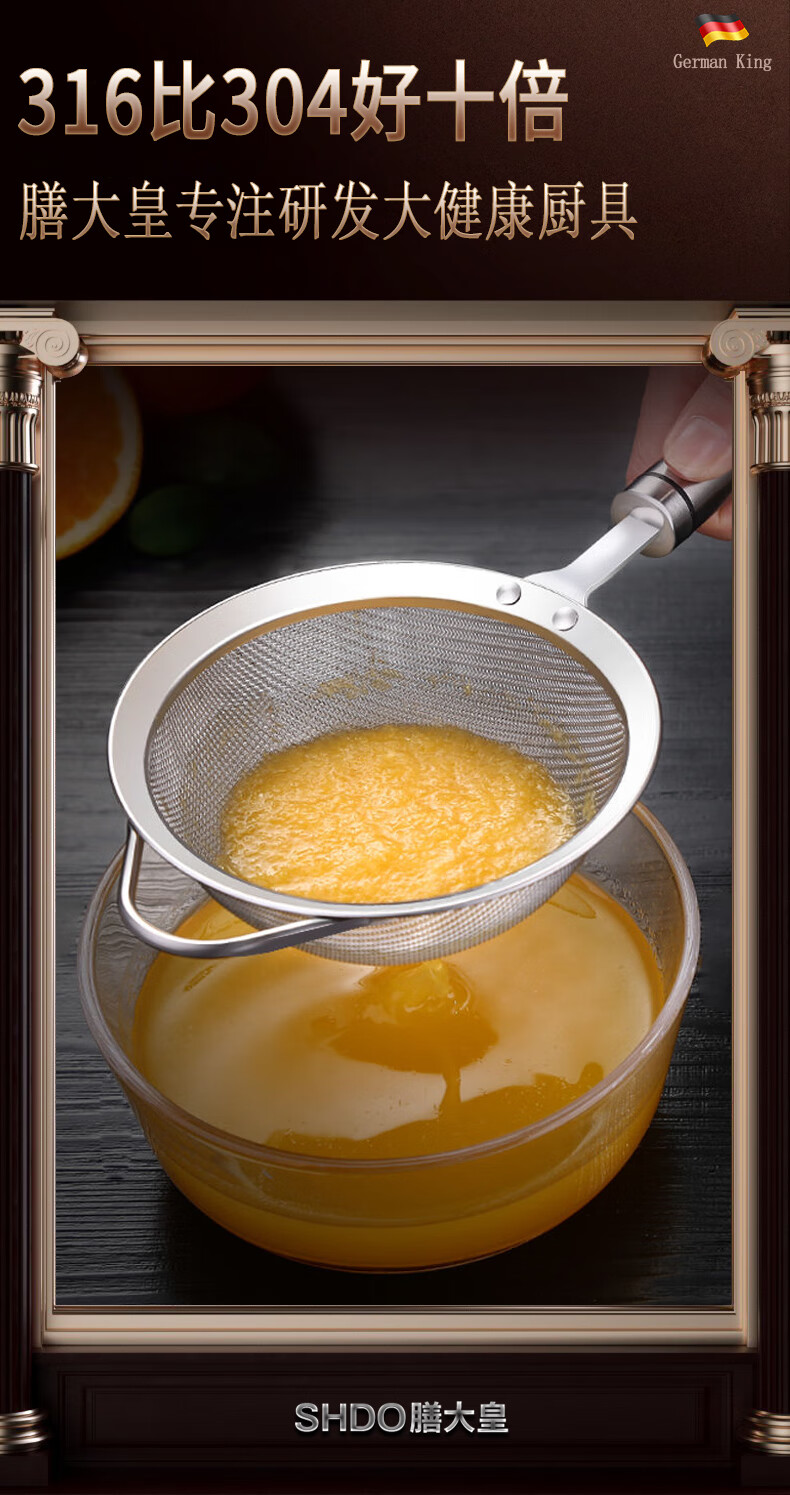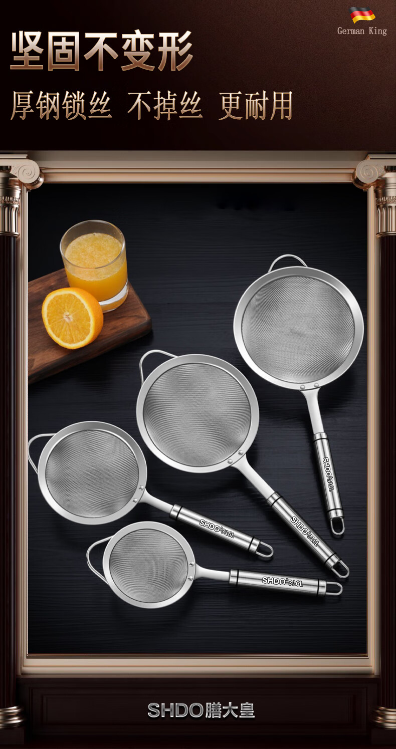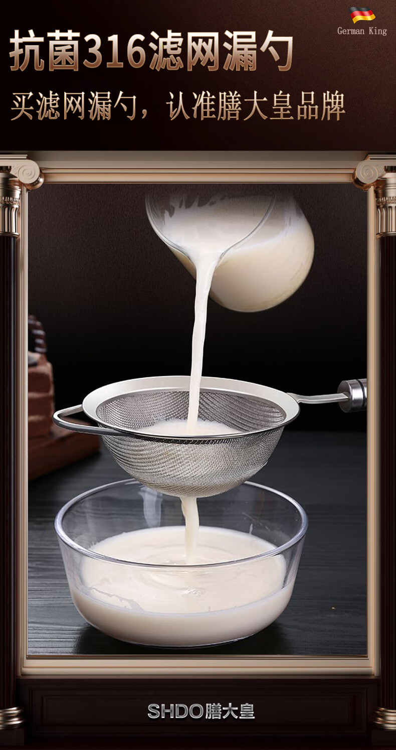 Shandahuang (SHDO) German 316 stainless steel colander, fine mesh soy milk filter, dense colander, household ultra-fine filter spoon, mesh sieve, antibacterial 316, large size 14cm, 30 mesh