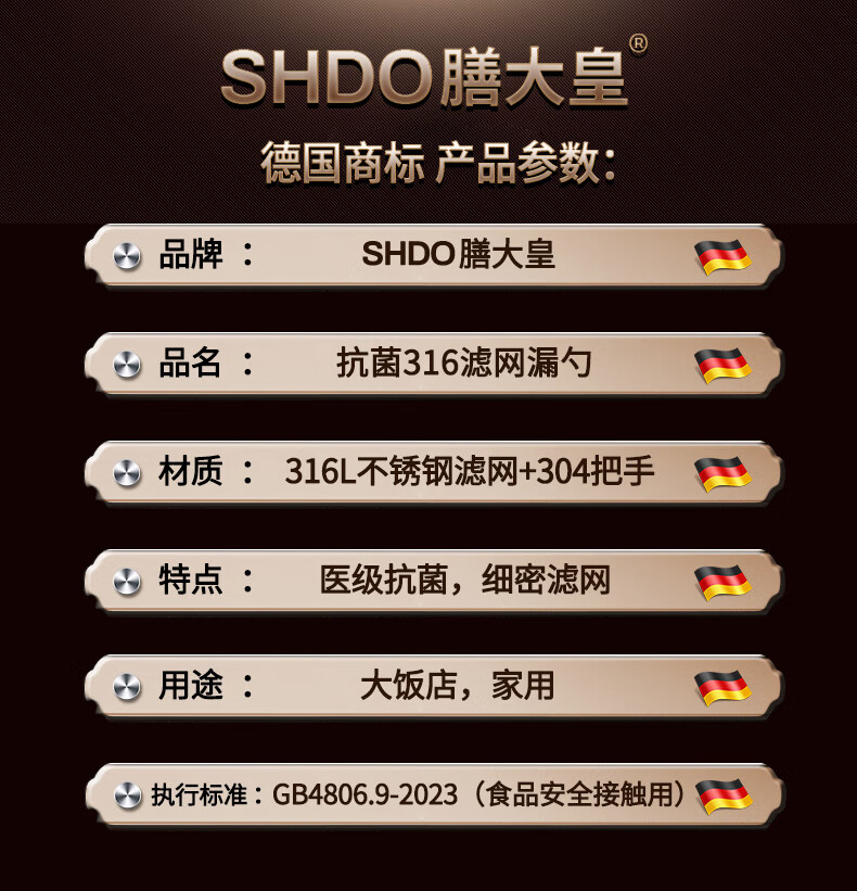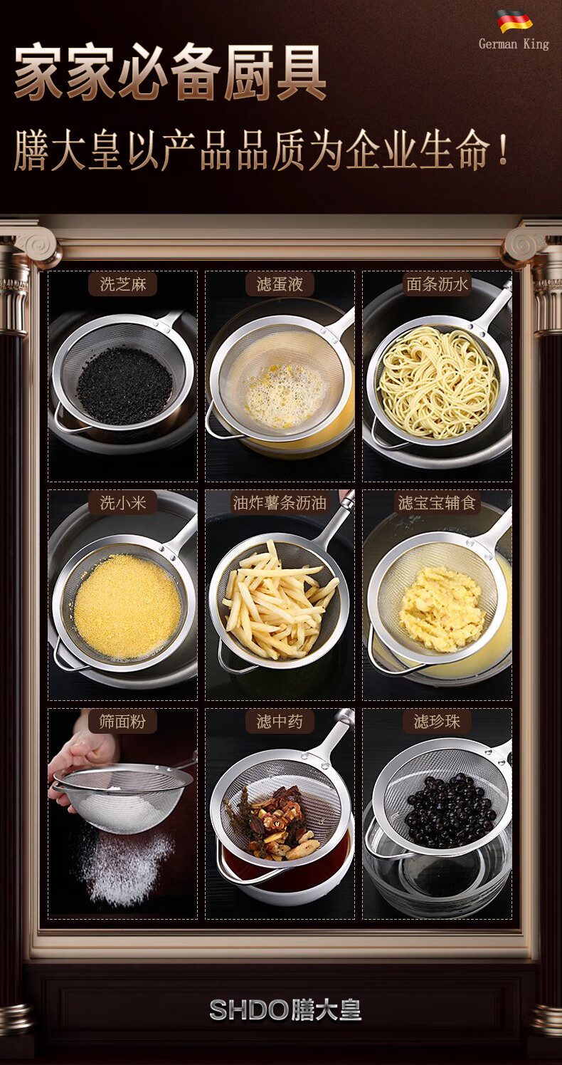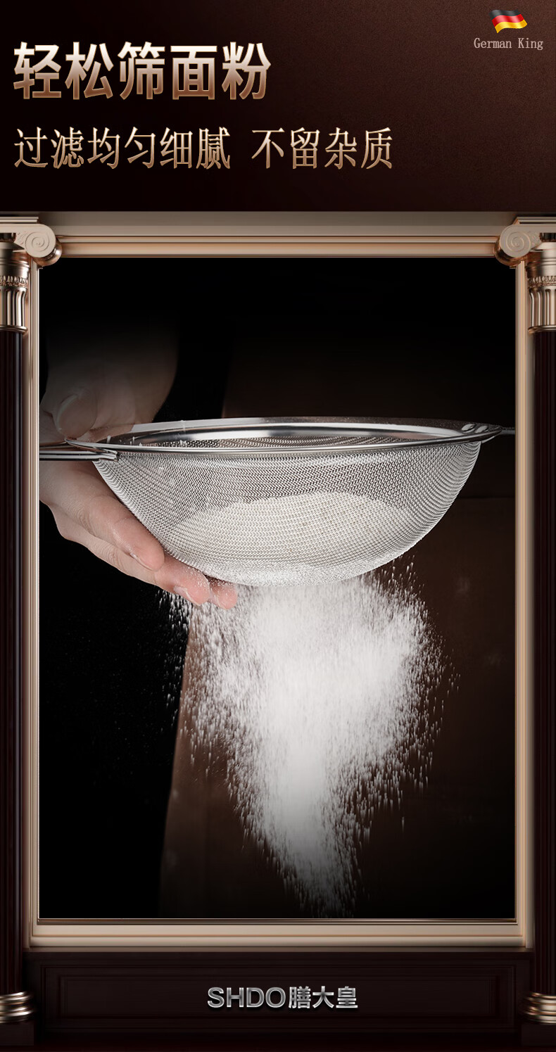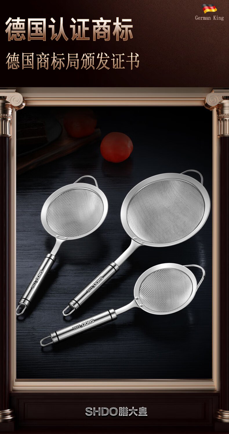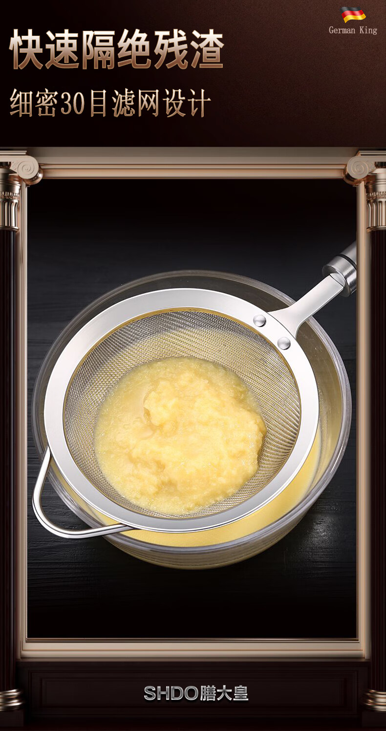 Shandahuang (SHDO) German 316 stainless steel colander, fine mesh soy milk filter, dense colander, household ultra-fine filter spoon, mesh sieve, antibacterial 316, large size 14cm, 30 mesh