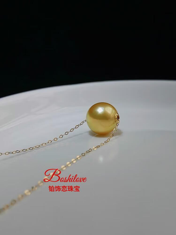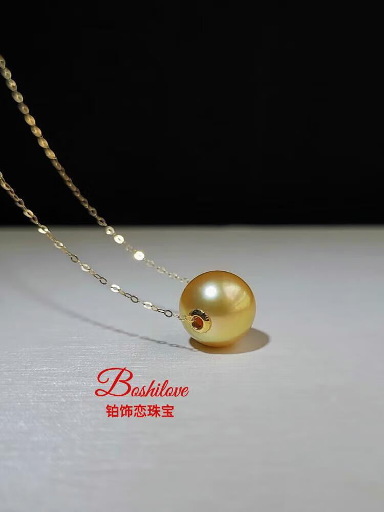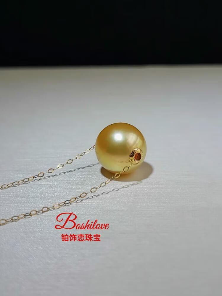DL 1998 Fat Donglai same style South Sea gold bead pendant natural sea water Philippine quality necklace G18k gold deep gold road 9-10mm small size thick gold