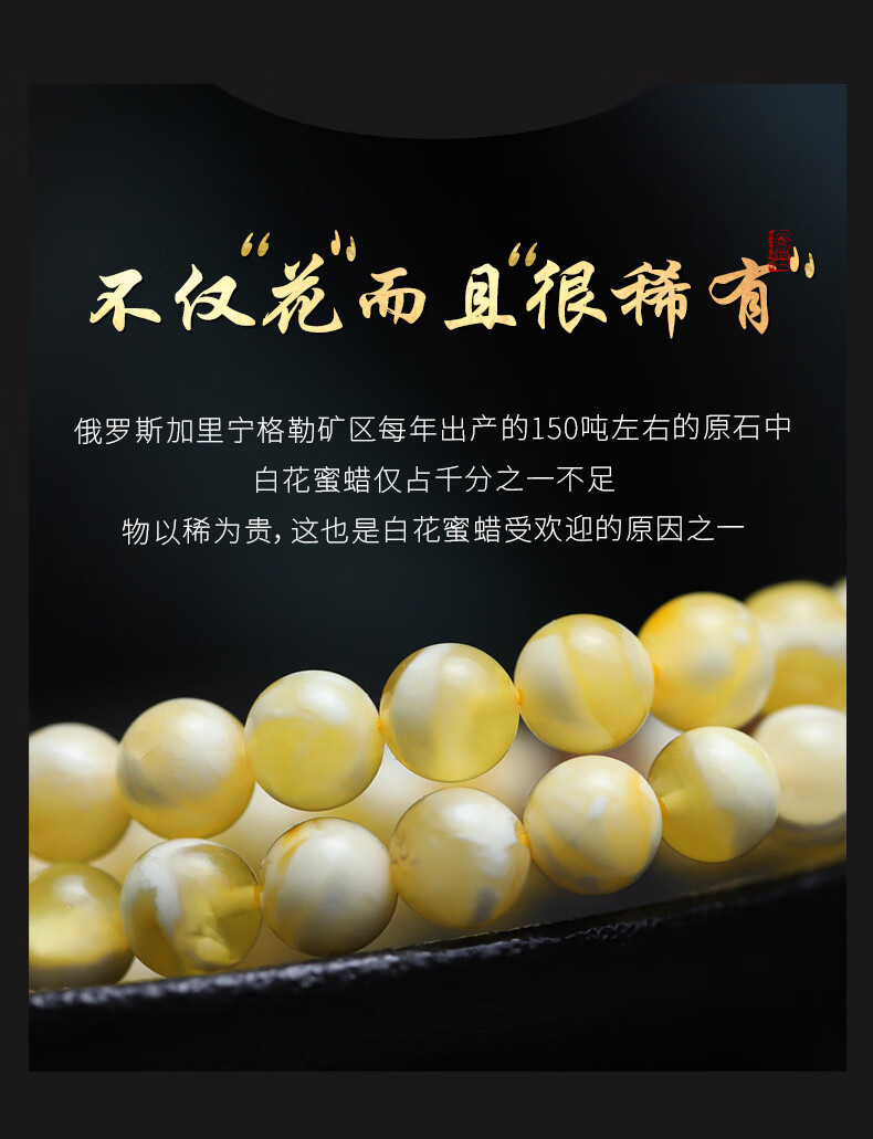 Layun Feiyin Collection Grade Russian Material White Flower Honey Wax Bracelet Women's Born Buddha Gold Porcelain White Amber Multi-circle Buddha Bead Bracelet High-end Gift Collection Grade White Flower Honey 6mm