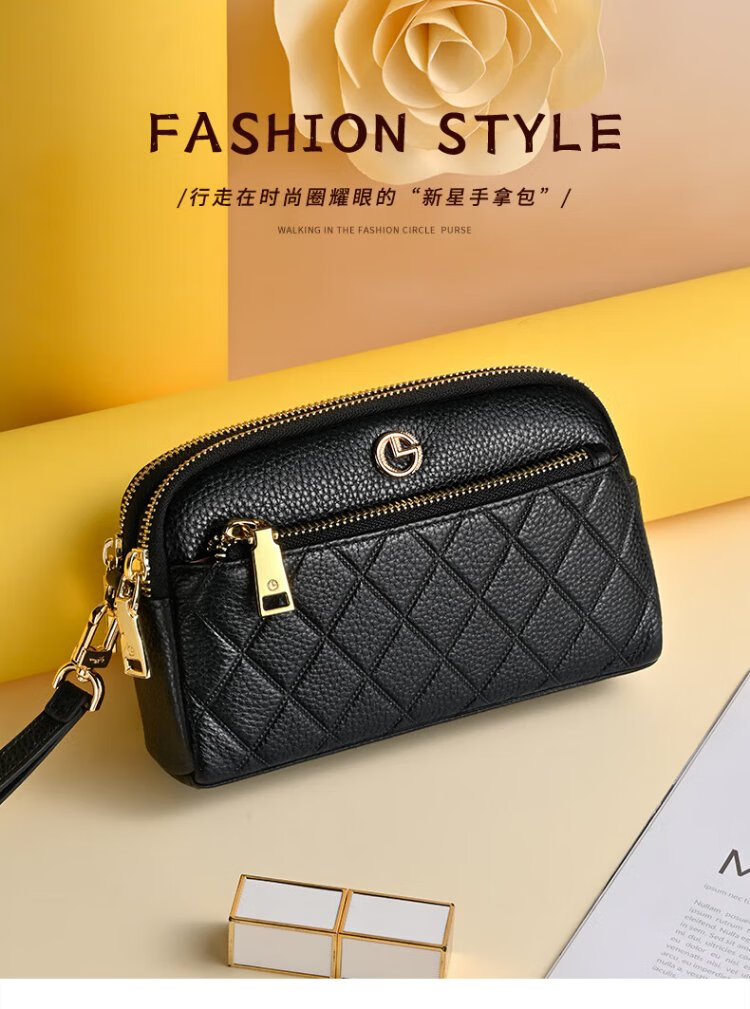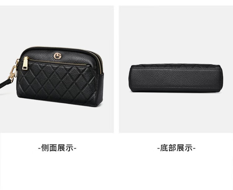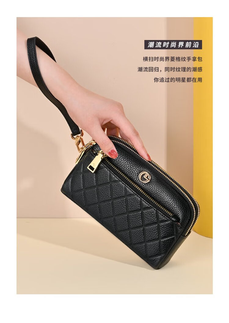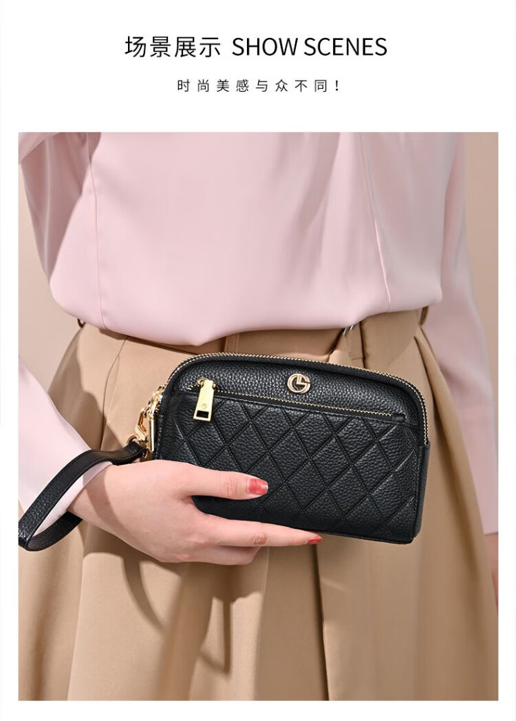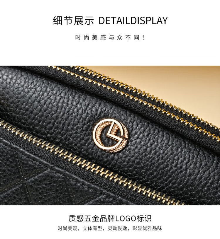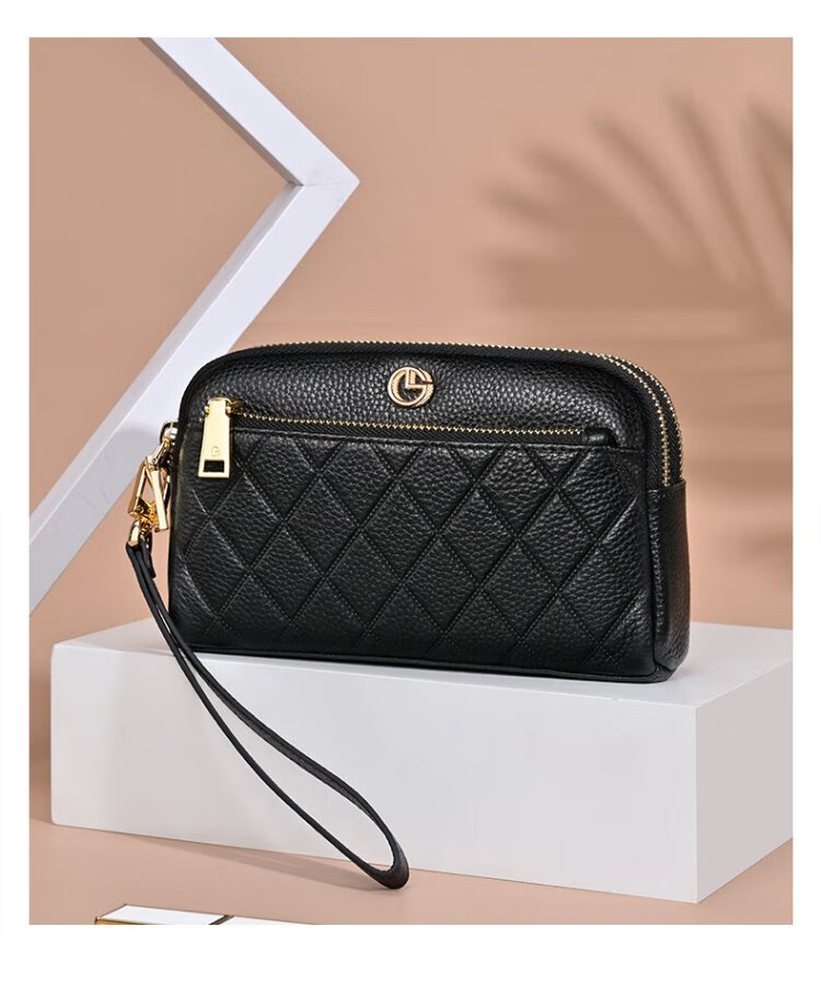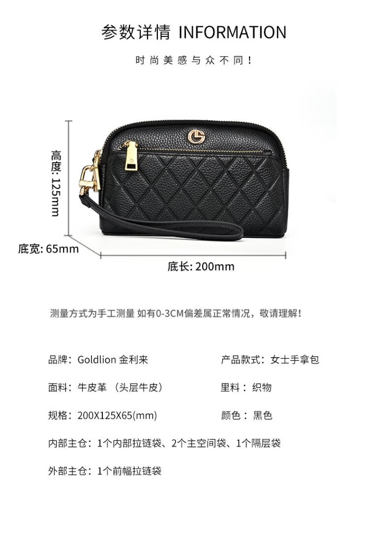 Goldlion Women's Bag Genuine Leather 2025 Summer New Fashion Clutch Zipper Large Capacity Coin Purse Mobile Phone Bag Women's Wallet Black