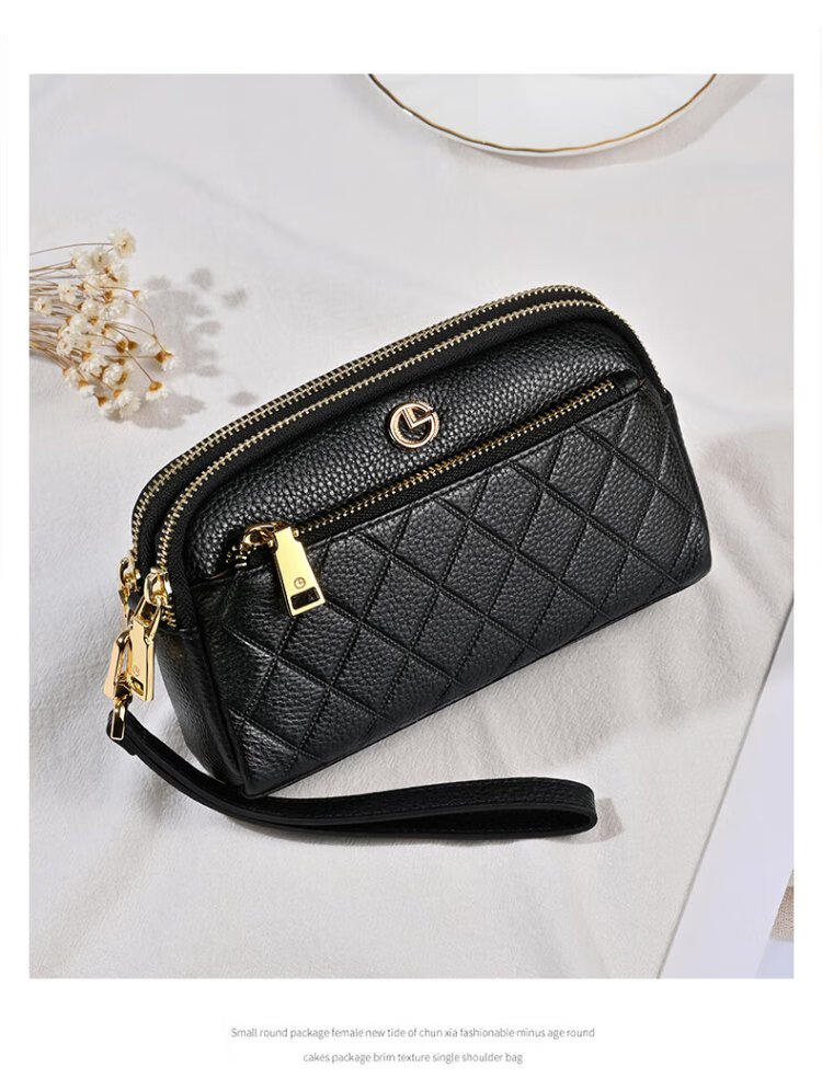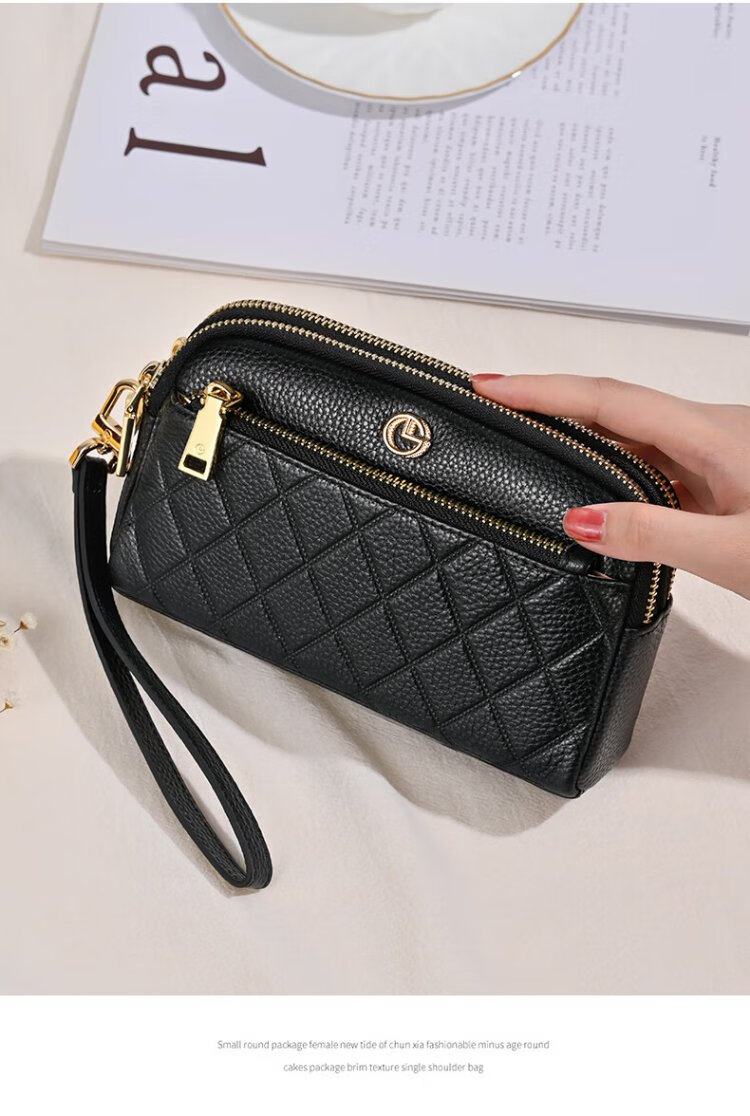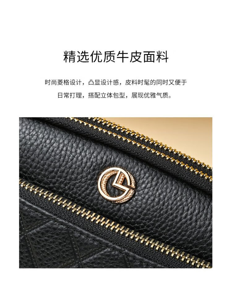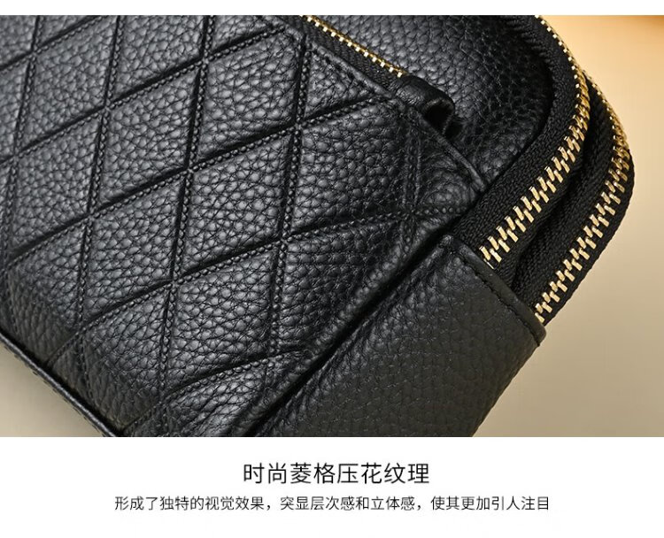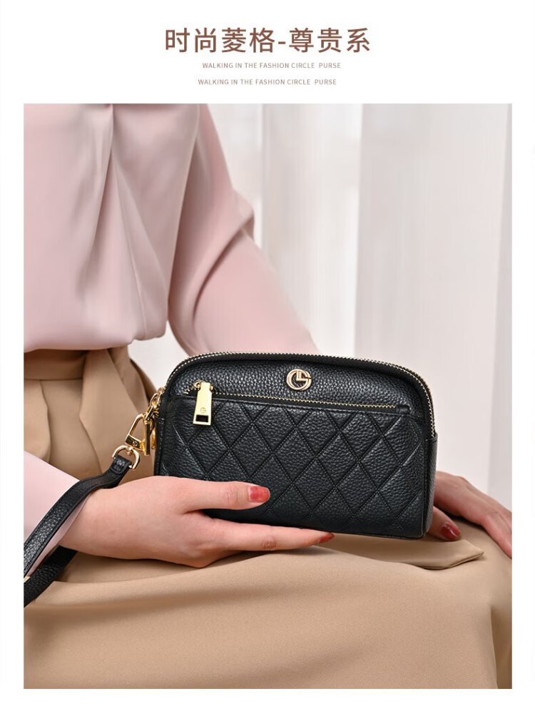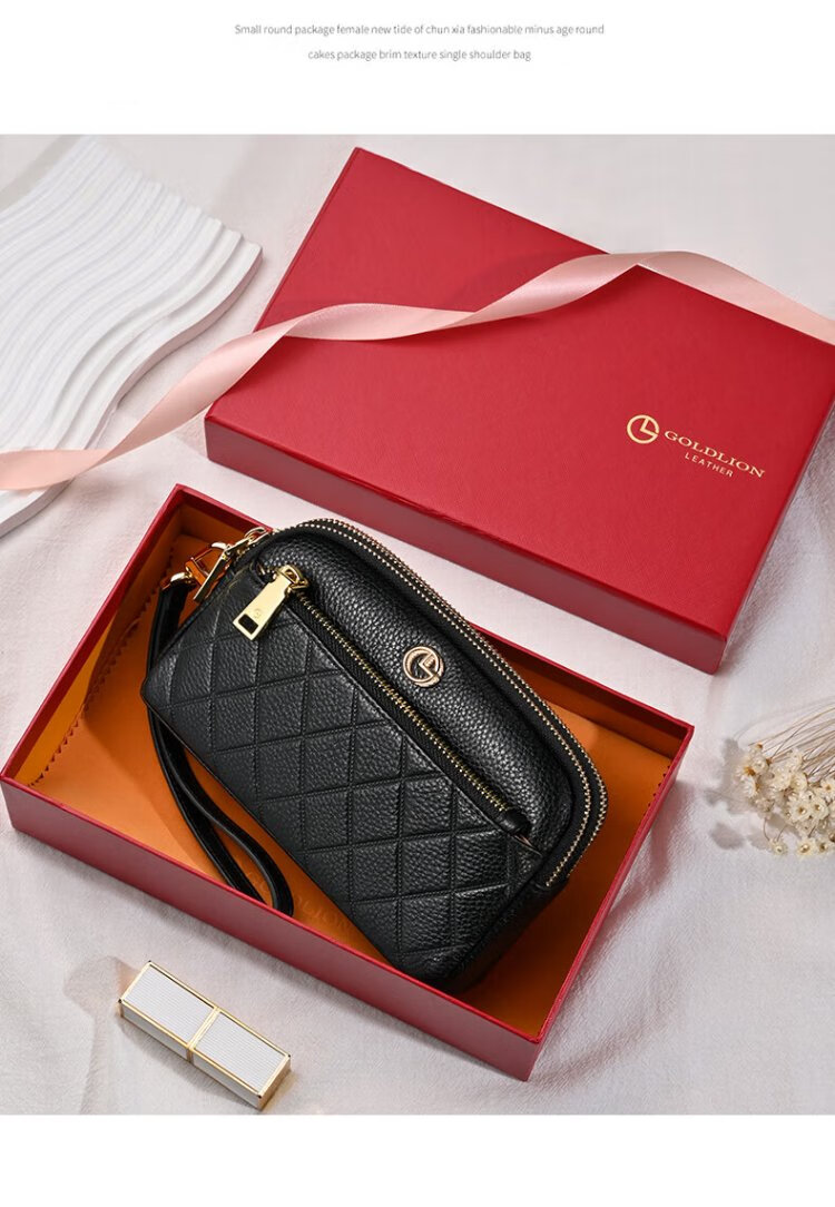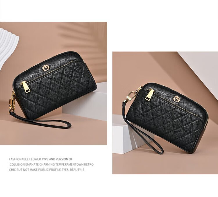 Goldlion Women's Bag Genuine Leather 2025 Summer New Fashion Clutch Zipper Large Capacity Coin Purse Mobile Phone Bag Women's Wallet Black