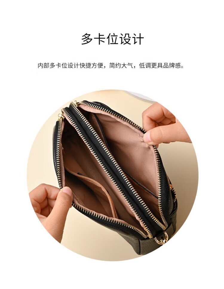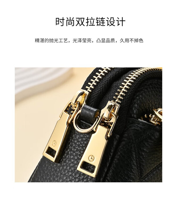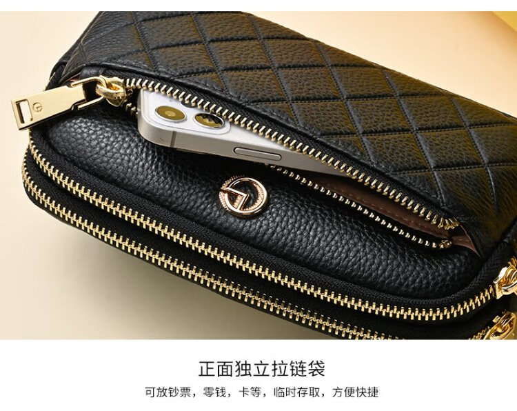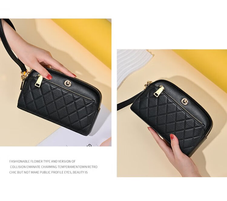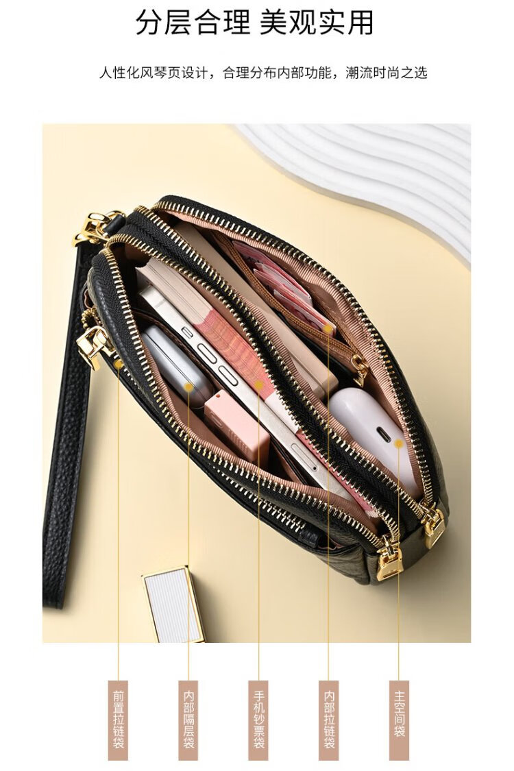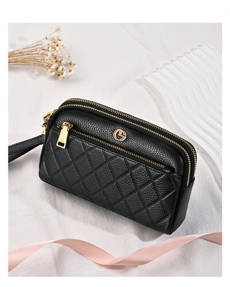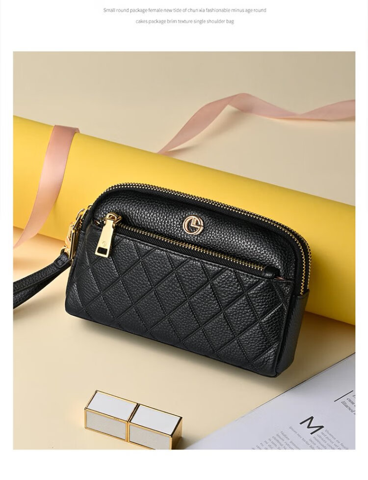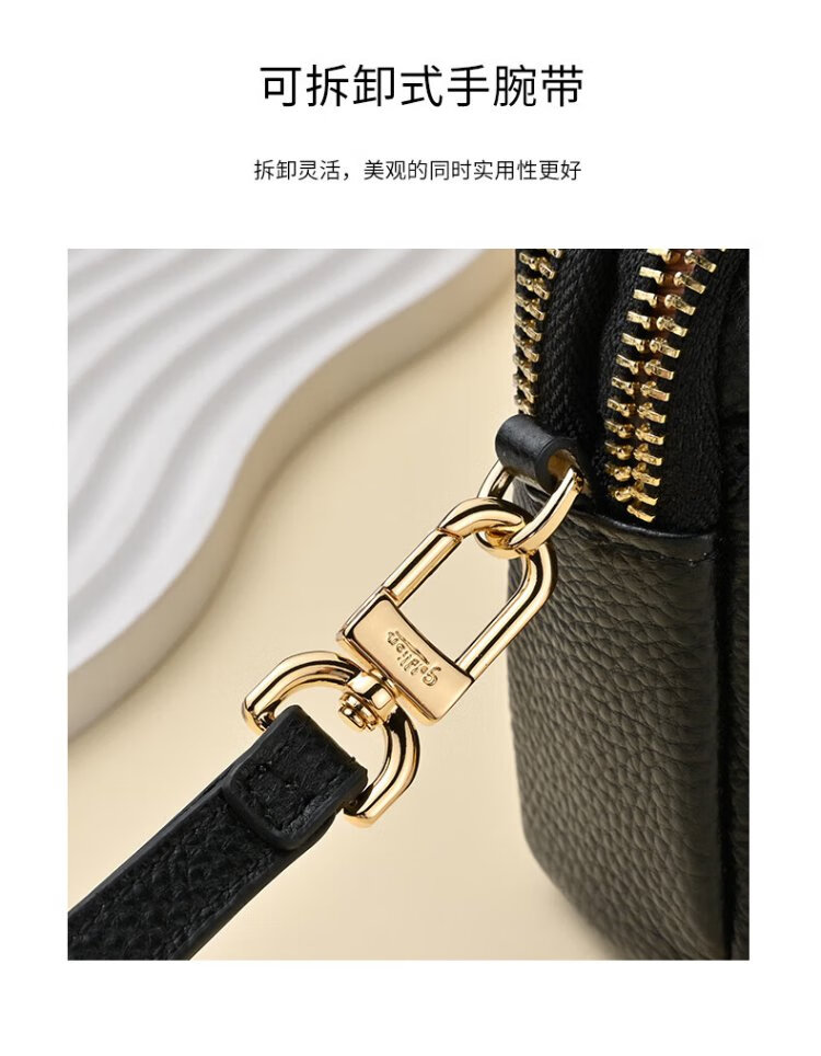 Goldlion Women's Bag Genuine Leather 2025 Summer New Fashion Clutch Zipper Large Capacity Coin Purse Mobile Phone Bag Women's Wallet Black