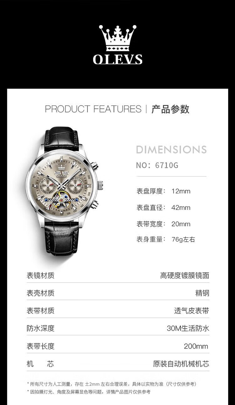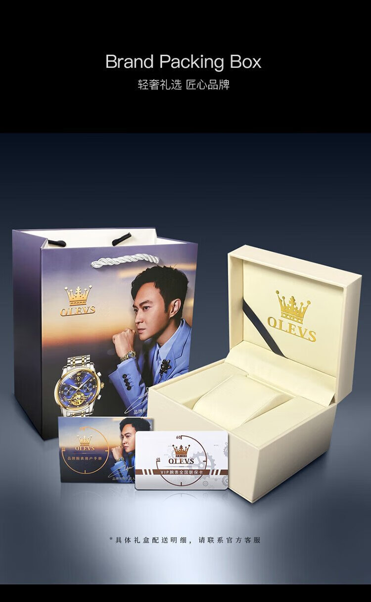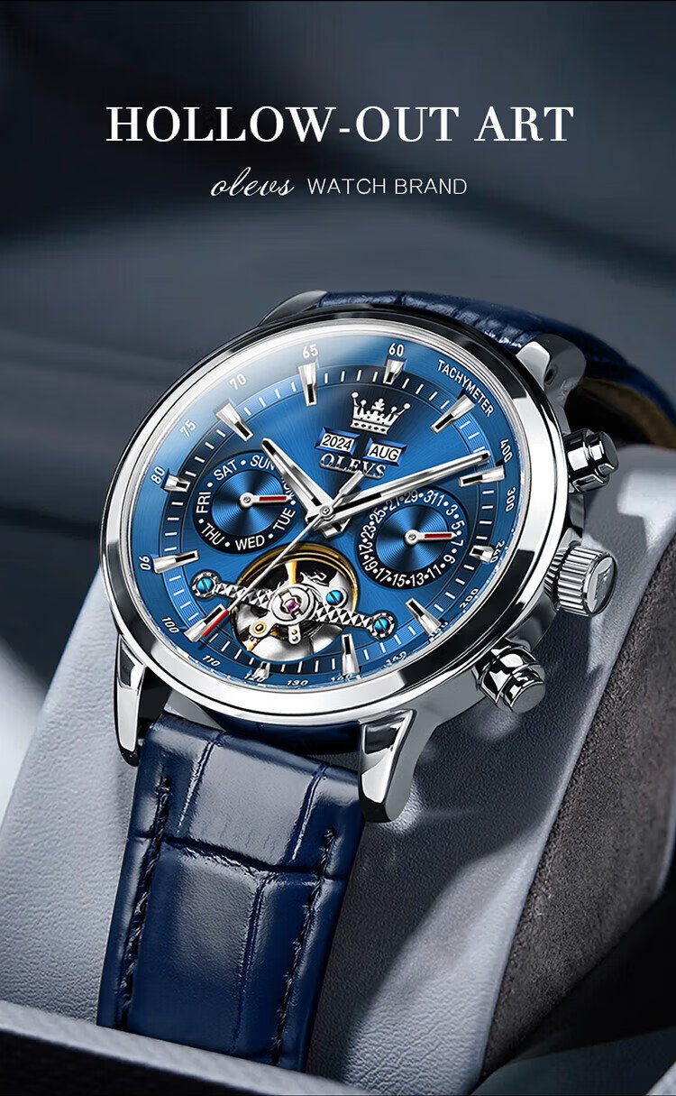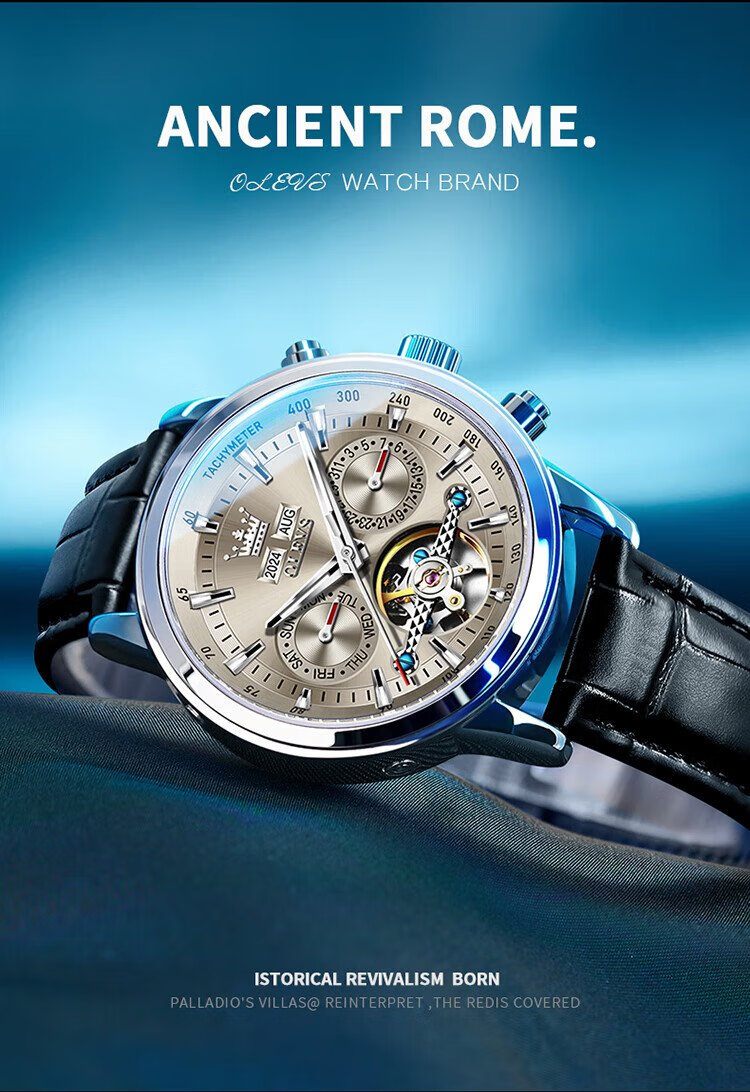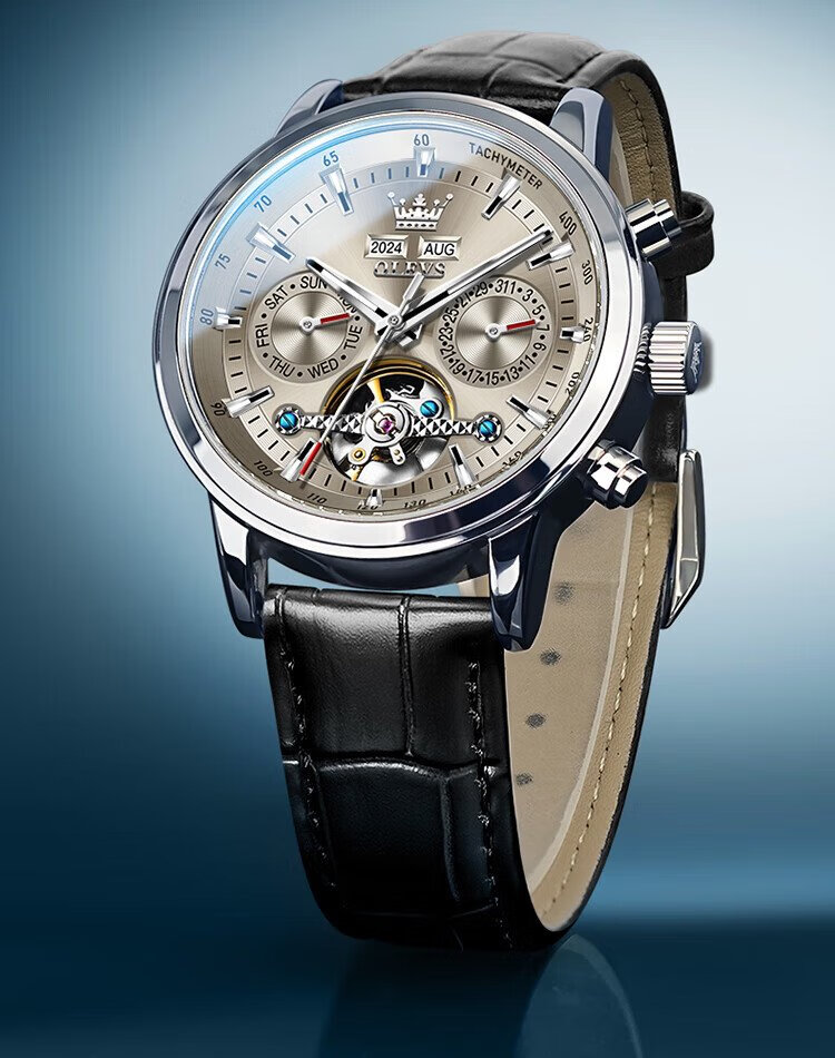OLEVS Swiss Certified Brand Watch Men's Mechanical Watch Fully Automatic Men's Watch Multi-Function Luminous Waterproof Men's Watch Silver Gray Steel Belt | Star Style | Customized Engraving