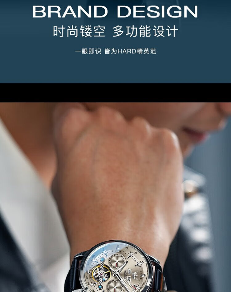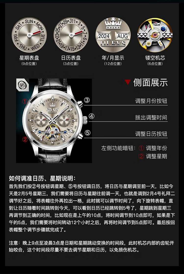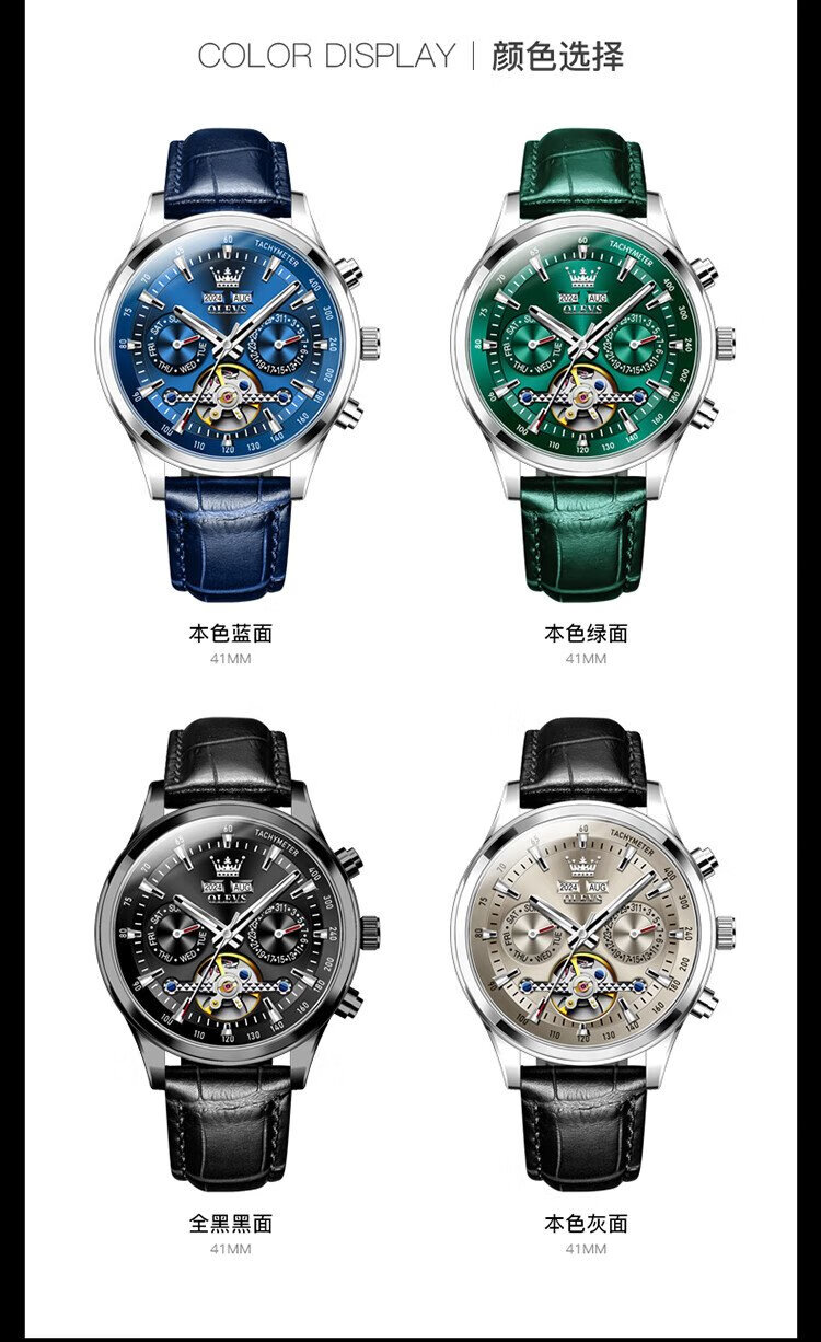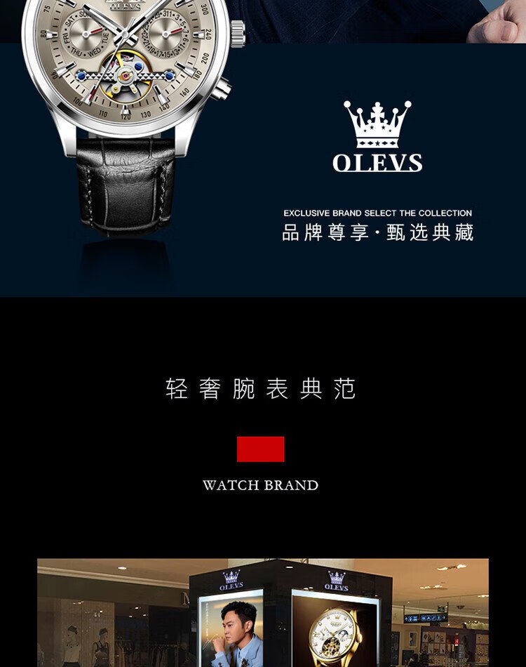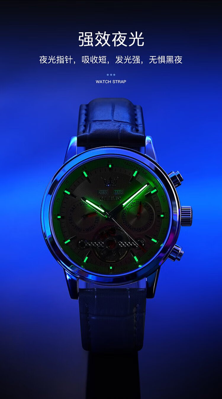 OLEVS Swiss Certified Brand Watch Men's Mechanical Watch Fully Automatic Men's Watch Multi-Function Luminous Waterproof Men's Watch Silver Gray Steel Belt | Star Style | Customized Engraving