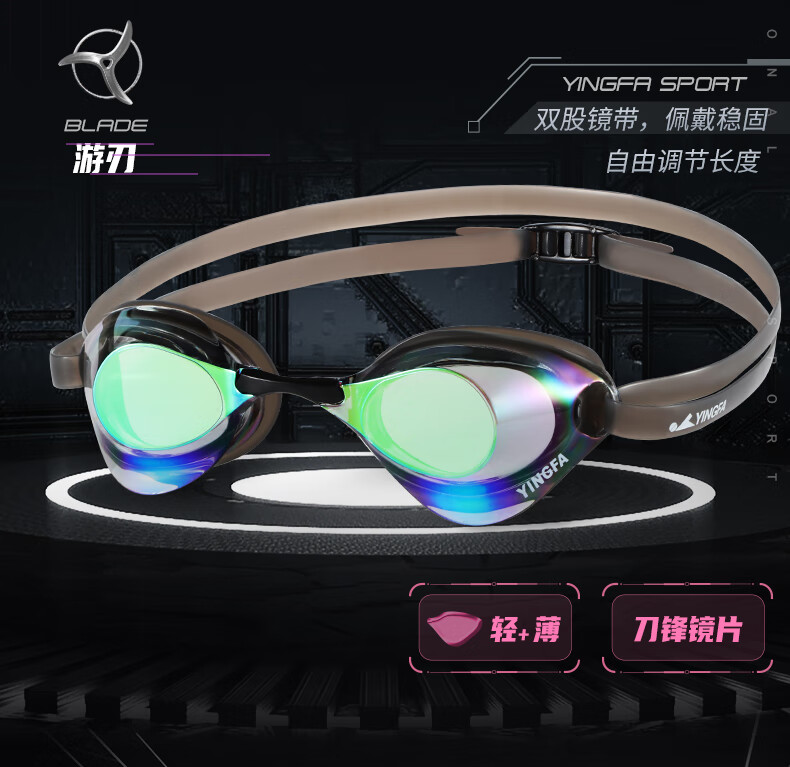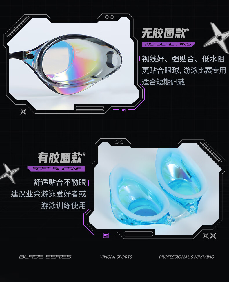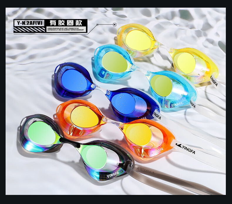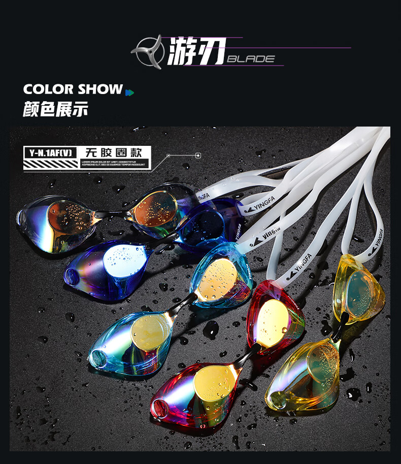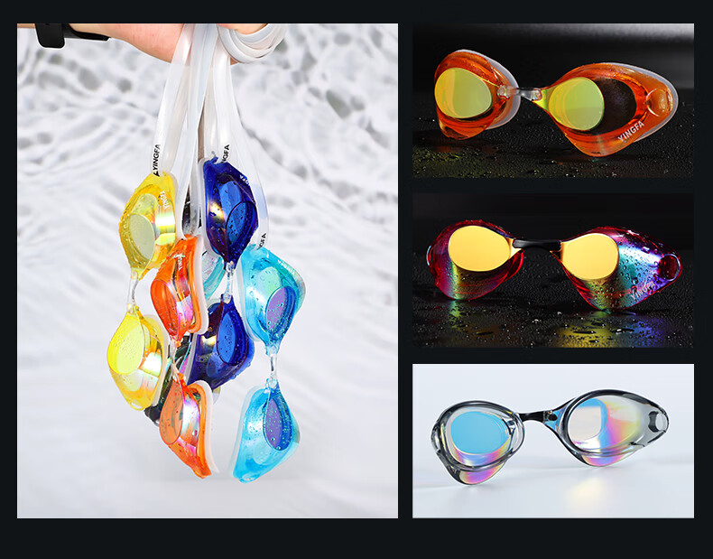 YINGFA shell swimming goggles without rubber gasket, professional racing electroplated swimming goggles, waterproof and anti-fog for men and women competition training -04 black coating, no rubber ring, non-returnable, non-replaceable, flat