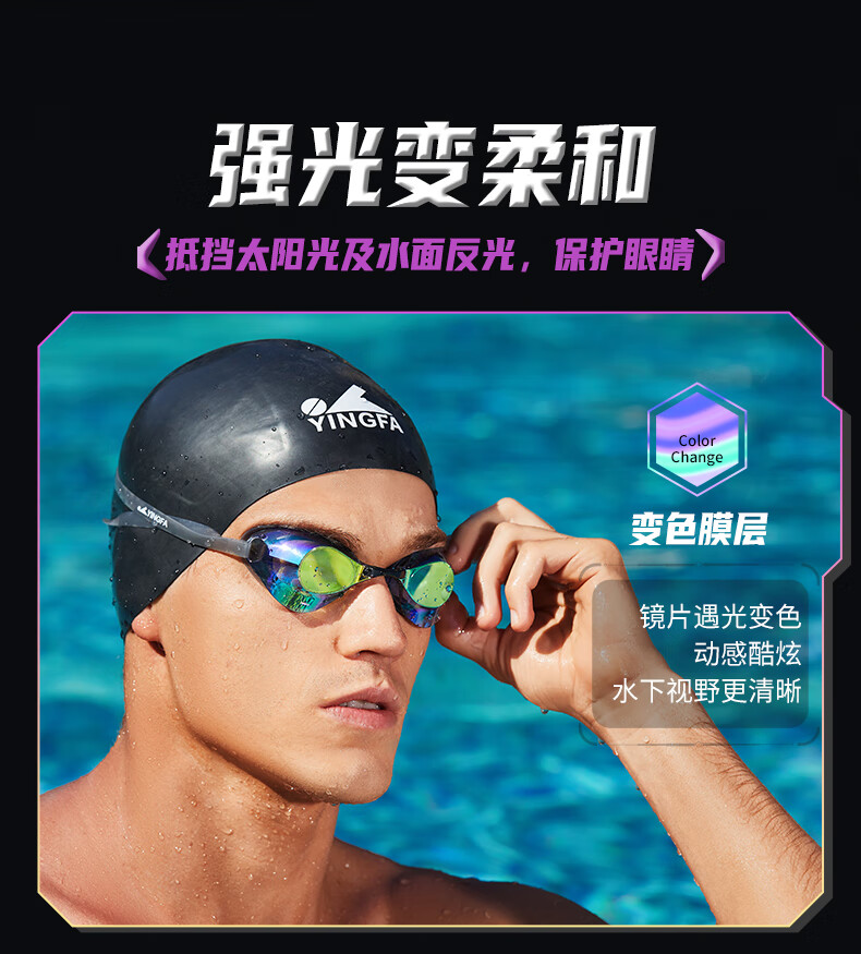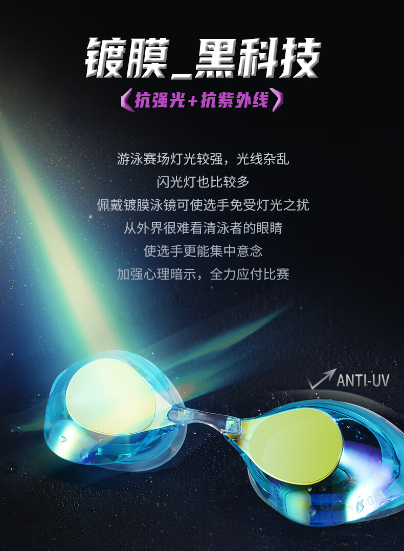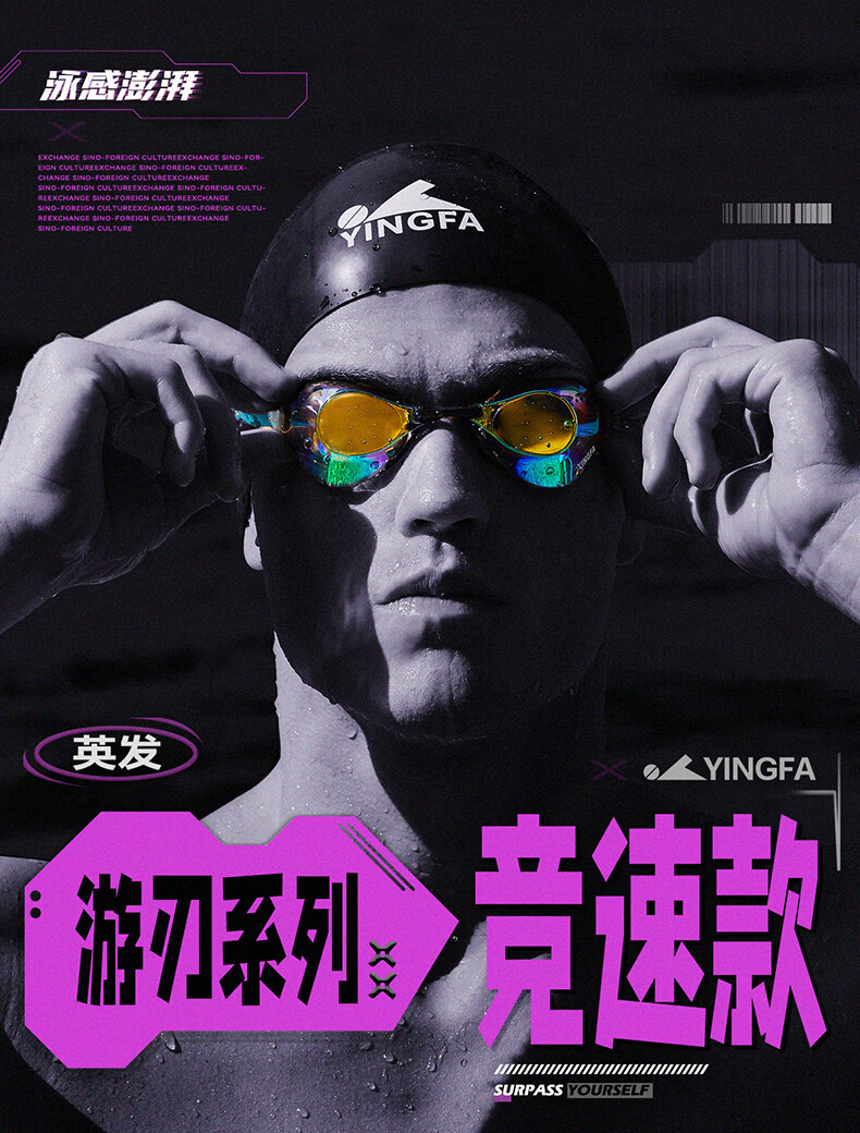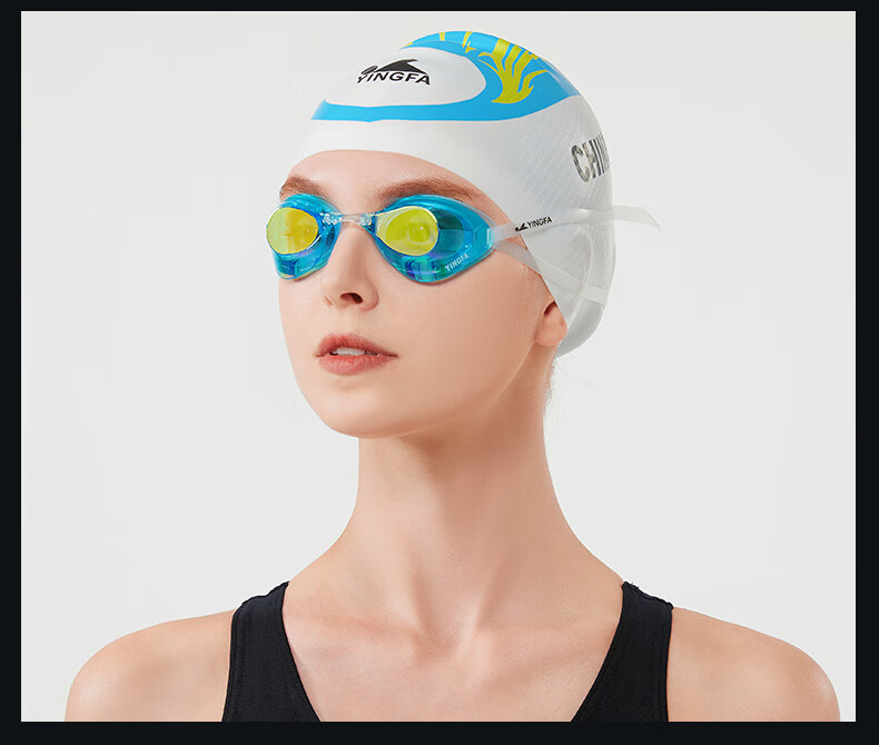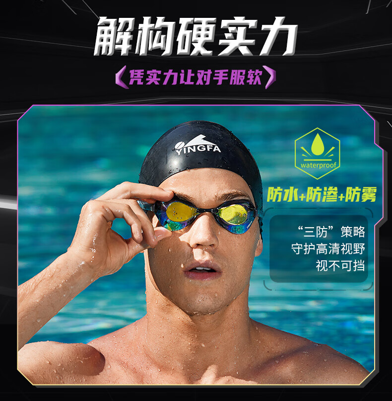 YINGFA shell swimming goggles without rubber gasket, professional racing electroplated swimming goggles, waterproof and anti-fog for men and women competition training -04 black coating, no rubber ring, non-returnable, non-replaceable, flat