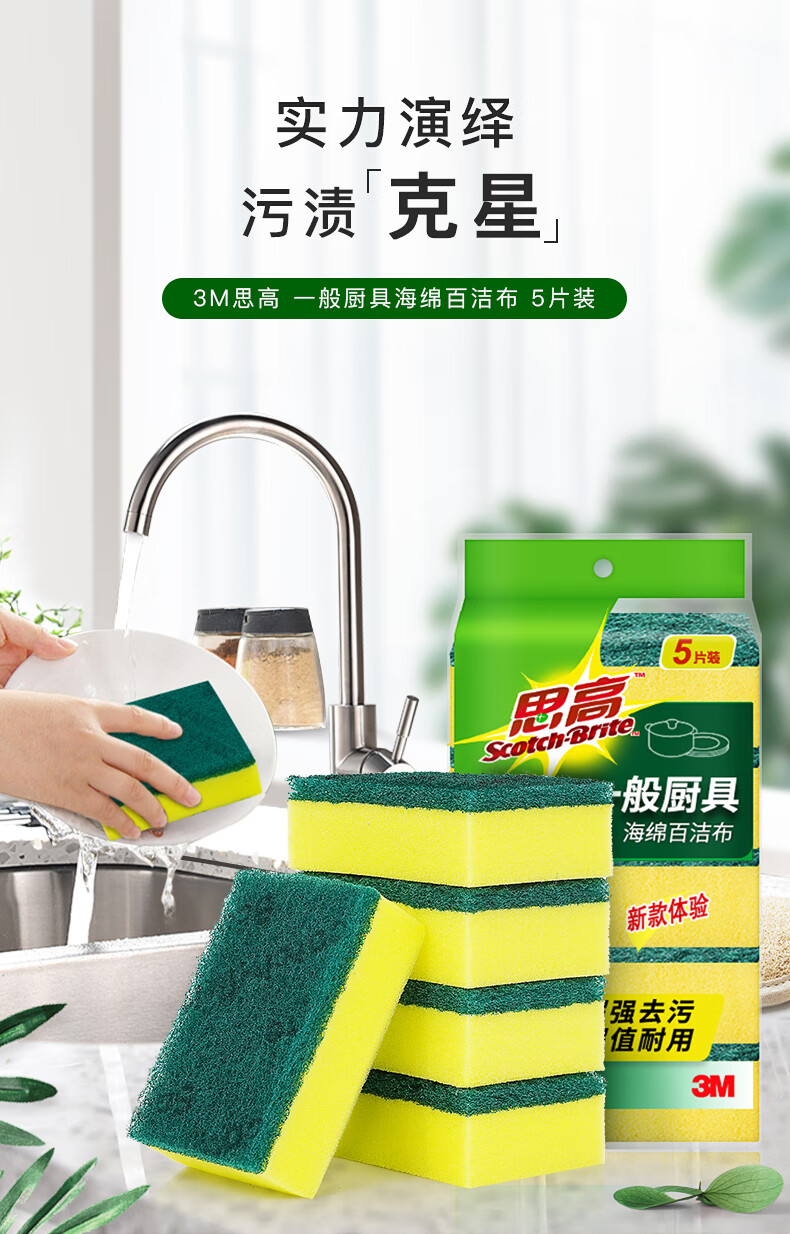 Scotch 3M dishwashing cloth Scotch G6215 dishwashing sponge scouring pad general kitchen utensils classic rag classic sponge scouring pad 5 pieces