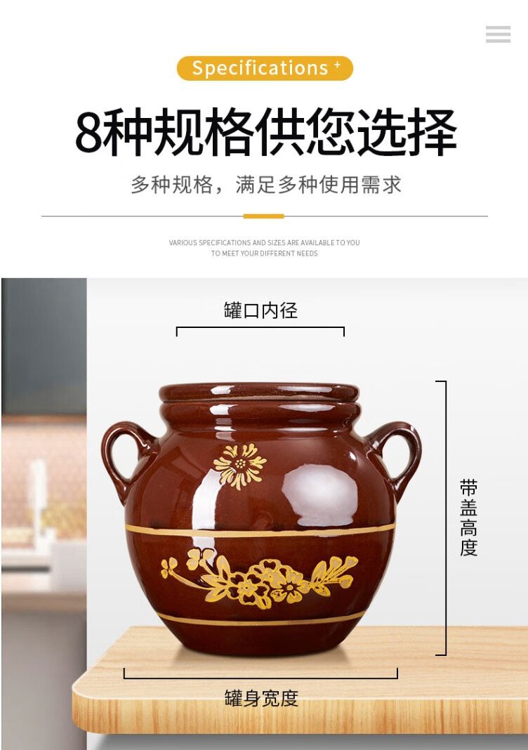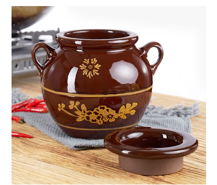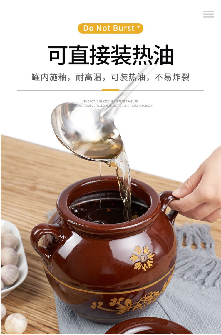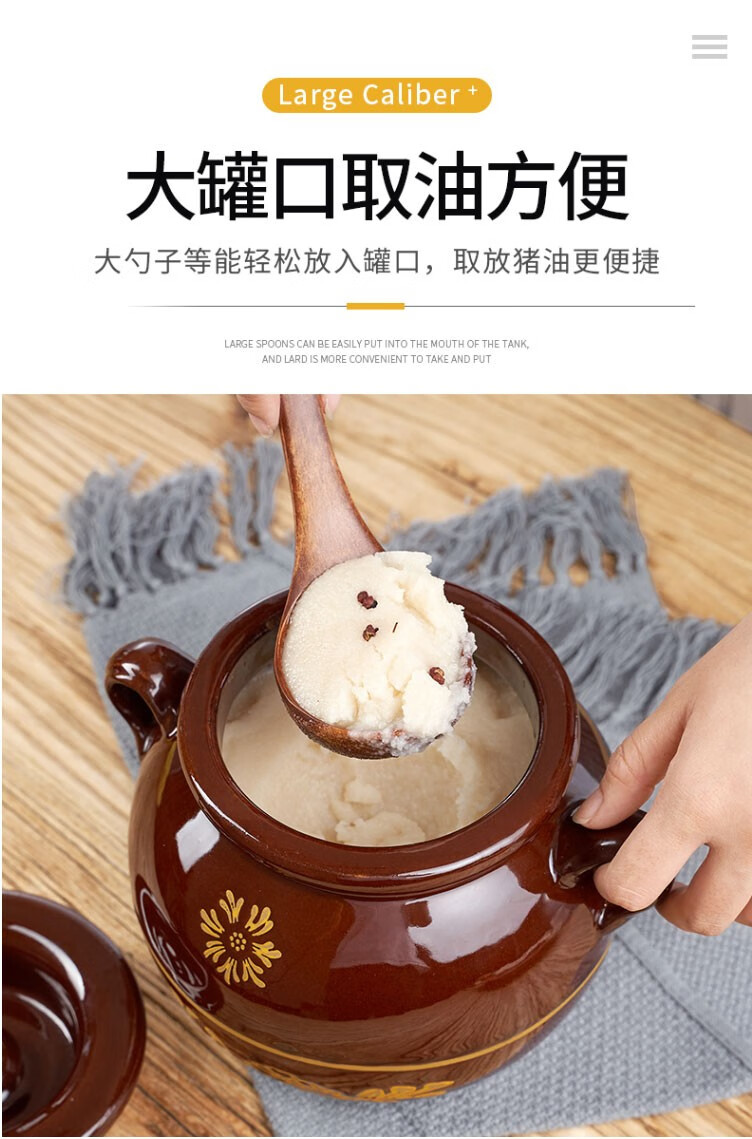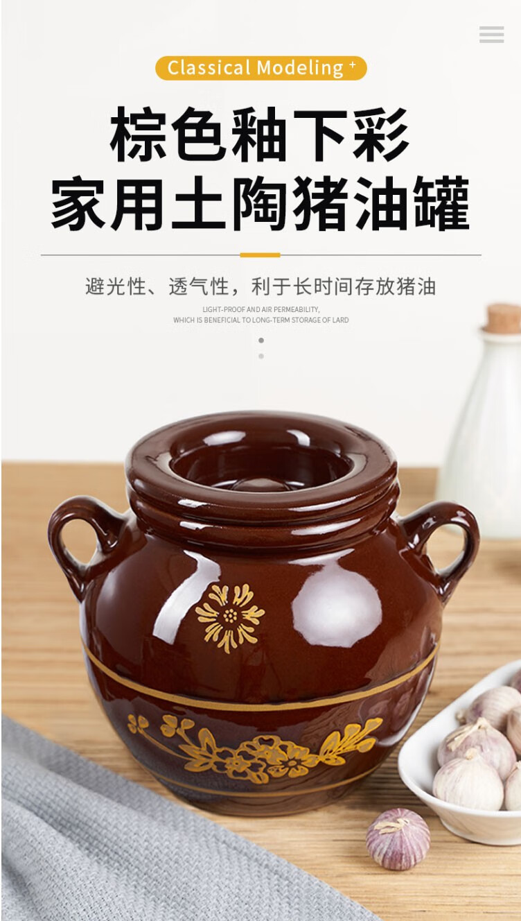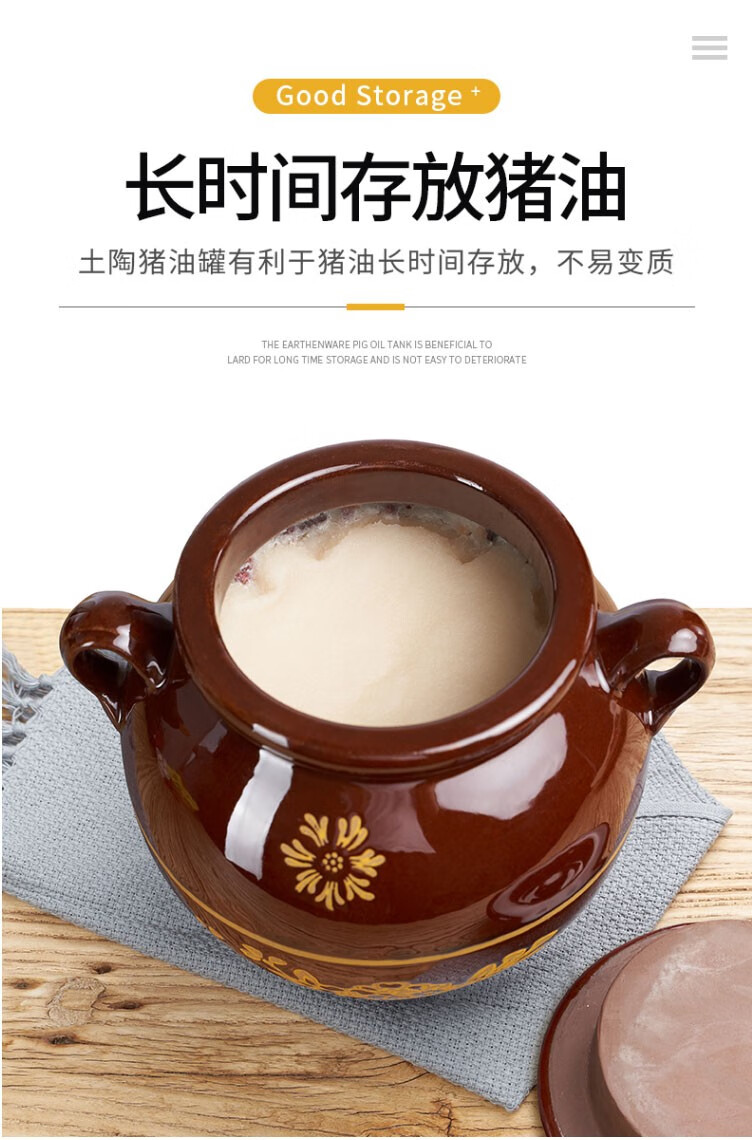 Baichunbao lard tank oil jar porcelain oil jar household old-fashioned ceramic oil jar with lid Chinese style kitchen water capacity 4Jin Jin is equal to 0.5 kg