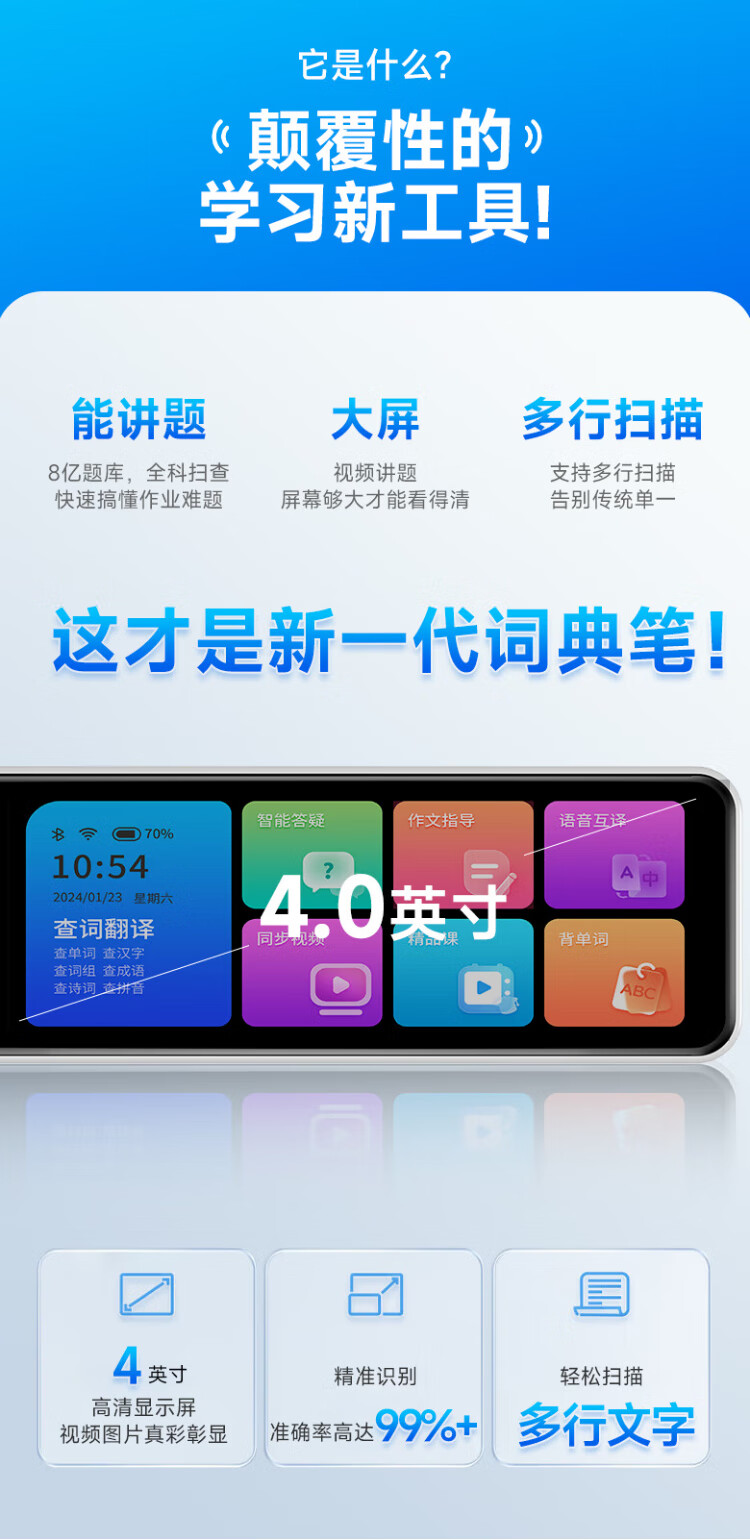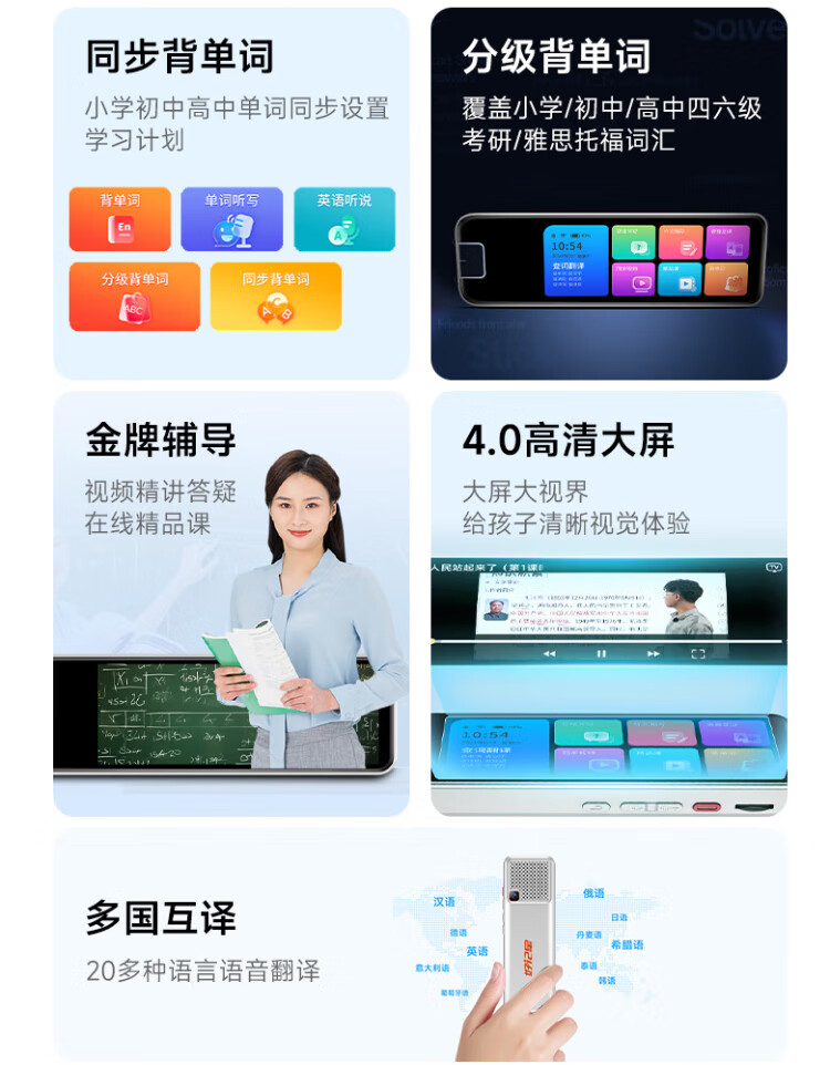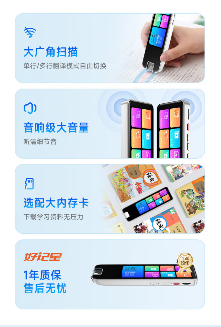 Haojixing 4-inch English reading pen scanning dictionary translation learning machine early education machine primary school high artifact learning 128G luxury 128GB full science + accurate search questions