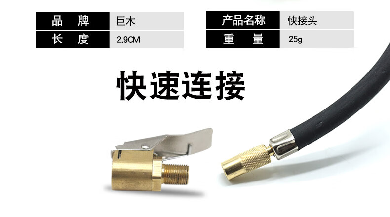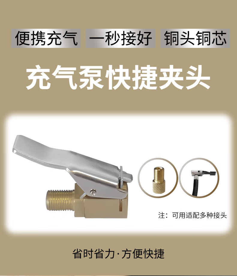 Jumu Car Inflatable Quick Connector Inflator Pump Quick Charge Head Adapter Tire Valve Nozzle Inflation Adapter All Copper Quick Inflation Connector Single Pack