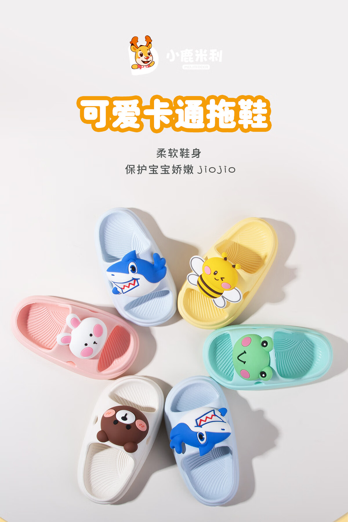 Fawn Milli 2024 Summer Round Head Animal Slippers Pink Single Layer Rabbit Inner Length 14cm