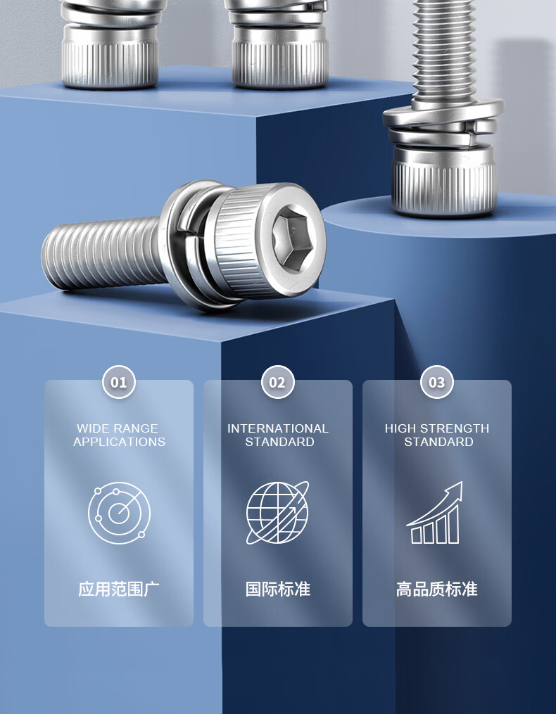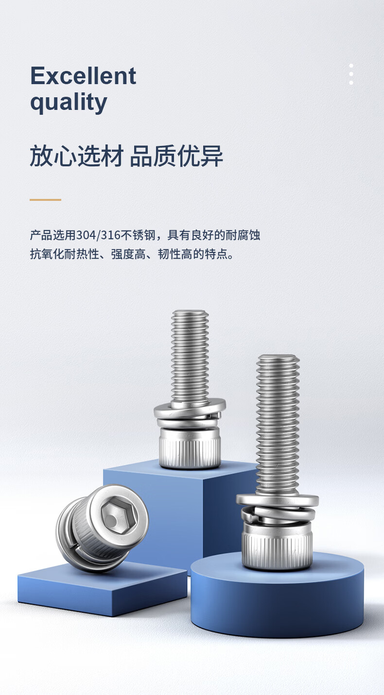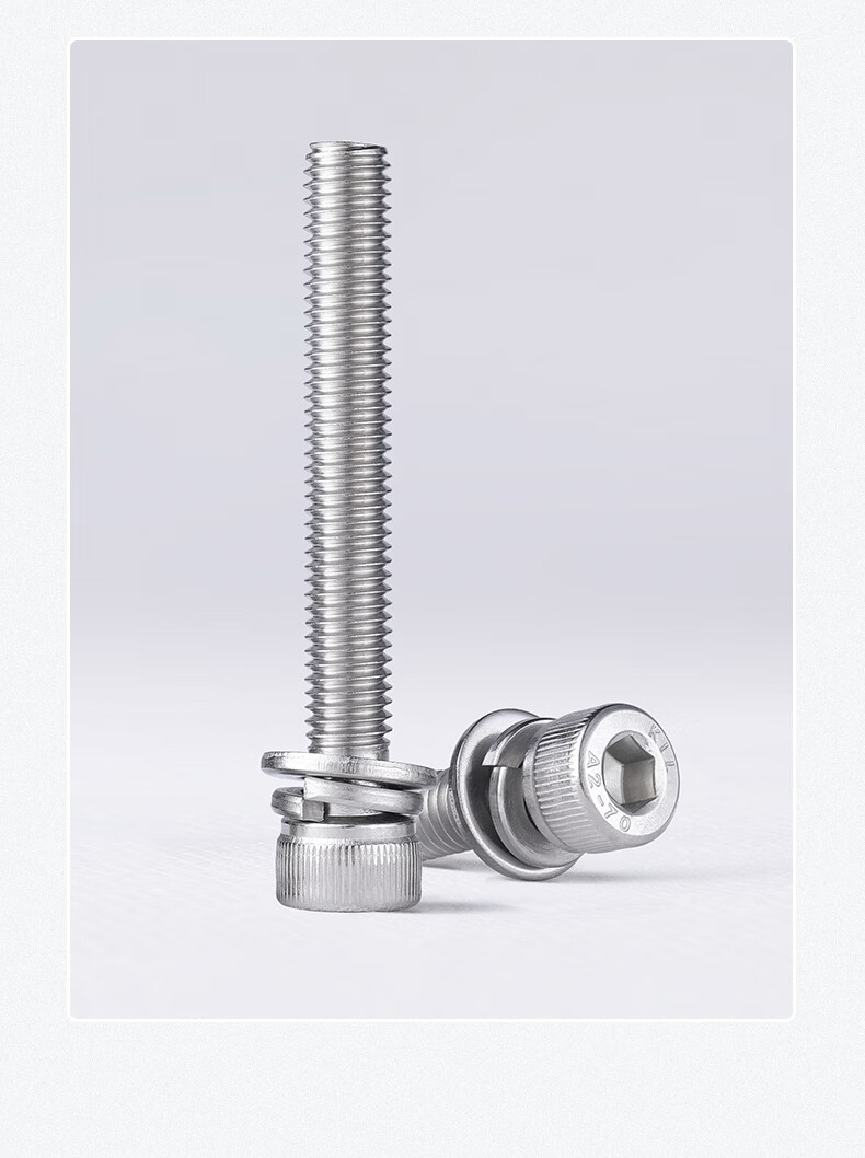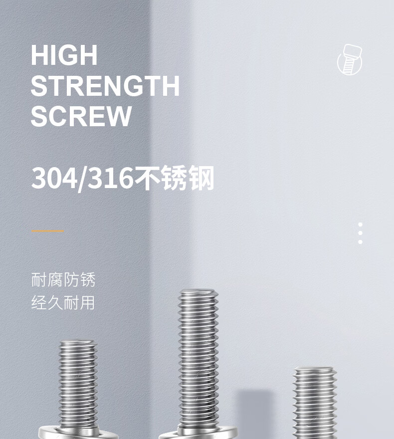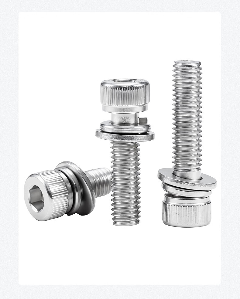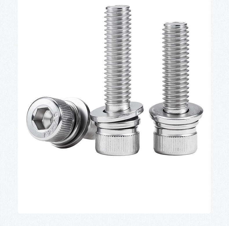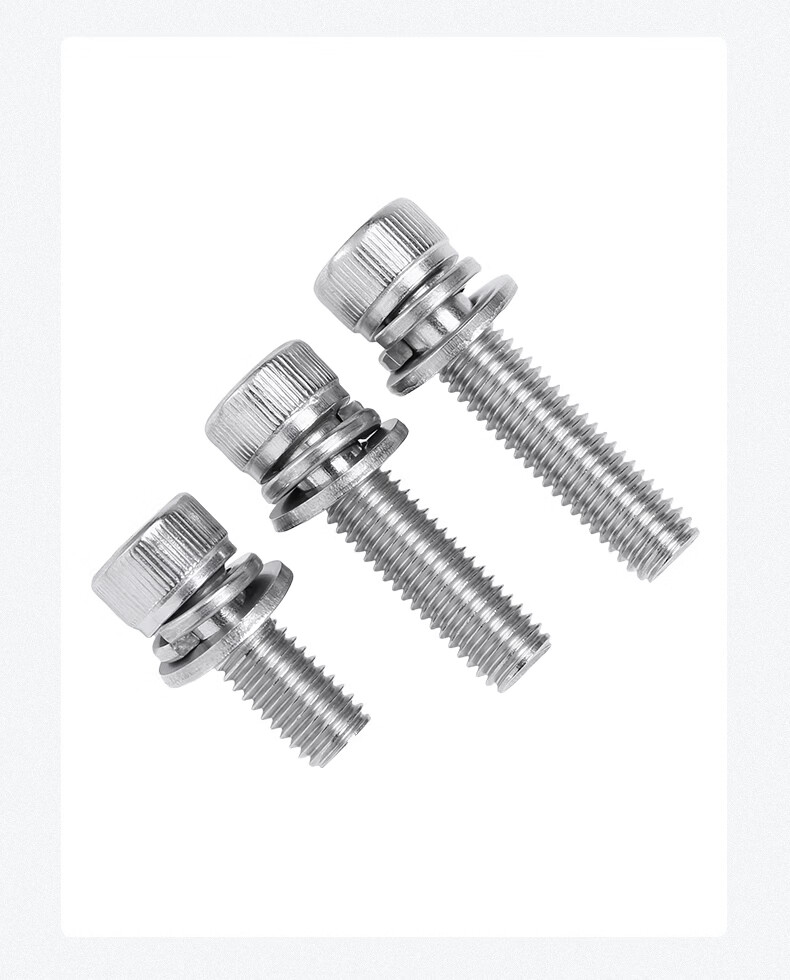 304 stainless steel three-combination hexagonal socket screws with cylindrical head and flat spring washer screws and extended 316 stainless steel cup head bolts and screws M6*16 20 sets 304
