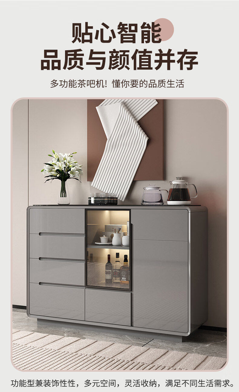 Shengjiang Liangcai tea bar machine integrated cabinet smart home living room light luxury multi-functional water dispenser wall sideboard tea cabinet wine cabinet 120 wide 38 thick 95 high (gentleman gray) warm
