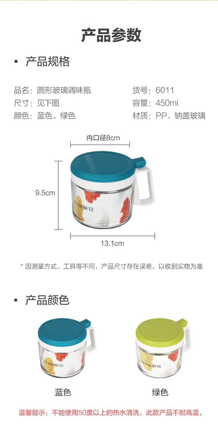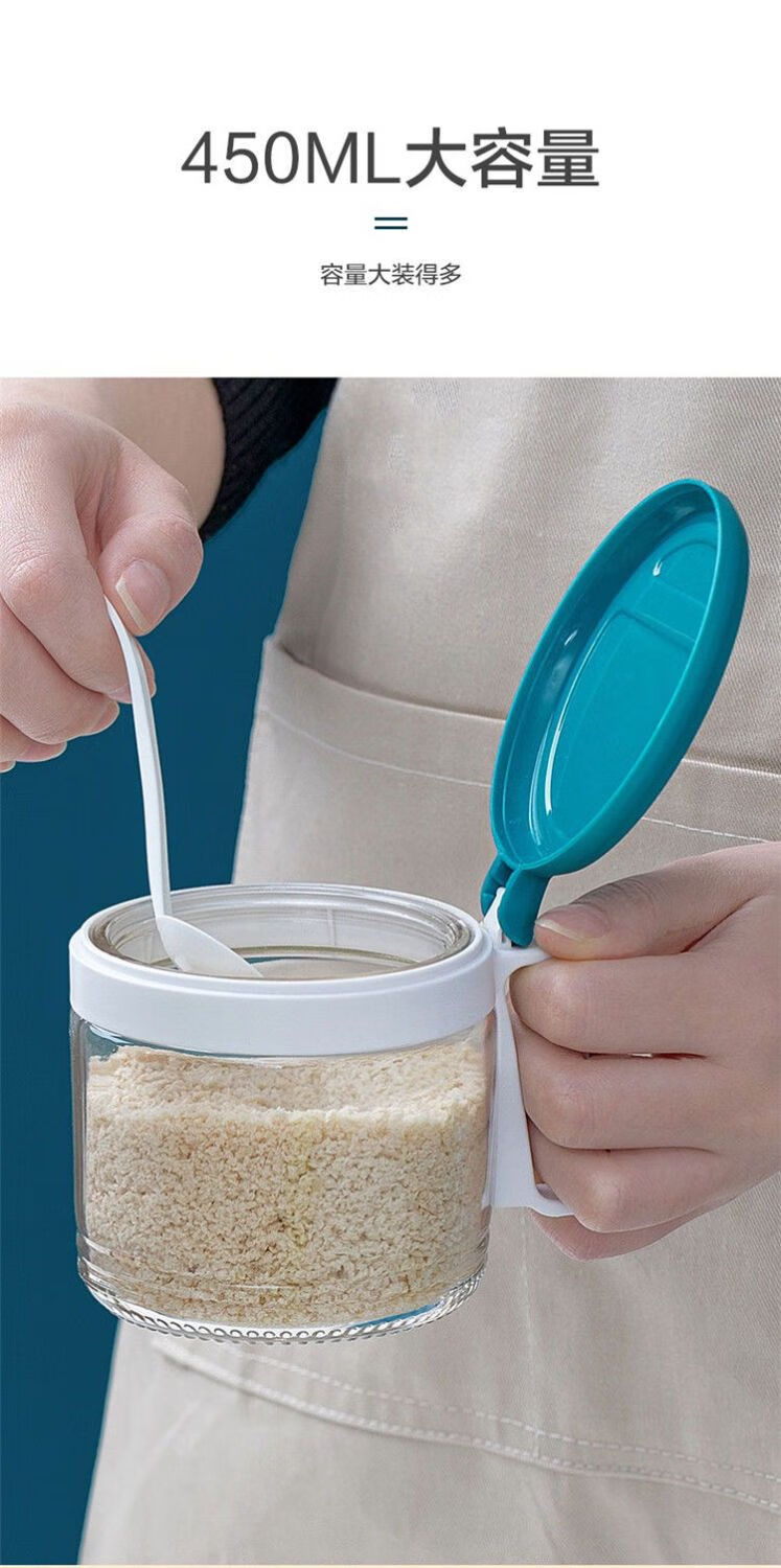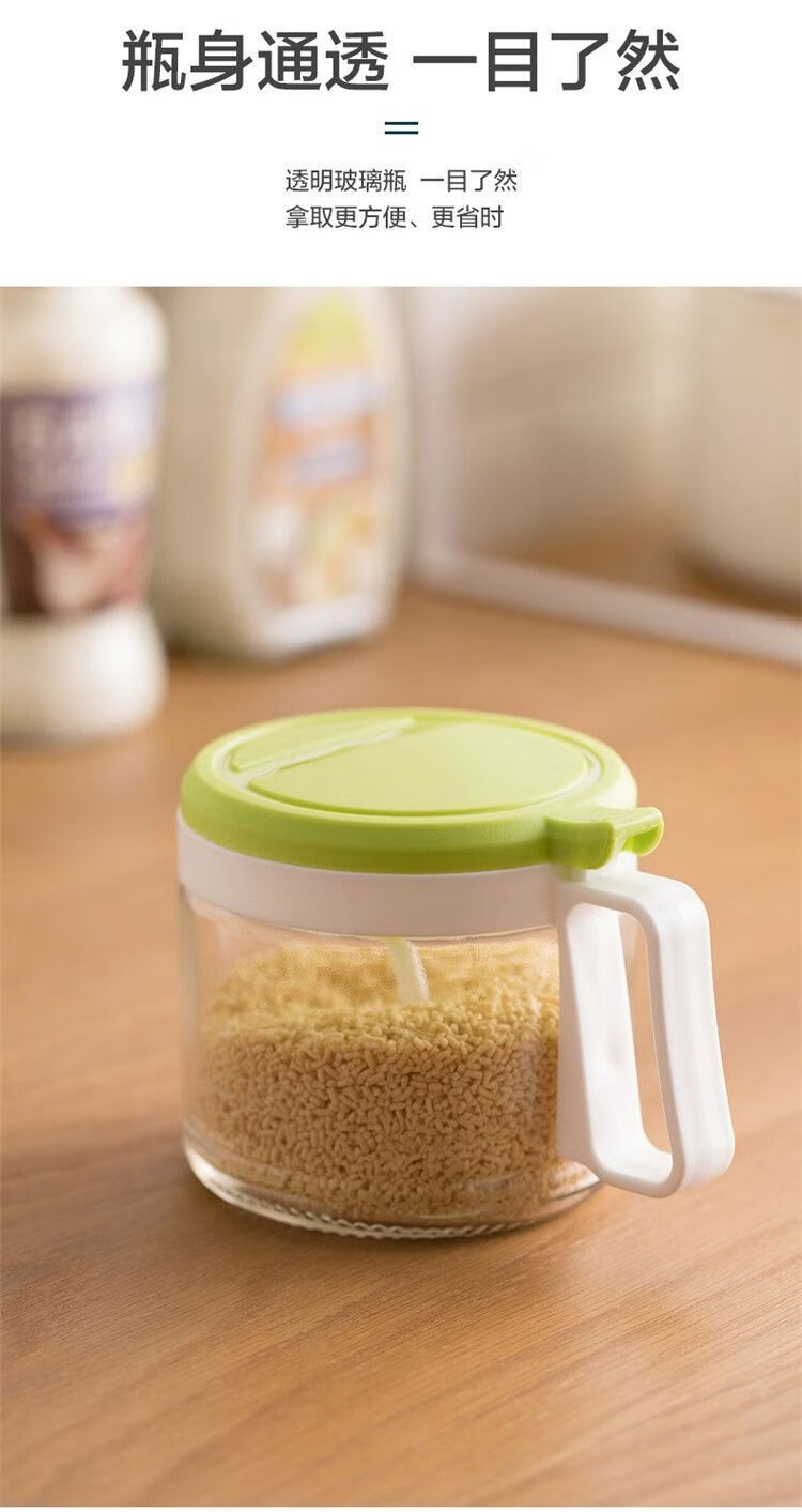Camellia seasoning jar household seasoning bottle food grade glass seasoning box kitchen salt jar sugar jar storage jar dustproof and moisture-proof green 450ml