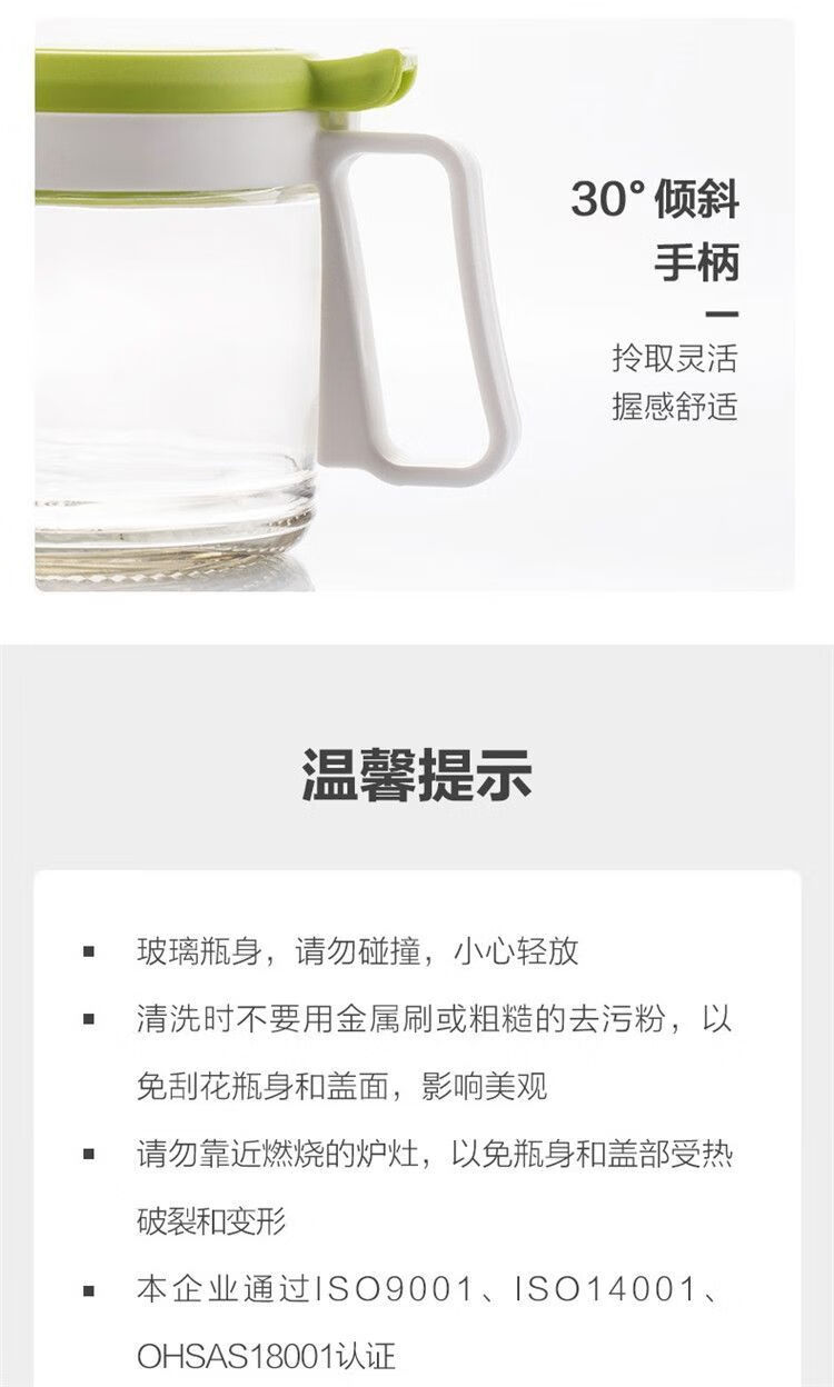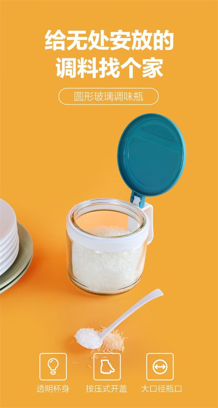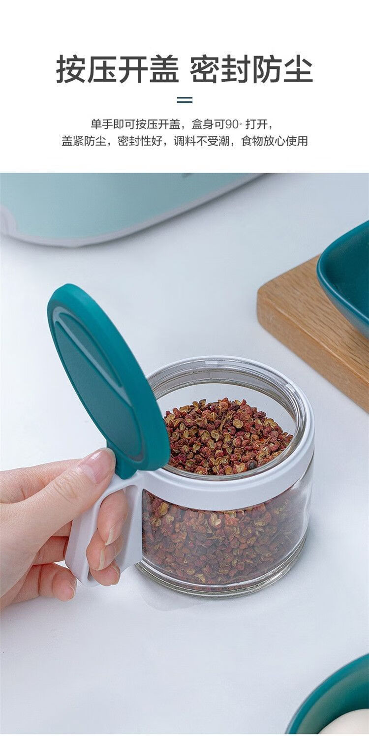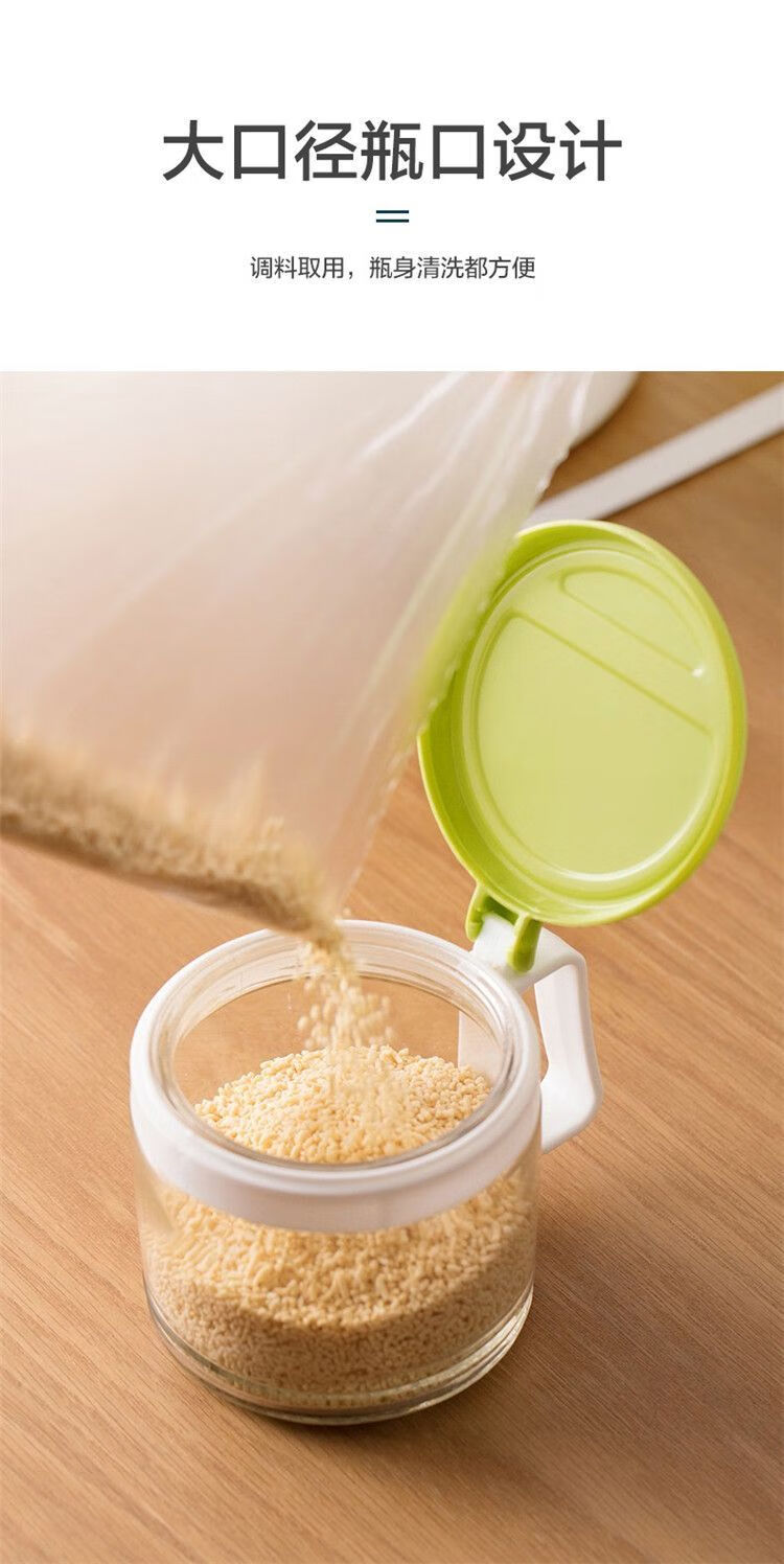 Camellia seasoning jar household seasoning bottle food grade glass seasoning box kitchen salt jar sugar jar storage jar dustproof and moisture-proof green 450ml