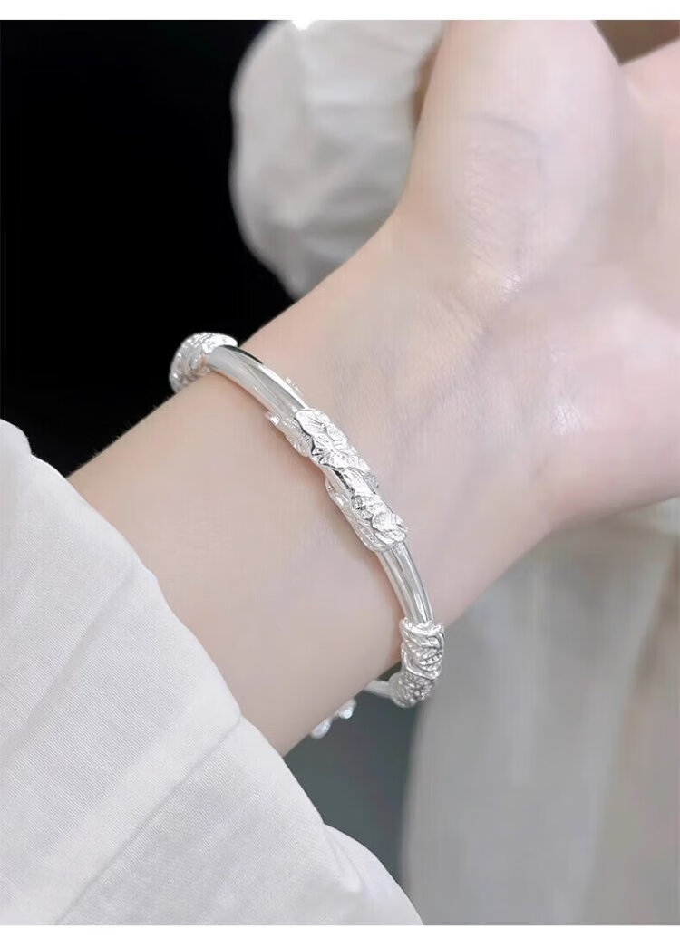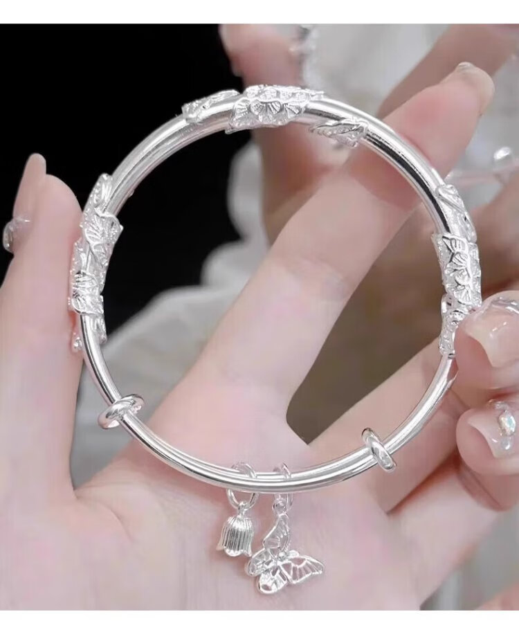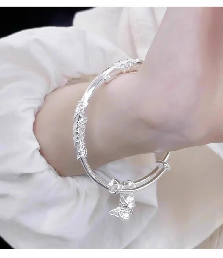 China Gold Butterfly Love Flowers Pure Silver 999 Solid Silver Bracelet Women's Silver Bracelet Children's Birthday Gift for Girlfriends and Besties 999 Pure Silver Butterfly Love Flowers Silver Bracelet