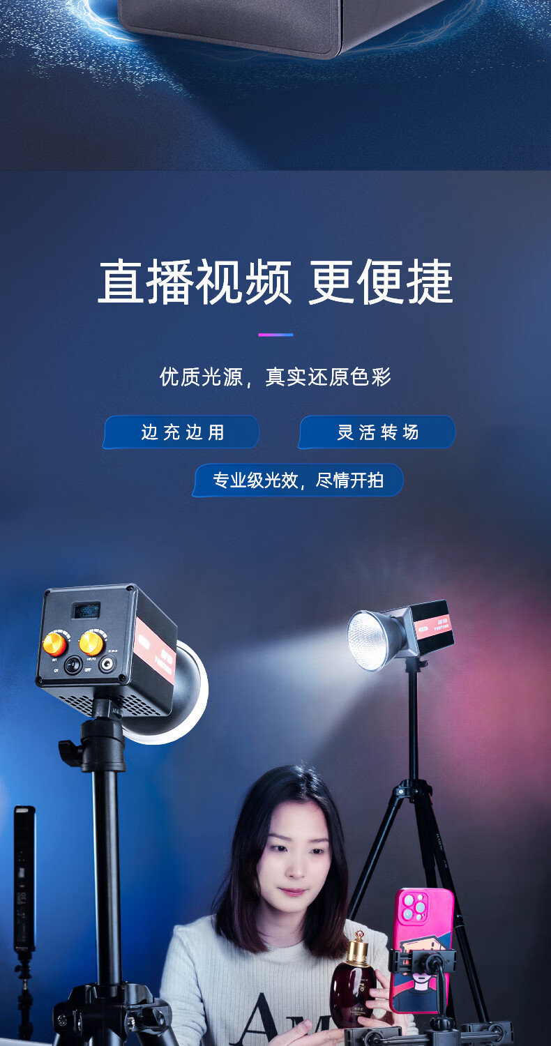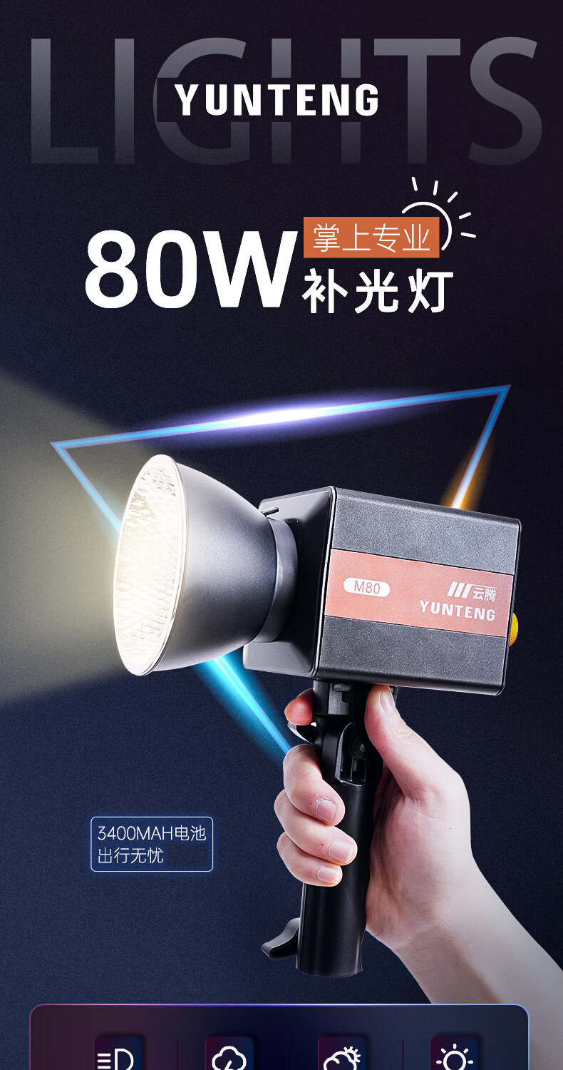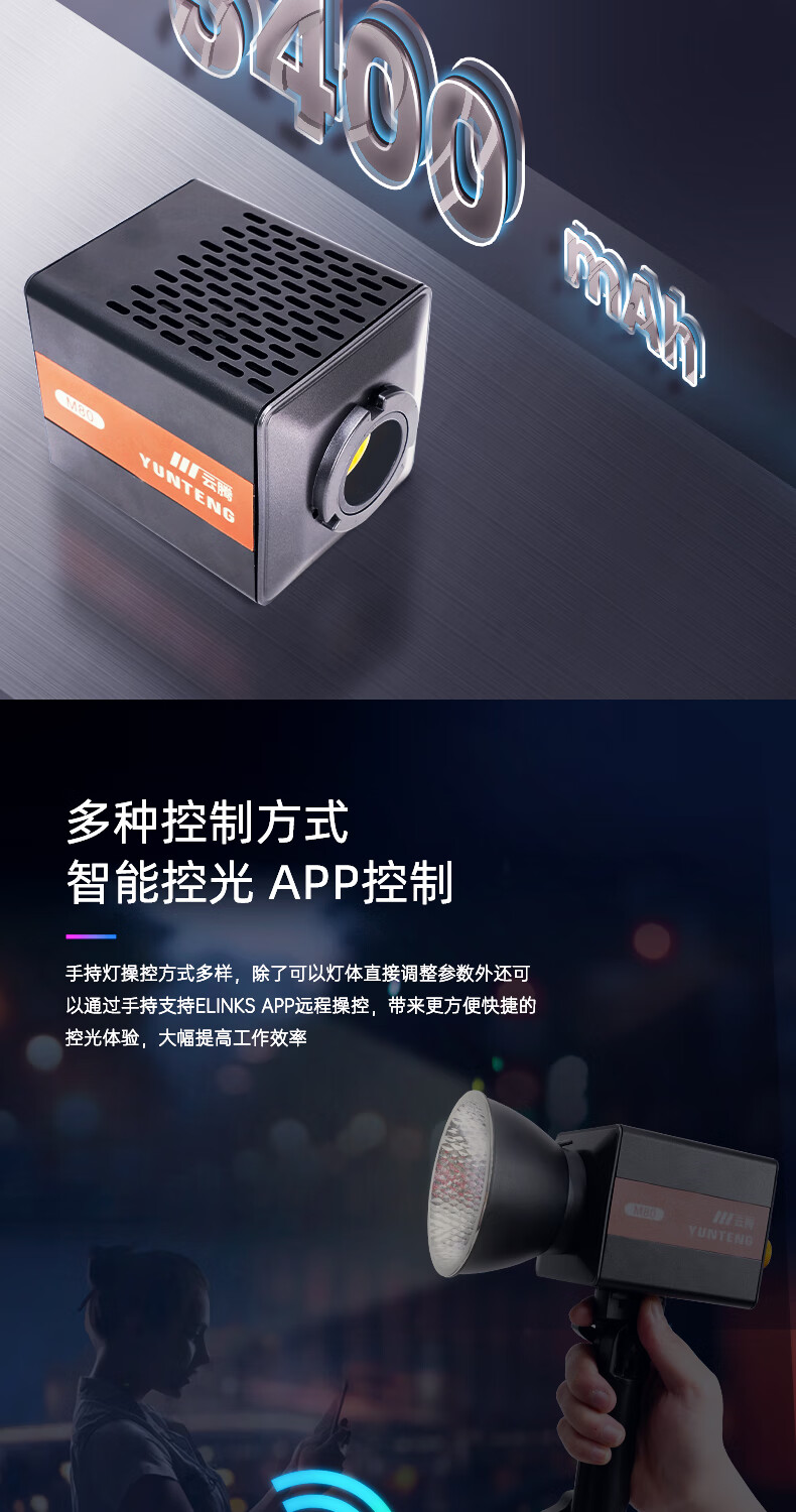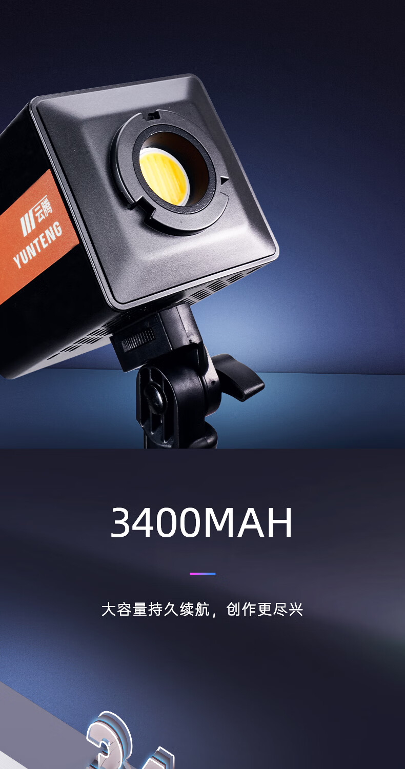 Yunteng 80W dual color temperature COB fill light indoor live broadcast light with built-in battery portable photography light video shooting recording soft light portrait photo lighting light film and television spotlight dual color temperature 80W handheld COB light + 2.1 meter light stand