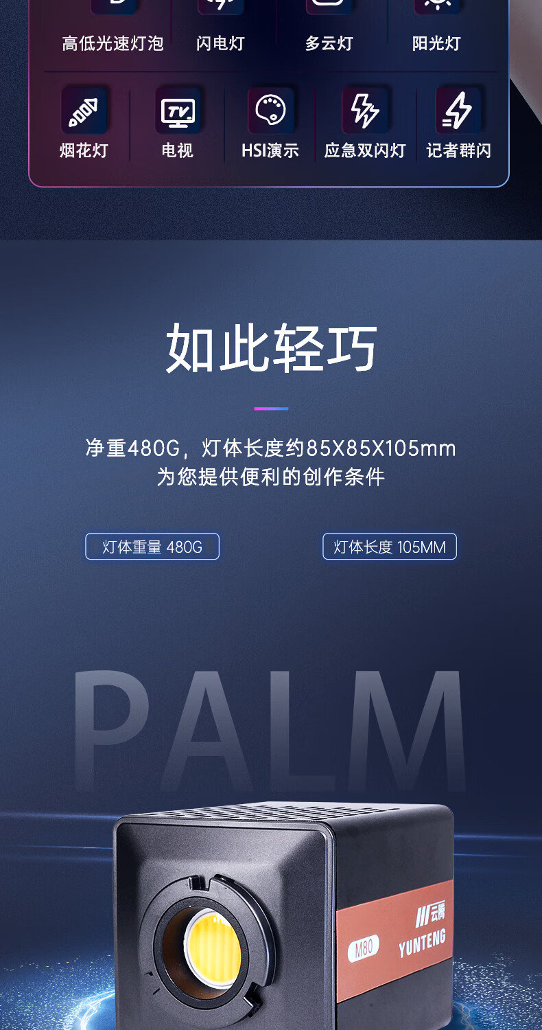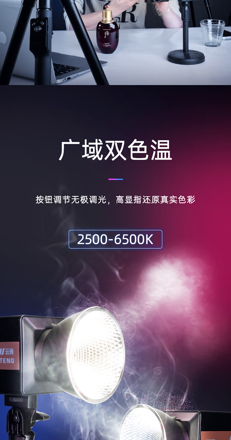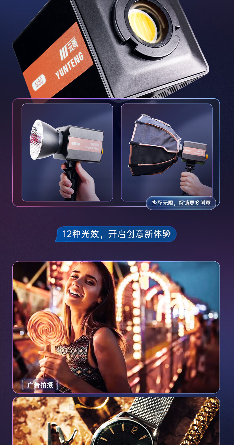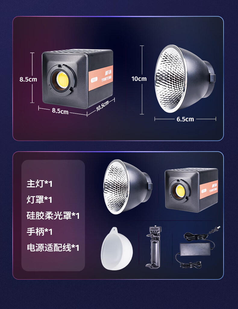 Yunteng 80W dual color temperature COB fill light indoor live broadcast light with built-in battery portable photography light video shooting recording soft light portrait photo lighting light film and television spotlight dual color temperature 80W handheld COB light + 2.1 meter light stand