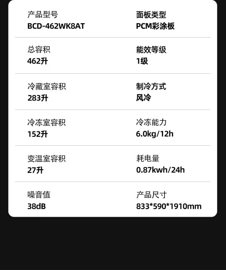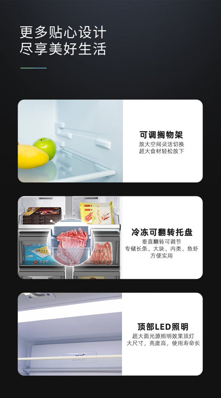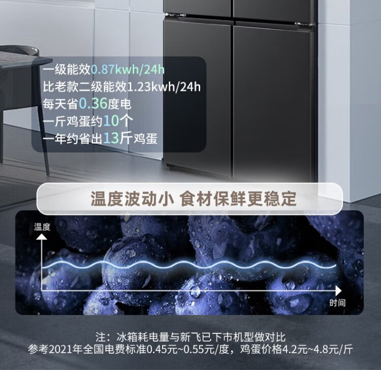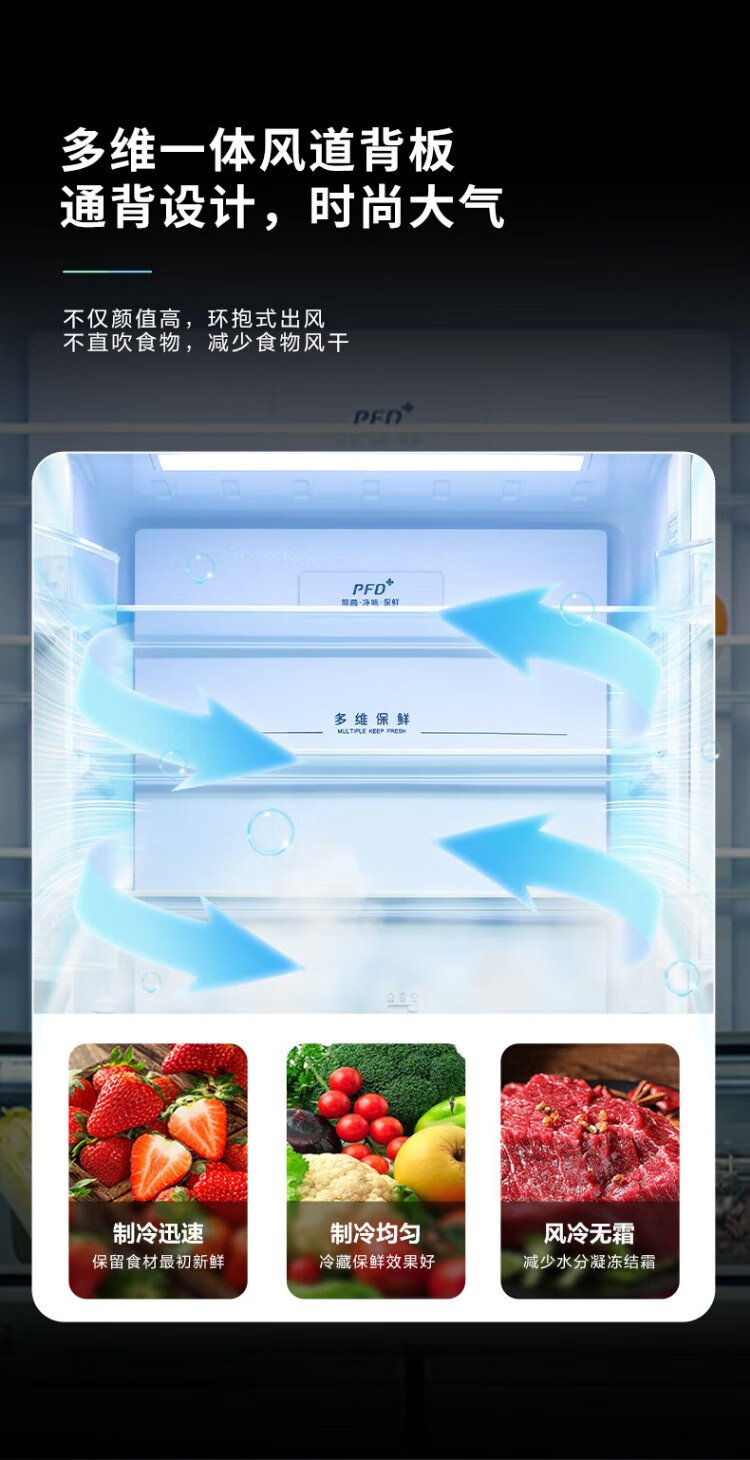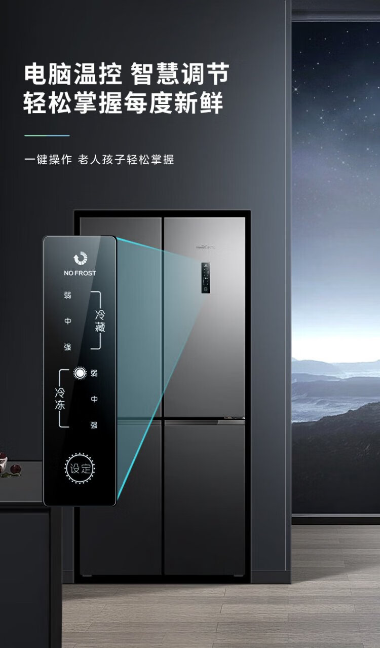 Xinfei Refrigerator 462 liters air-cooled frost-free cross-door refrigerator four-door 59cm ultra-thin and embedded household large-capacity variable frequency first-class energy efficiency energy-saving PFD clean taste and fresh-keeping gray three-speed variable temperature drawer