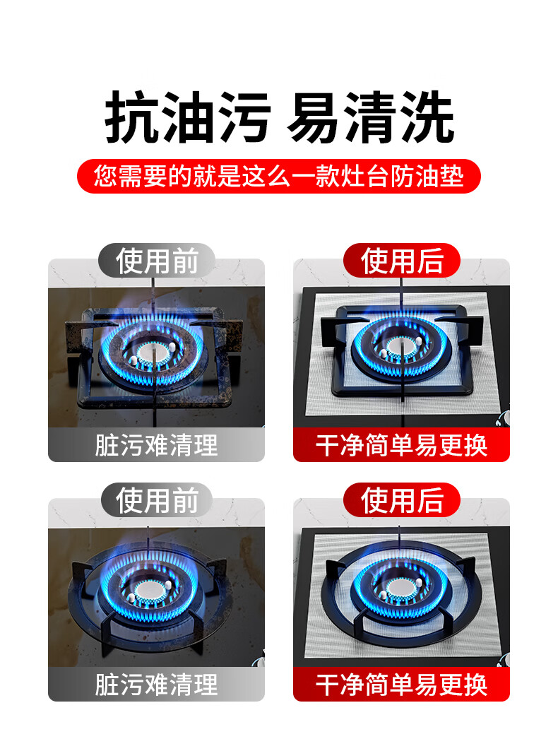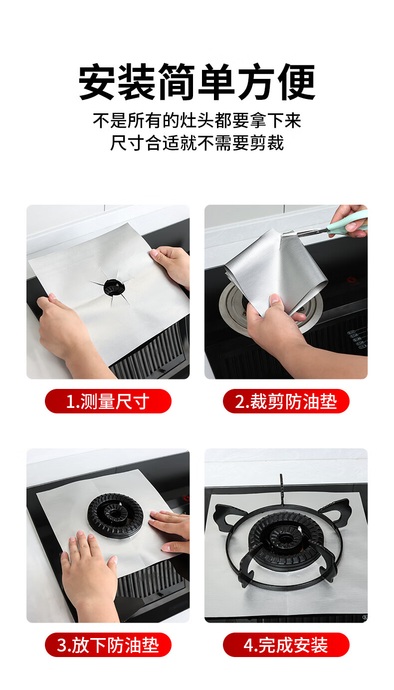 Miloqi high temperature resistant gas stove protective pad thickened household kitchen gas stove oil stain sticker stove top anti-oil stain cleaning pad silver high temperature resistant/anti-oil stain thin 8 pieces