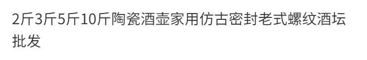 Lianrongku 1Jin Jin is equal to 0.5kg 2Jin Jin is equal to 0.5kg 3Jin Jin is equal to 0.5kg 5Jin Jin is equal to 0.5kg 10Jin Jin is equal to 0.5kg Ceramic wine bottle household antique sealed old-fashioned threaded wine jar wholesale thread 2Jin Jin is equal to 0.5kg (with the word "wine") 1ml