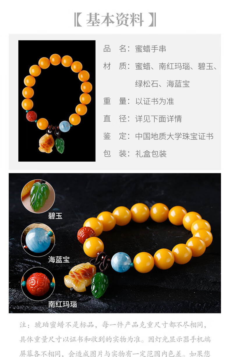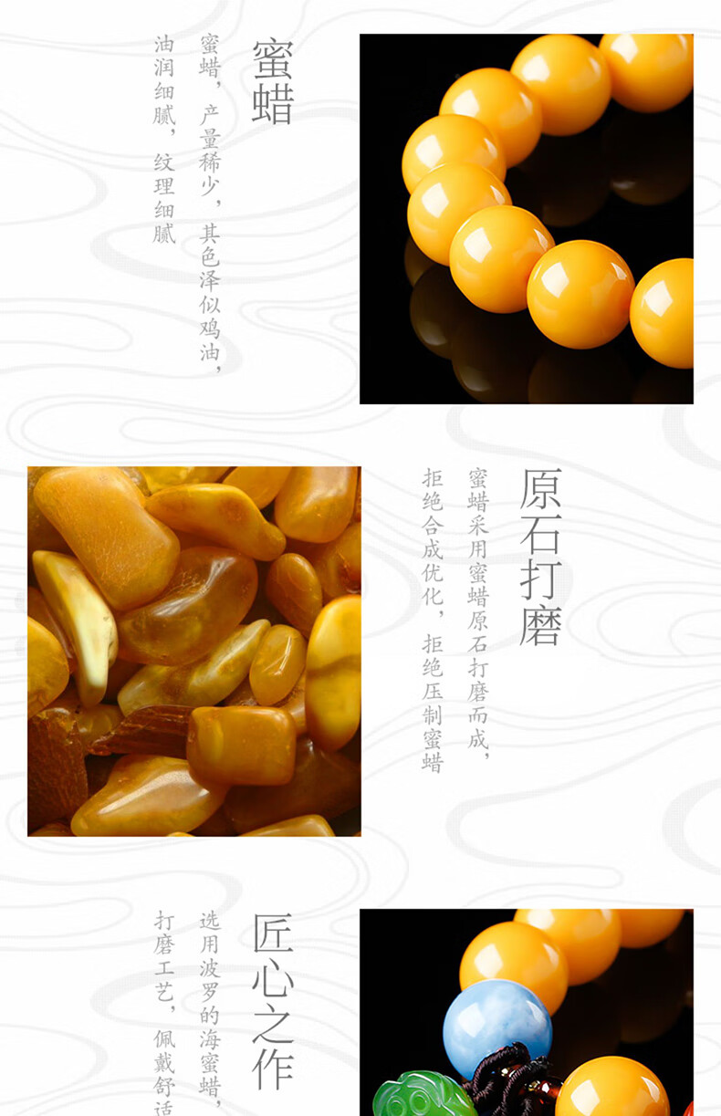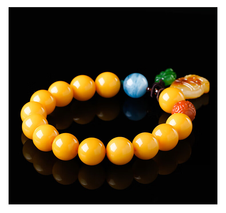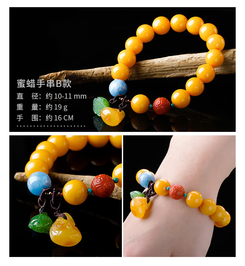 La Yun Feiyin Baltic Sea beeswax bracelet natural amber chicken fat yellow round bead bracelet beeswax fish pendant with jasper jade leaves Type A fish with jasper jade leaves