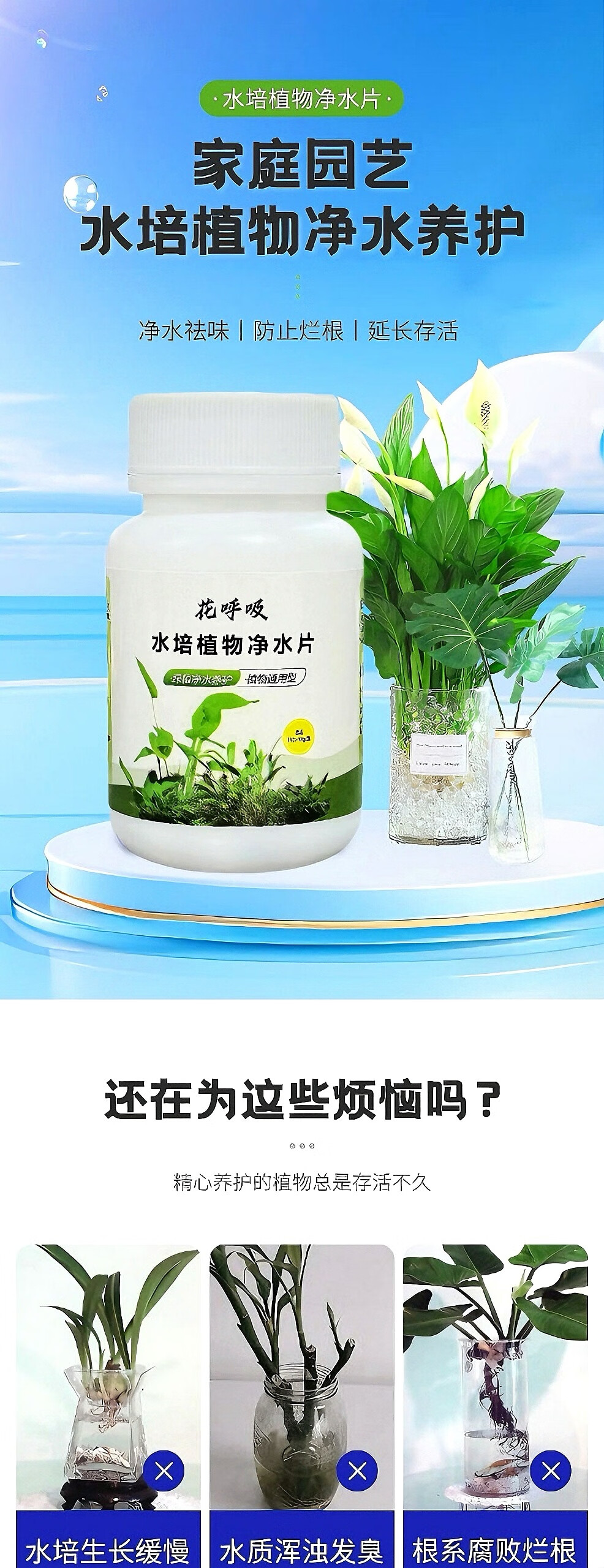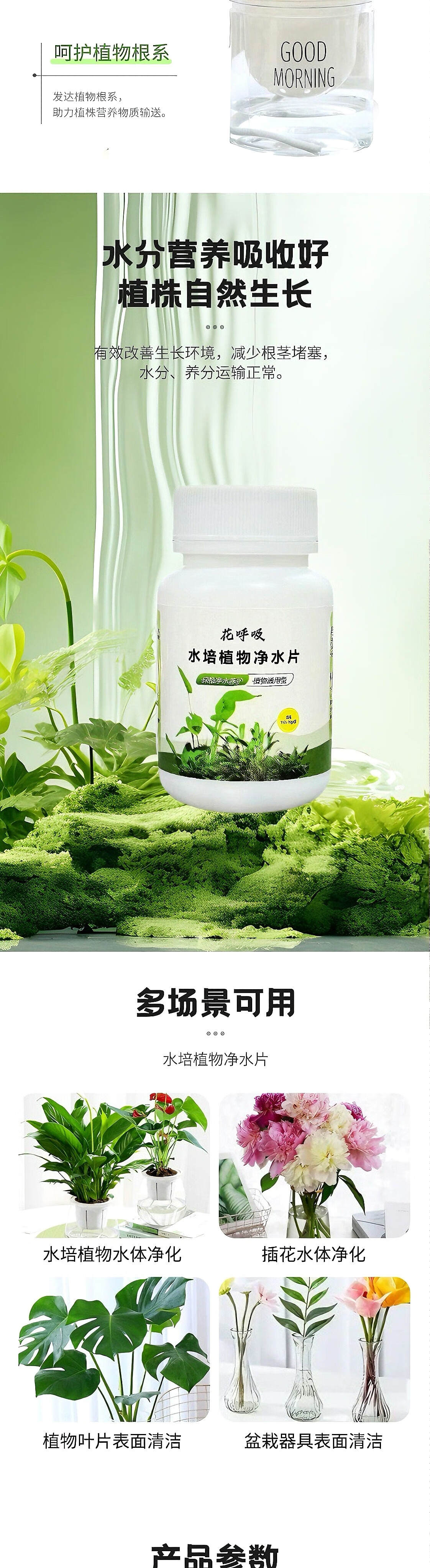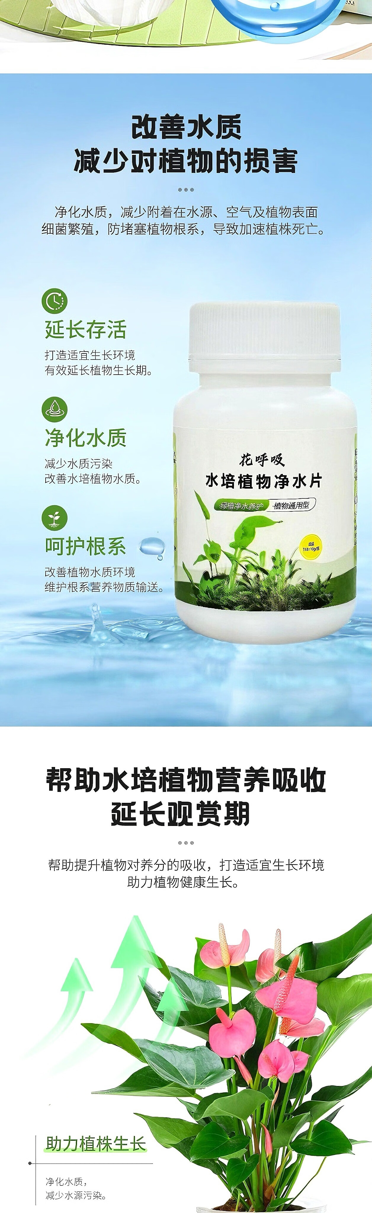 Fresh flowers, rich bamboo nutrient solution, hydroponic plant water purification tablets, disinfection tablets, flower shop purification water quality, hydroponic plant water purification tablets*5 bottles