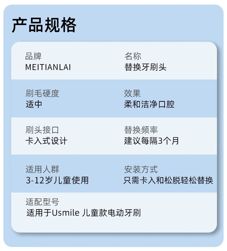 Meitianlai adapts to usmile smile plus children's electric toothbrush head A10/Q10/Q20/Q3/Q3S/Q1/Q4 Fun Planet tooth cleaning care for children and babies universal replacement head full-effect cleaning brush head 6 pieces