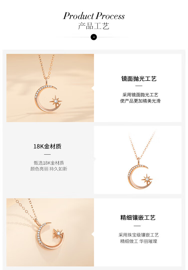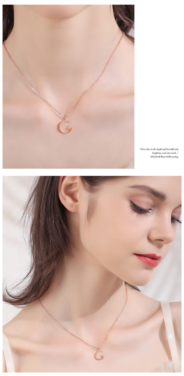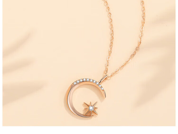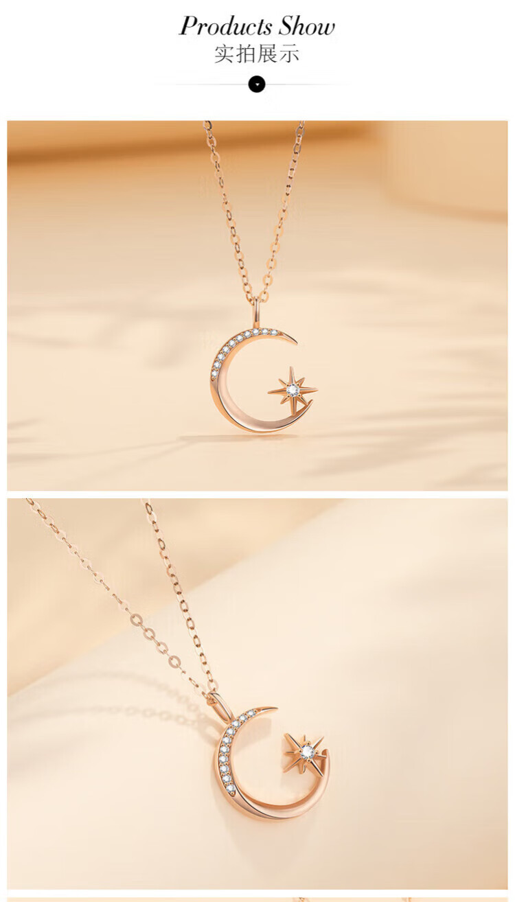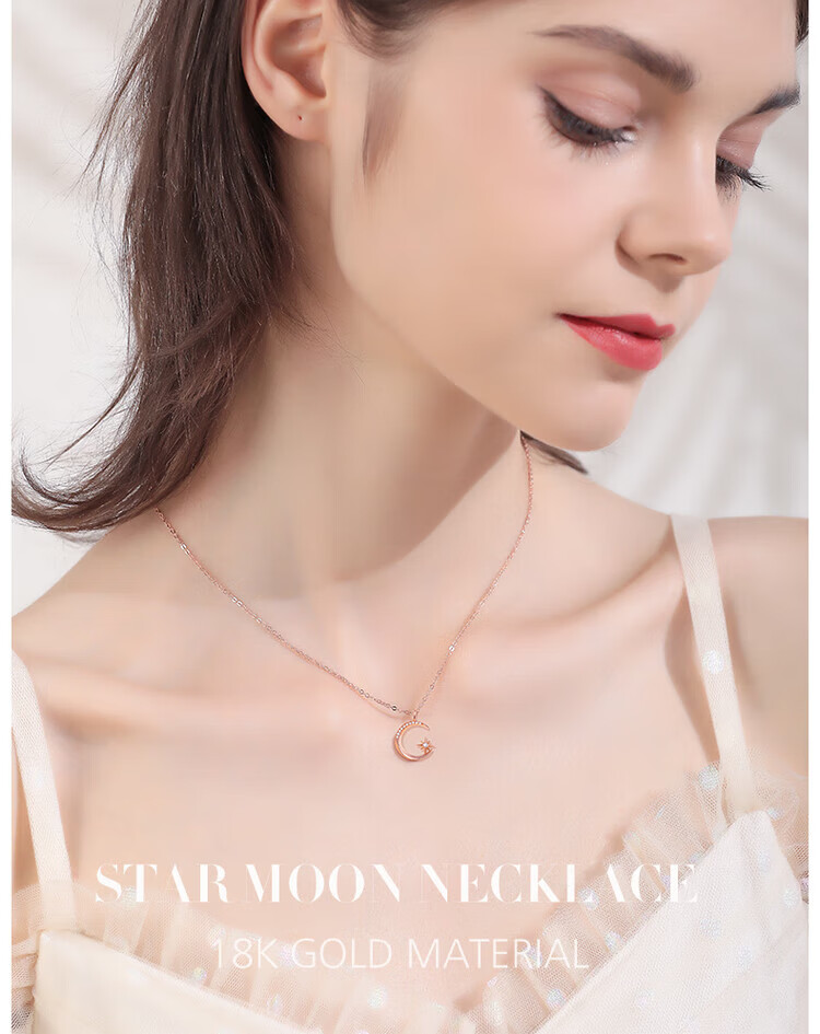 Fantimo Light Luxury Necklace for Women 18k Gold Inlaid with Moissanite Star and Moon Pendant Temperament Colored Gold Clavicle Chain 18k Gold Star and Moon Necklace SF Express+ Brand Gift Box