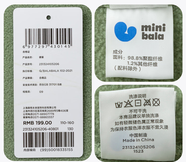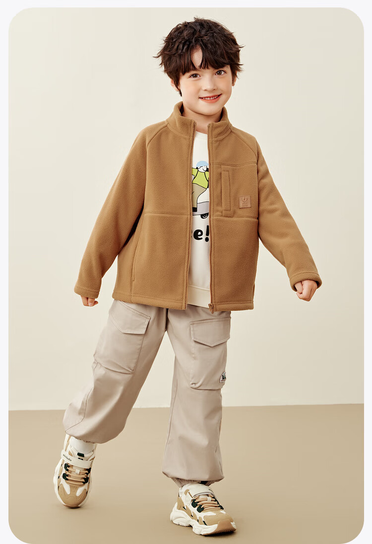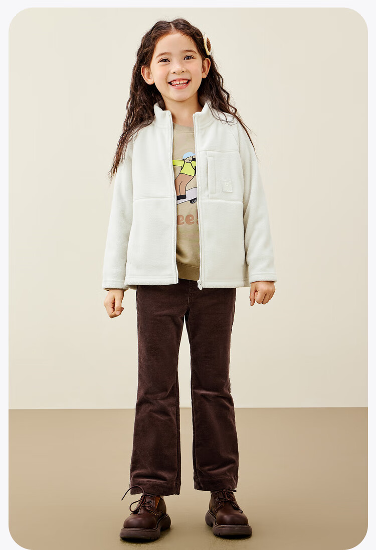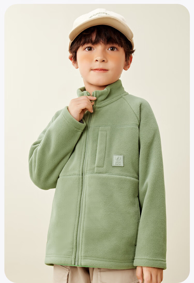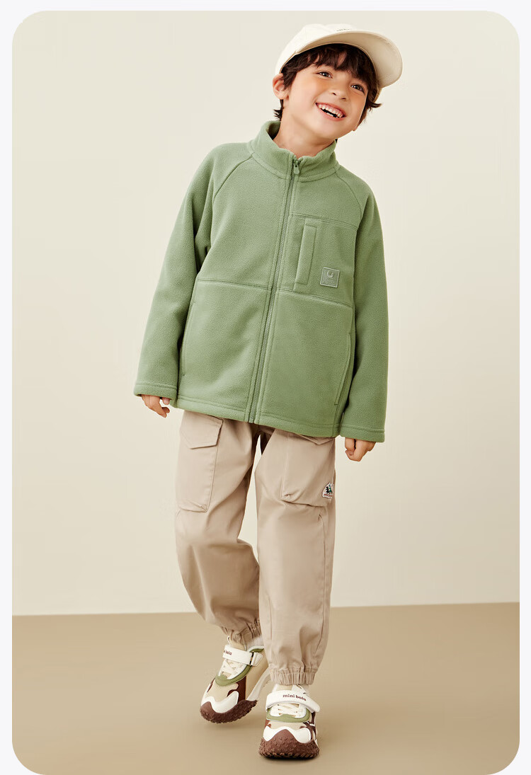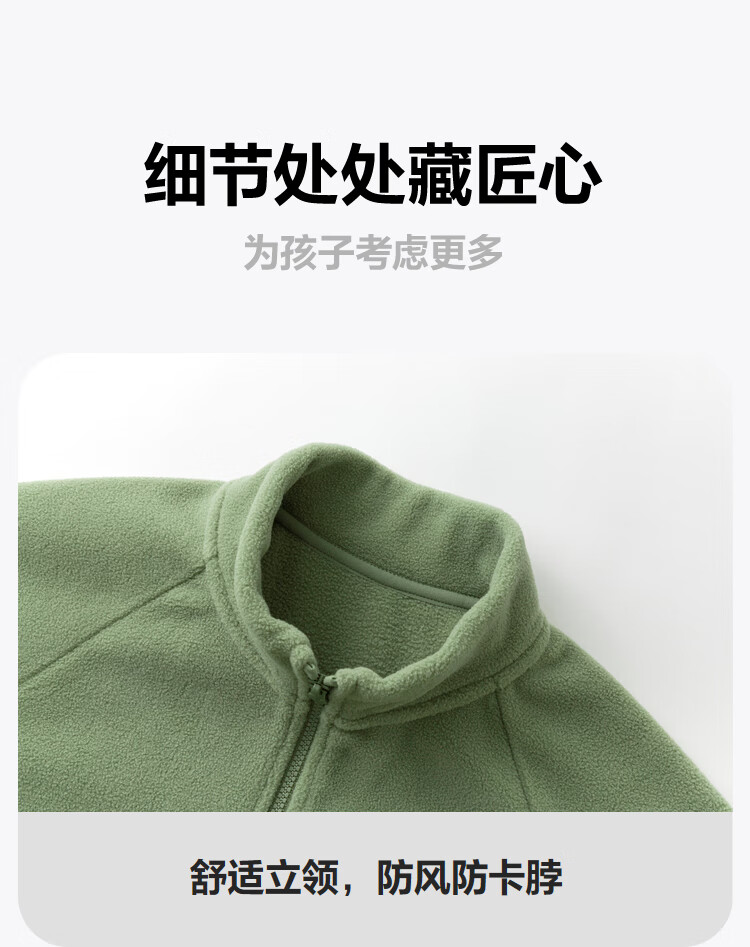 Mini Bala Antistatic Autumn New Double-sided Polar Fleece Jacket for Boys and Girls Baby Warm Jacket Jacket Olive Green 110 cm