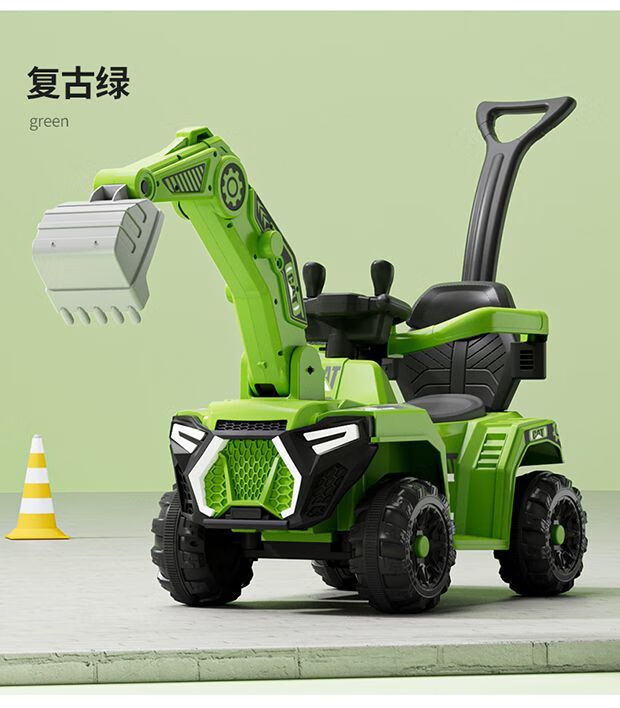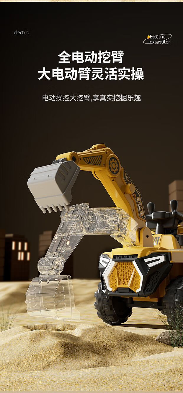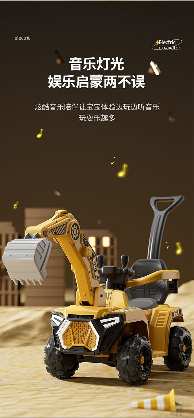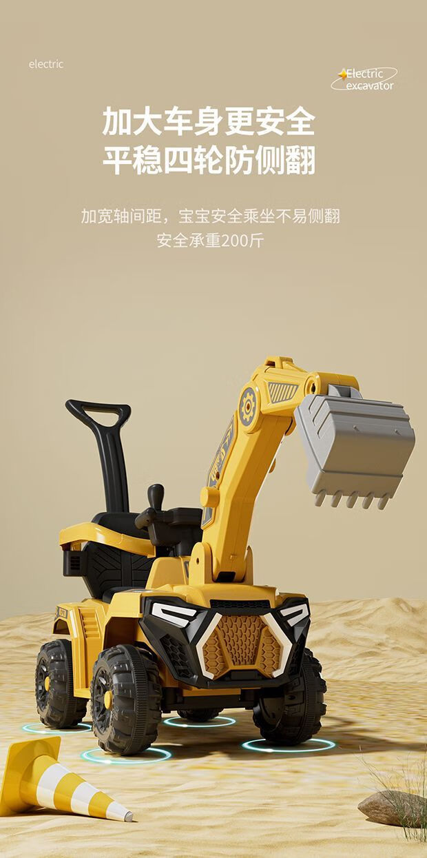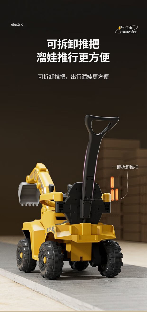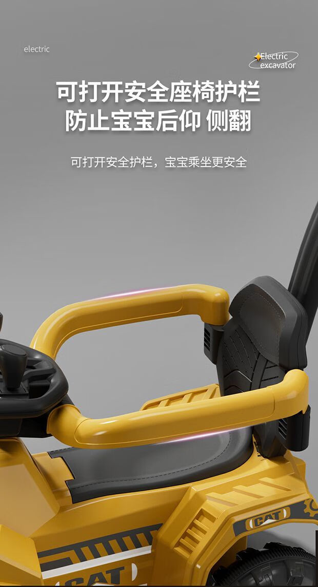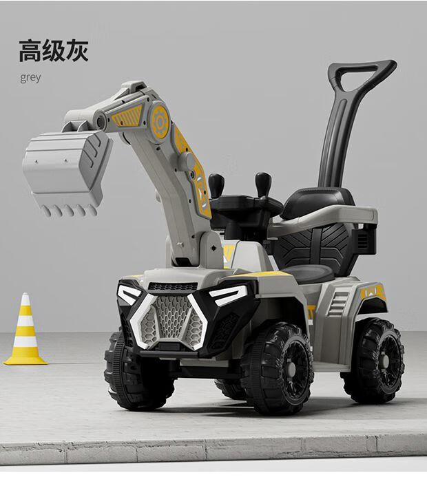 Babypure shine new children's electric car excavator can sit and ride male baby car four-wheel sliding car baby stroller gray - all-electric + fence push rod + remote control electric + sliding dual-purpose