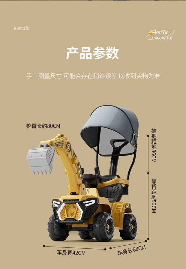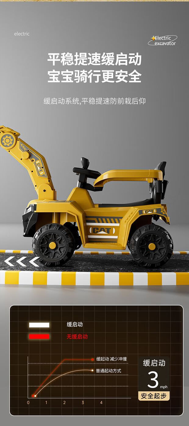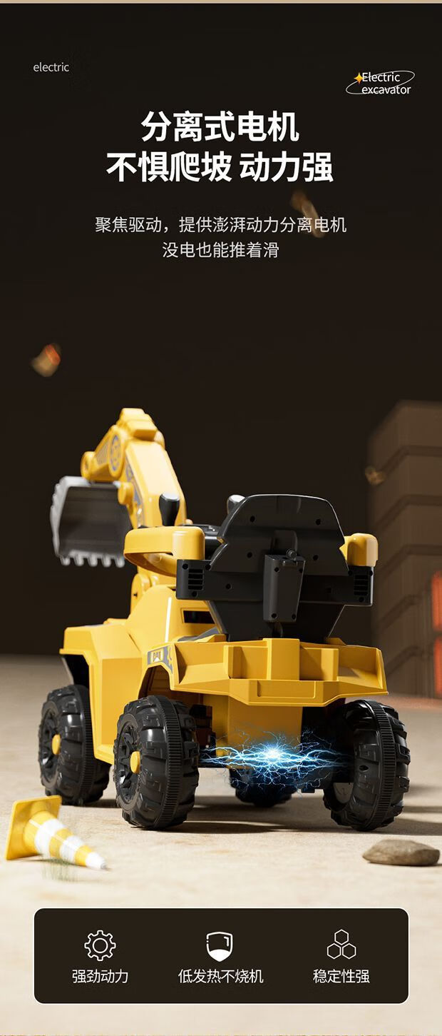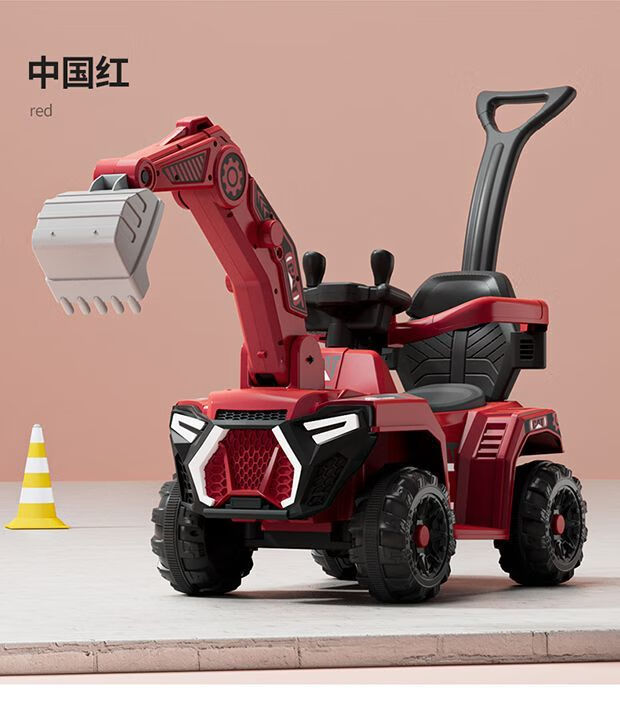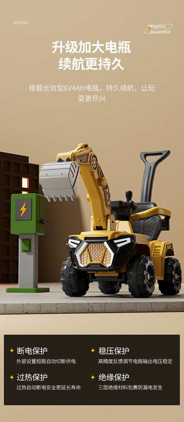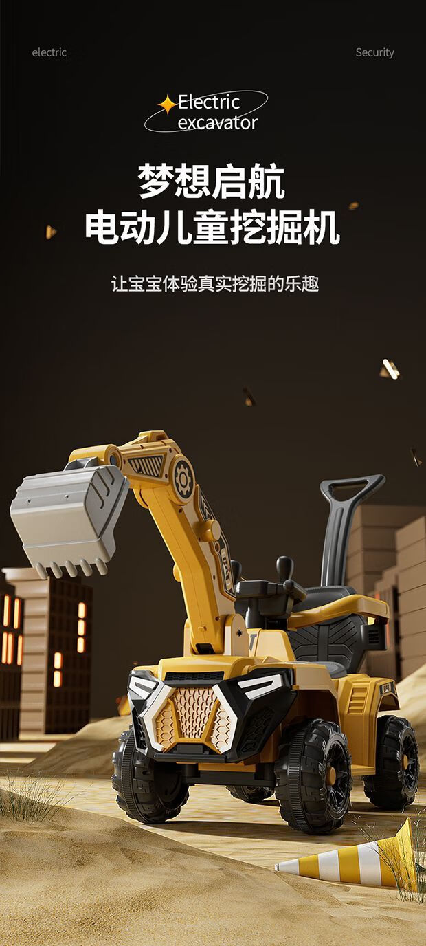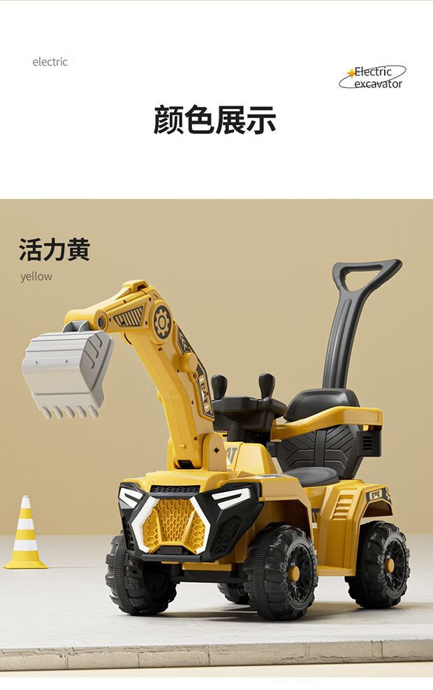 Babypure shine new children's electric car excavator can sit and ride male baby car four-wheel sliding car baby stroller gray - all-electric + fence push rod + remote control electric + sliding dual-purpose