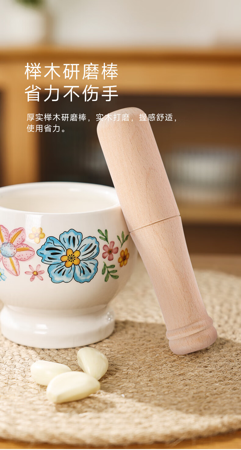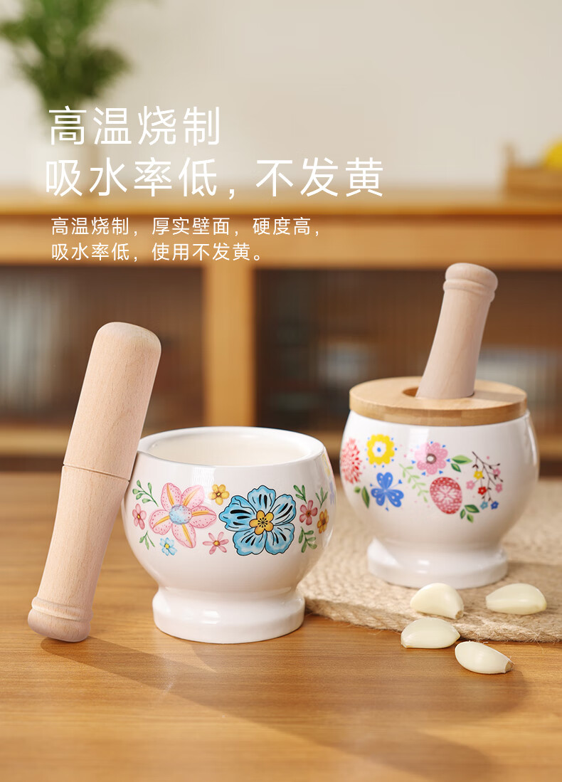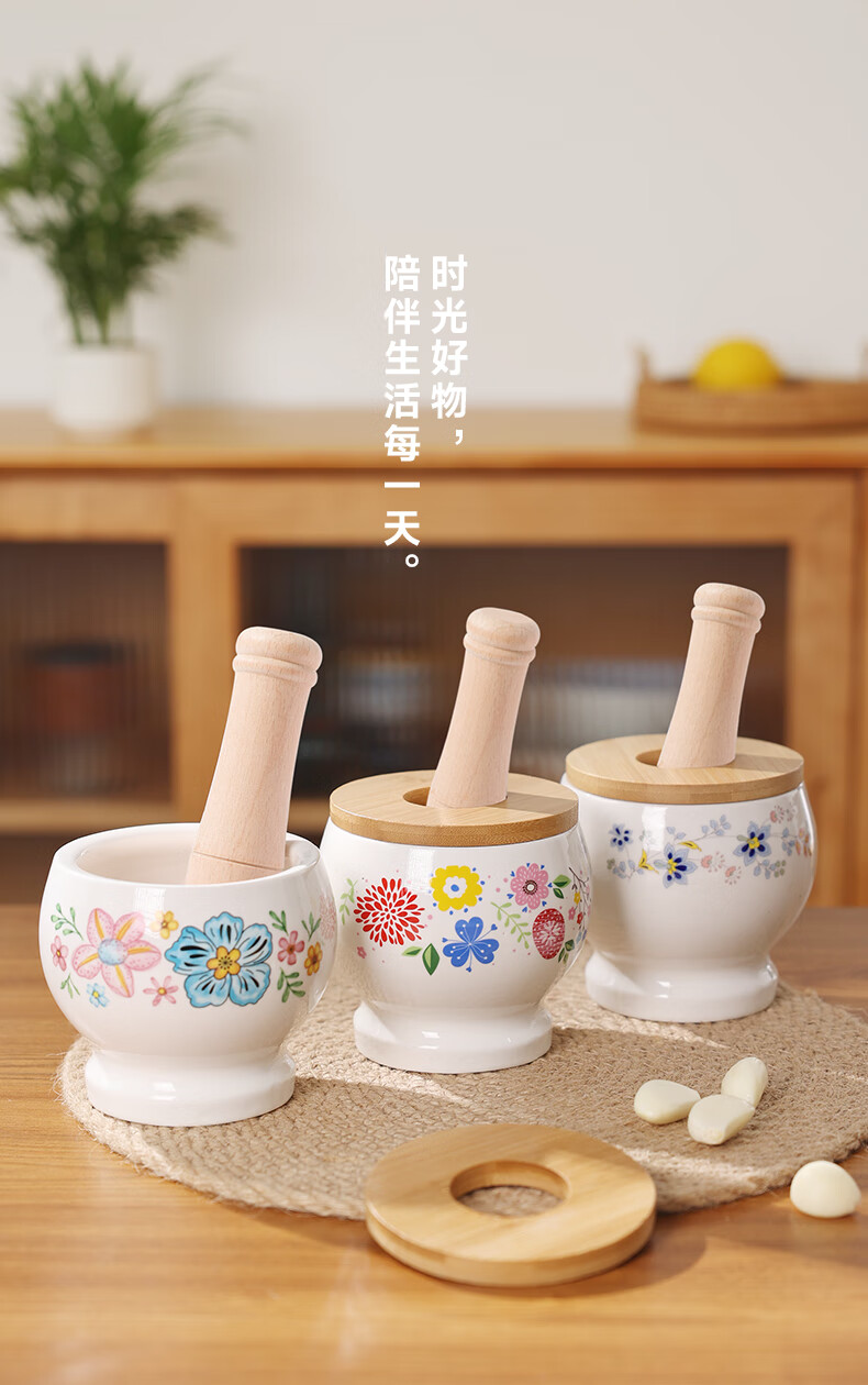 Pottery King ceramic garlic pounder stone mortar manual garlic mortar household smashing jar hand pressed garlic pourer old-fashioned grinder flower