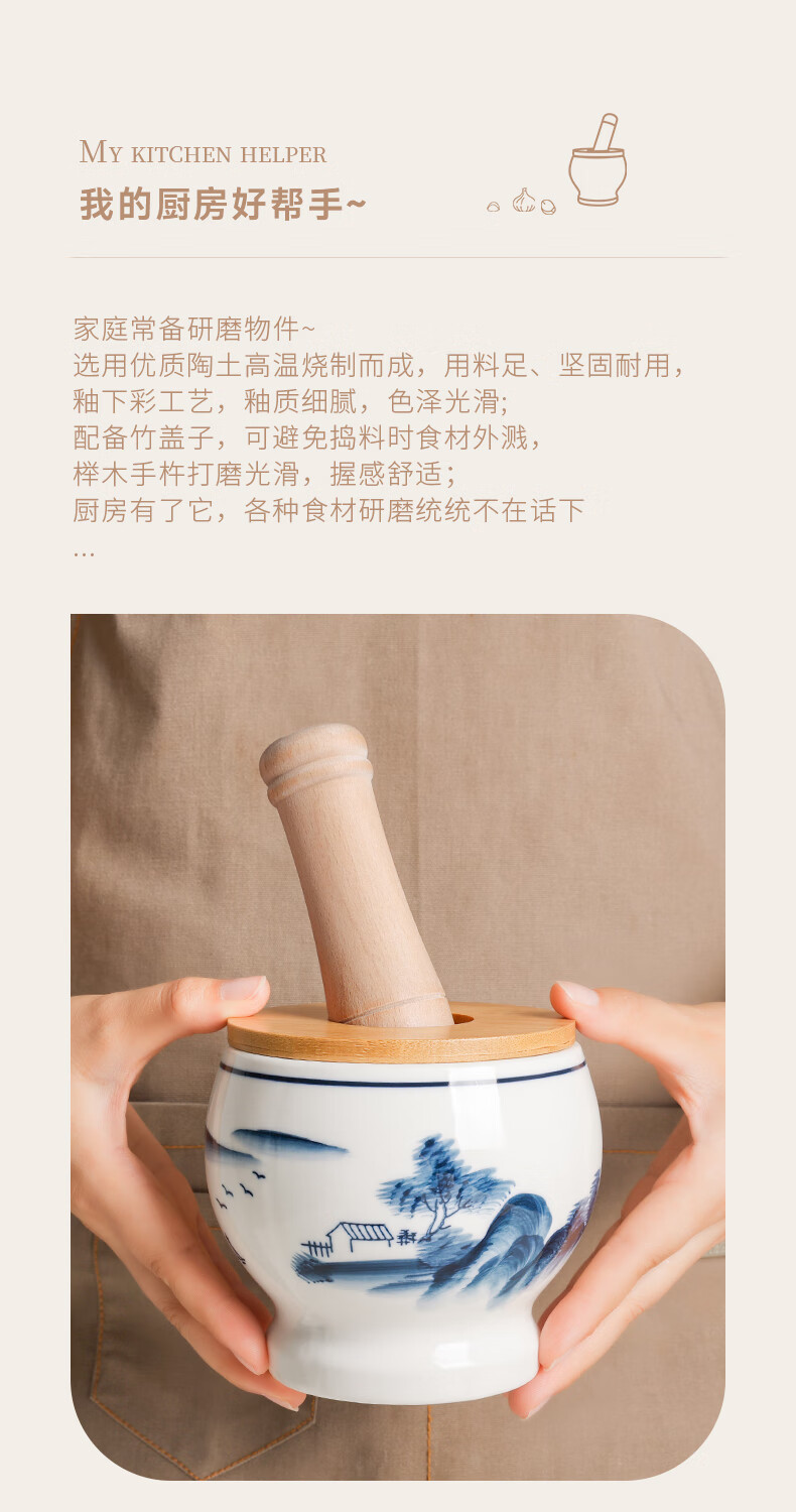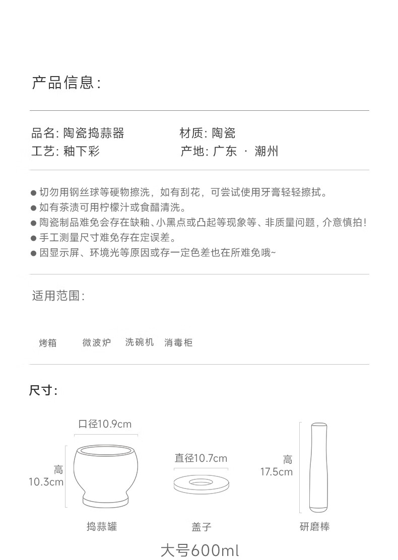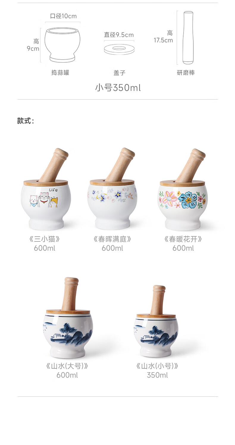 Pottery King ceramic garlic pounder stone mortar manual garlic mortar household smashing jar hand pressed garlic pourer old-fashioned grinder flower