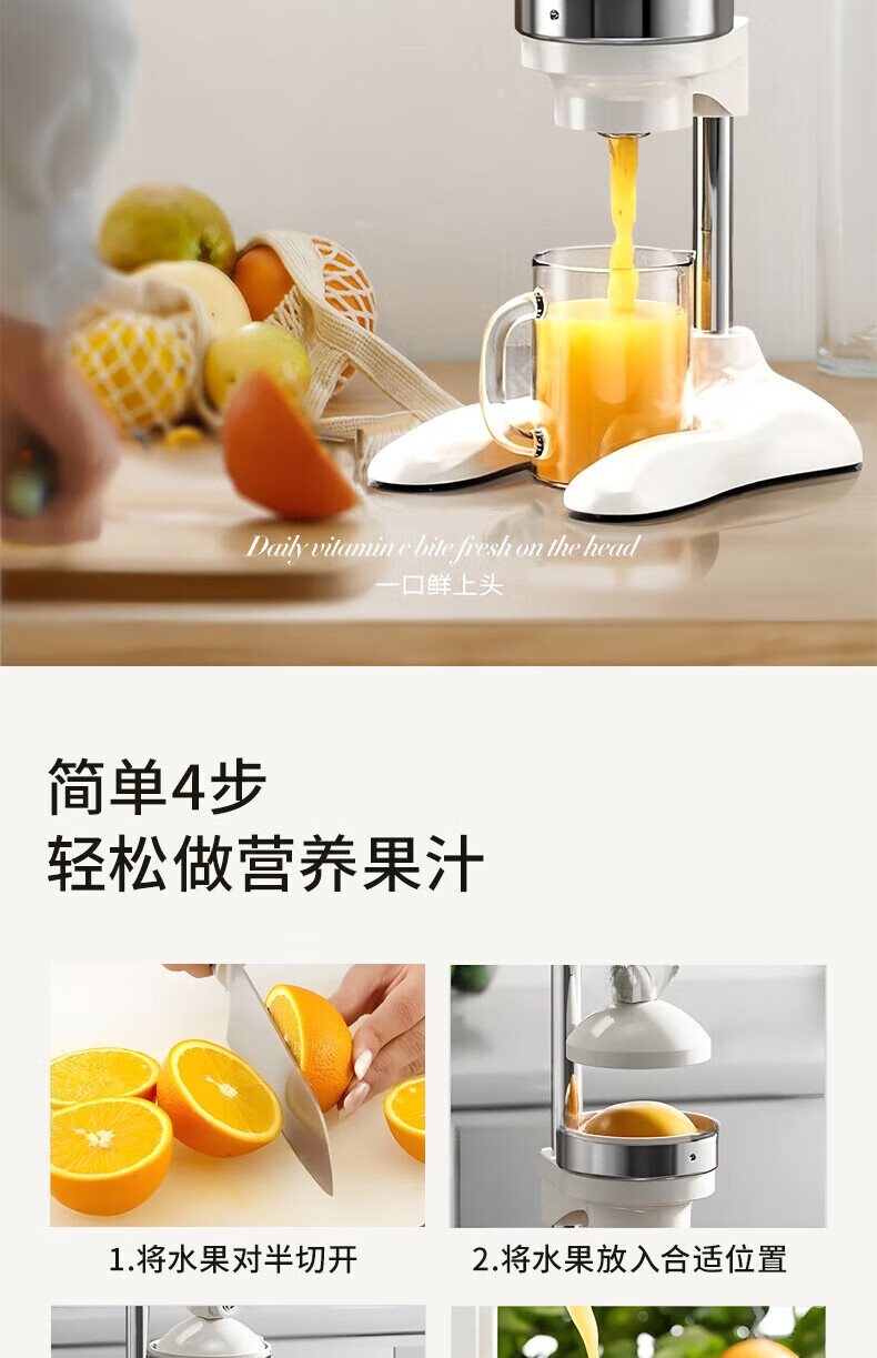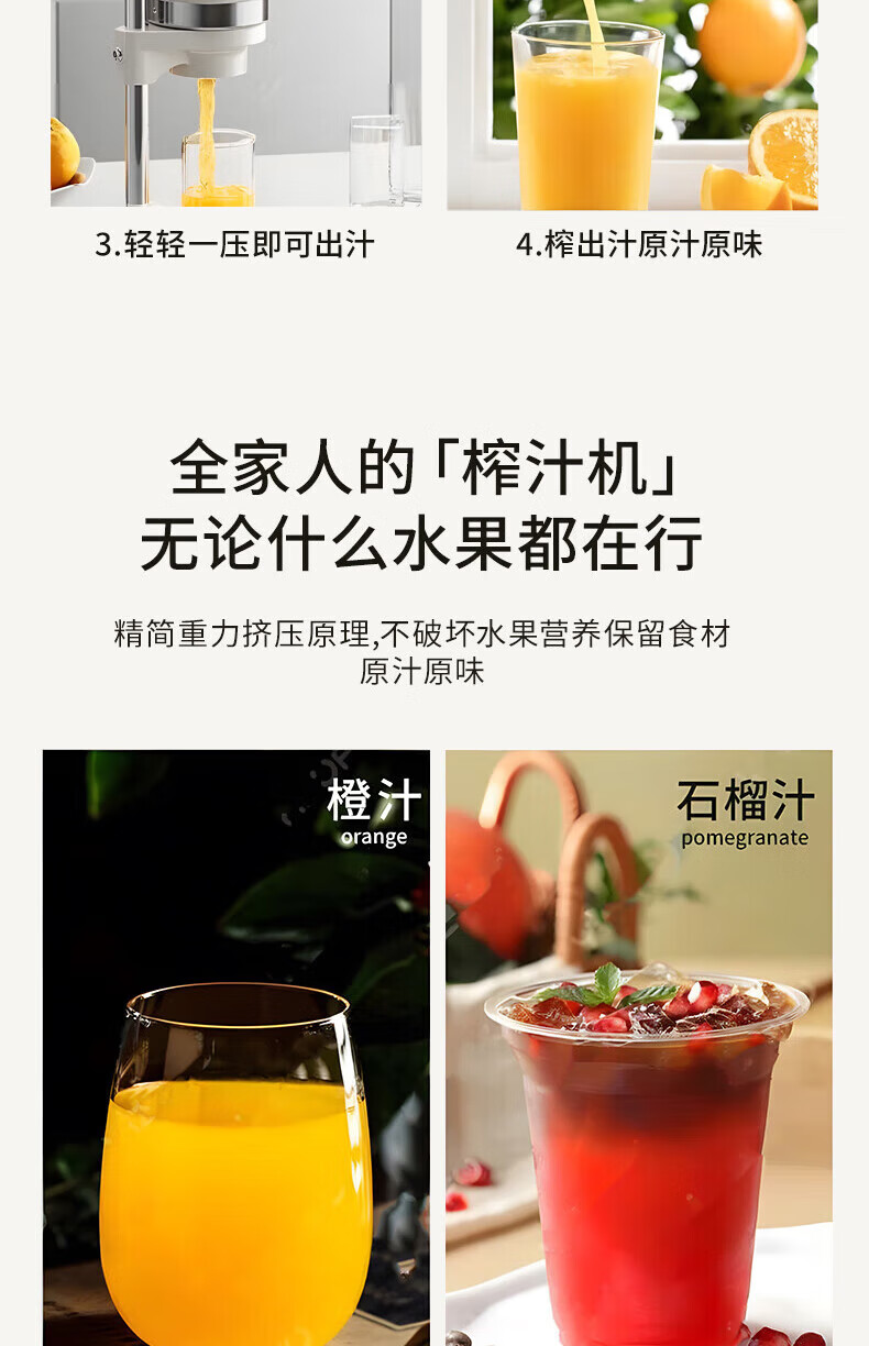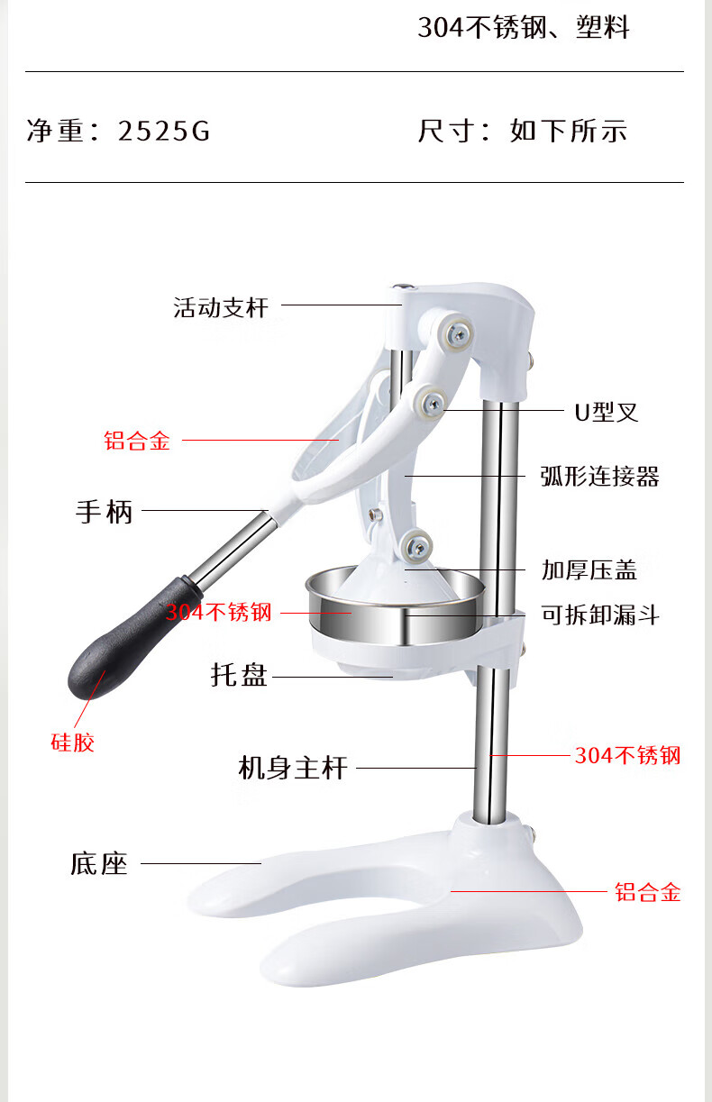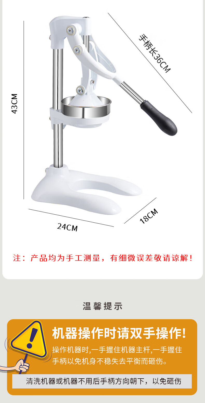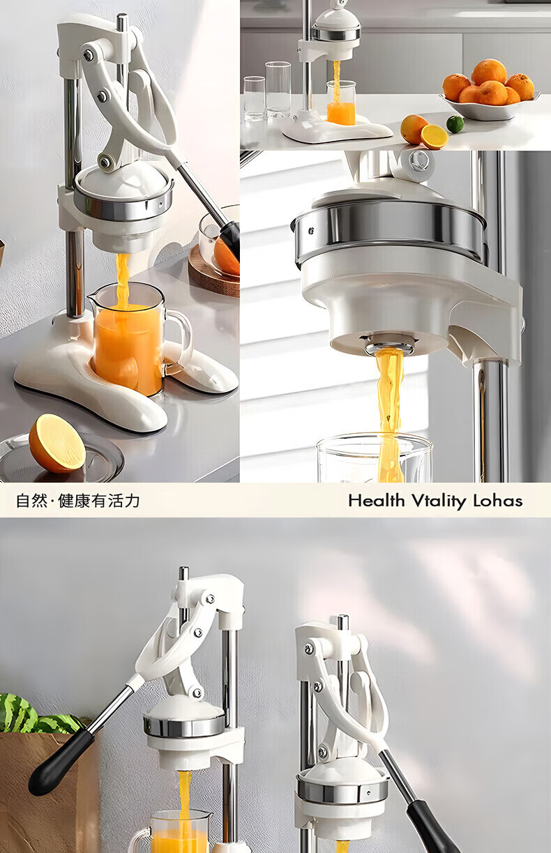 Baijie manual juicer, home hand-pressed pomegranate, orange juice, lemon artifact, juice residue separation, commercial stall juicer, 304 stainless steel, thickened and upgraded dual-mode model, efficient juice production/no electricity juicing stall artifact